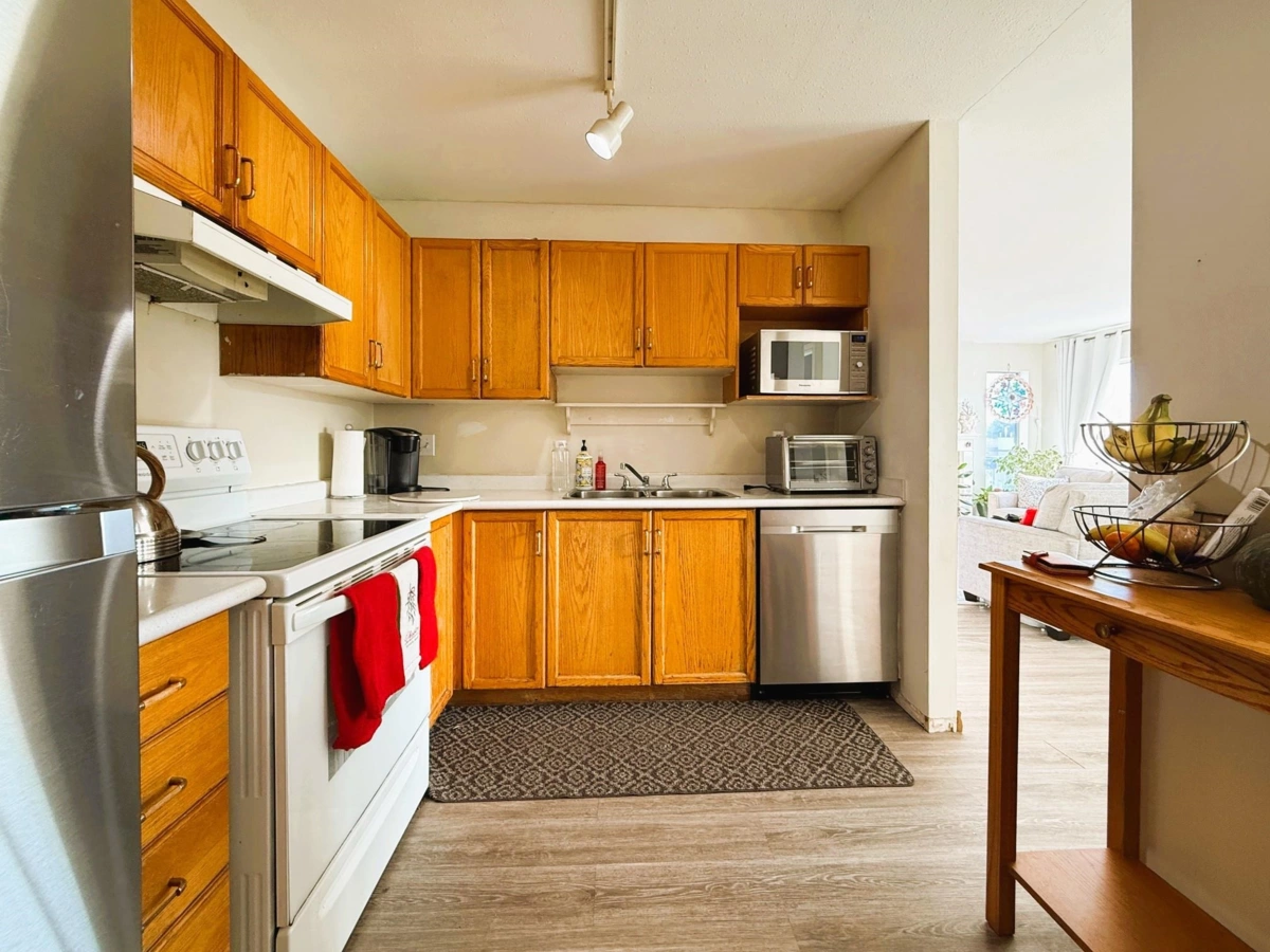 Bright Top-Floor Corner Unit at Abbotsford Place! Step into this 2- bedroom, 2- bathroom home featuring a south-facing balcony that fills the space with natural light. Enjoy the comfort of a cozy gas fireplace, updated finishes, stainless steel appliances, and the convenience of in-suite laundry. Perfectly located within walking distance to Seven Oaks Mall, restaurants shops, transit, and schools - everything you need is right at your doorstep. A fantastic opportunity for first-time buyers or investors alike. It comes with 1 parking and a locker. Book your appointment today!