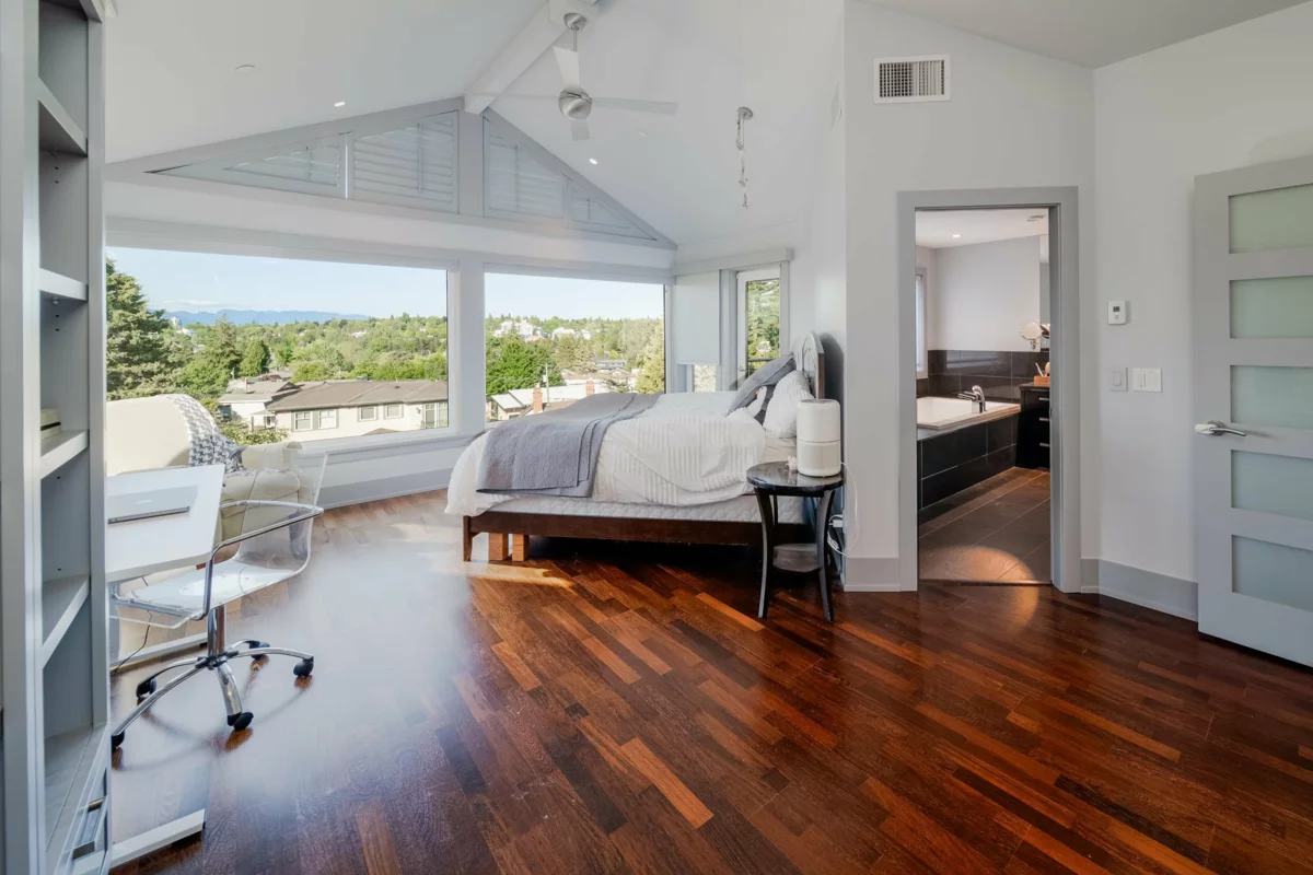 Exciting Opportunity... this elegant home has PANORAMIC mountain & city VIEWS. This charming & light-filled home has expansive windows highlighting the views & soaring high ceilings. 2 generous sized rooms on the upper floor, 1 spacious bedroom (flex room) on the lower level. Large soaker tub in the master bedroom ensuite with VIEWS!! Air conditioning, European designed gourmet kitchen, outdoor patio BBQ area & complete with an elevator to the garage. Close to shopping, parks, transit & a short drive to UBC and downtown. Excellent school catchment: Trafalgar Elementary and Prince of Wales Secondary School.