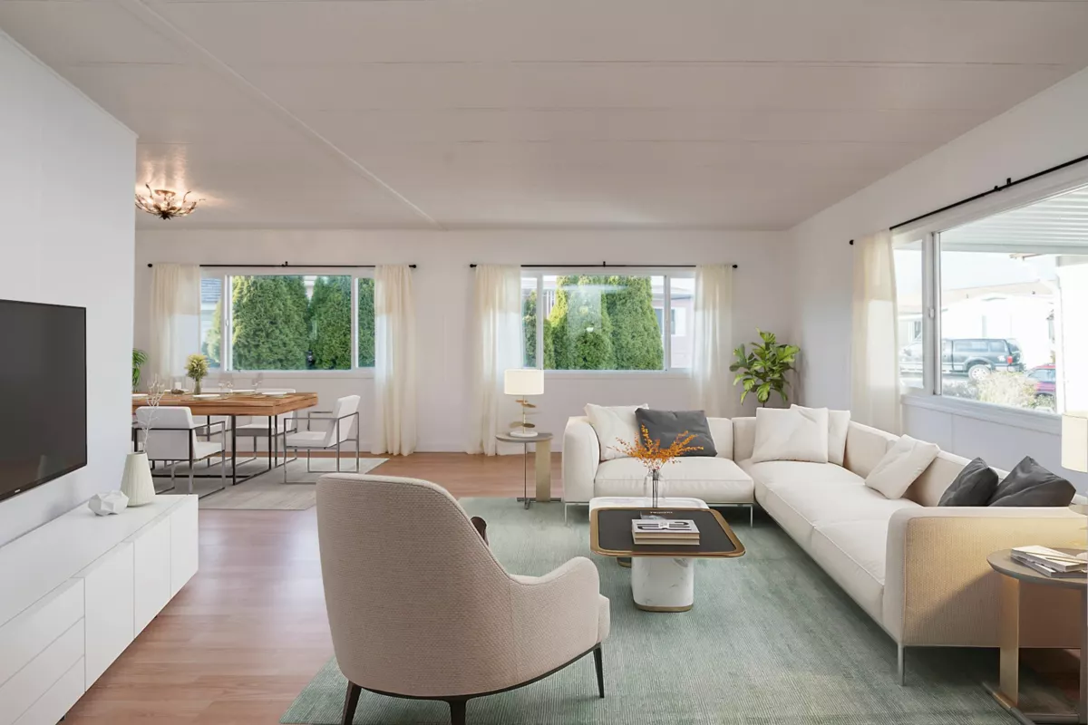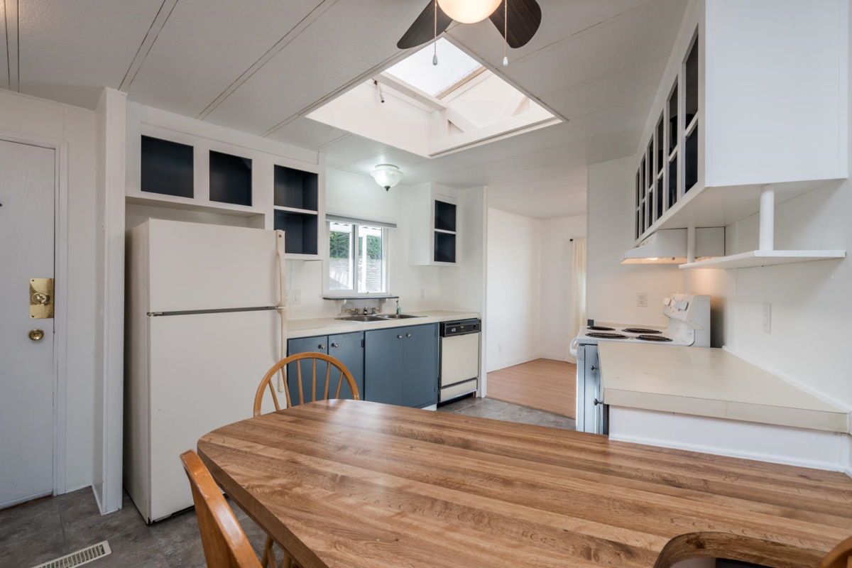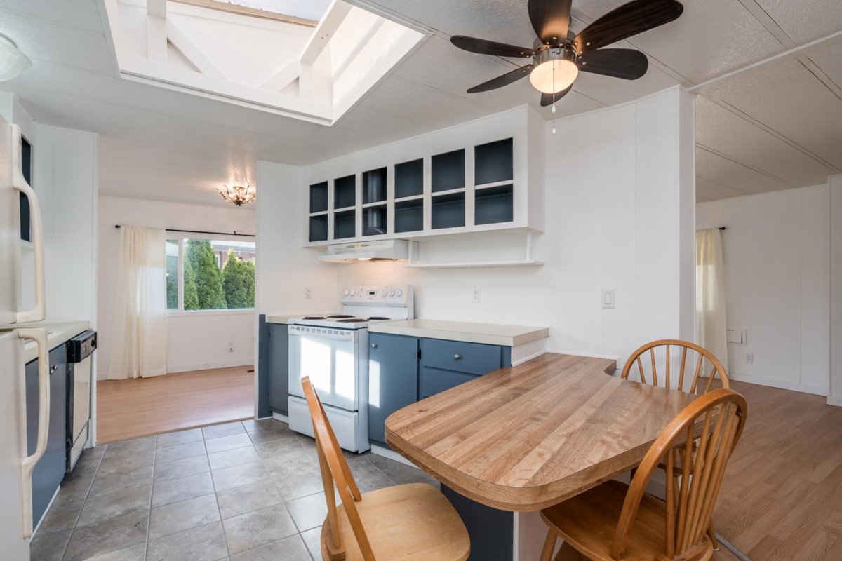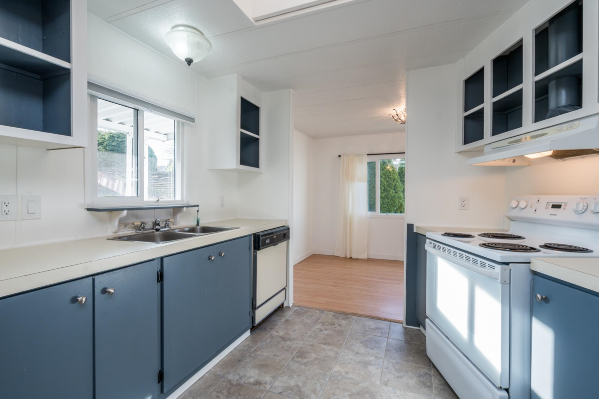 Cherry Brook Park-Own Your Land! Solid double-wide home sits on a spacious, pie-shaped lot in the desirable 55+ community of Cherry Brook Park, this property offers privacy, space, and convenience in one package. Parking for 4 vehicles, Powered 10’ x 8’ shed perfect for hobbies or storage, Attached 10’ x 5’ storage room, Large outdoor deck ideal for entertaining, Pet-friendly, Upgrades: New flooring throughout, Fresh interior paint, bathroom with new shower, Some new thermal windows,10-year-old high-efficiency gas furnace. Bright open living features a sunny skylight, the spacious kitchen, plenty of room to cook and gather. Mstr bedroom easily fits a king-size bed. Clubhouse, great location, access to Hwy 99, Beach, shopping, hospitals, recreation, and transit. Affordable opportunity!