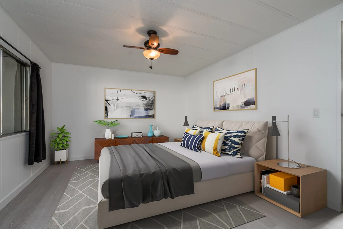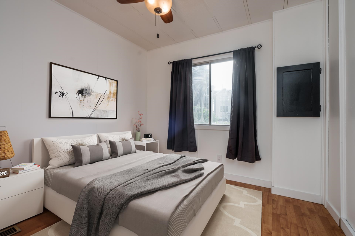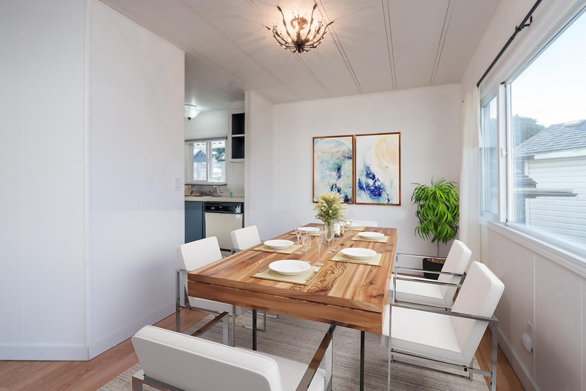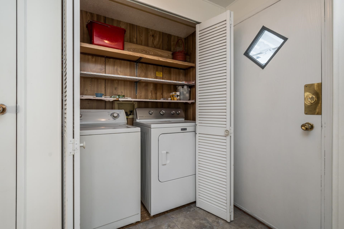 Cherry Brook Park-Own Your Land! Solid double-wide home sits on a spacious, pie-shaped lot in the desirable 55+ community of Cherry Brook Park, this property offers privacy, space, and convenience in one package. Parking for 4 vehicles, Powered 10’ x 8’ shed perfect for hobbies or storage, Attached 10’ x 5’ storage room, Large outdoor deck ideal for entertaining, Pet-friendly, Upgrades: New flooring throughout, Fresh interior paint, bathroom with new shower, Some new thermal windows,10-year-old high-efficiency gas furnace. Bright open living features a sunny skylight, the spacious kitchen, plenty of room to cook and gather. Mstr bedroom easily fits a king-size bed. Clubhouse, great location, access to Hwy 99, Beach, shopping, hospitals, recreation, and transit. Affordable opportunity!