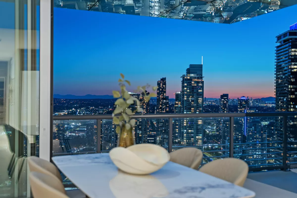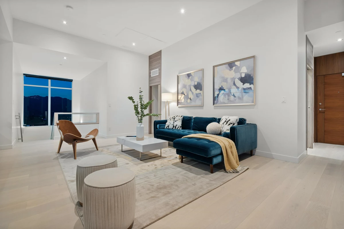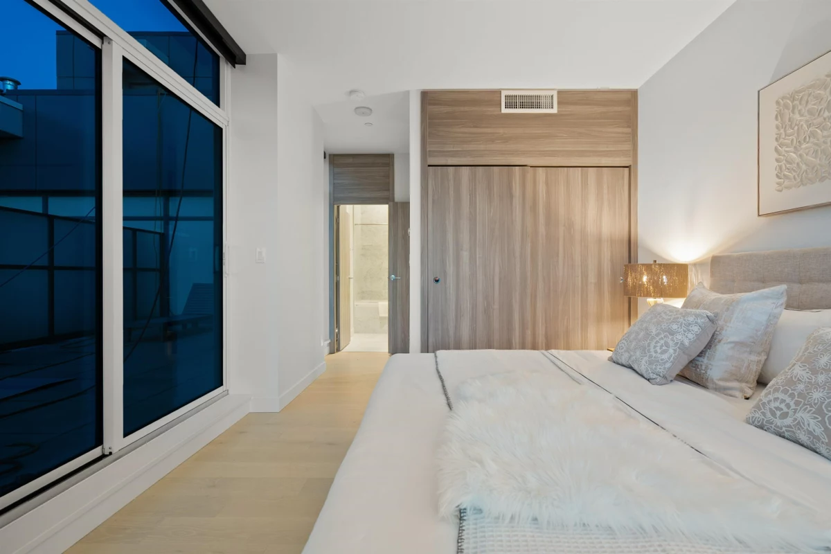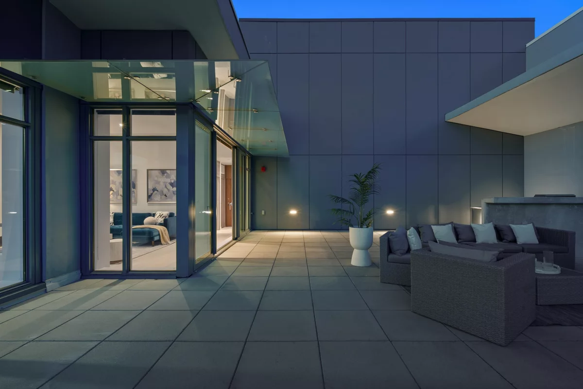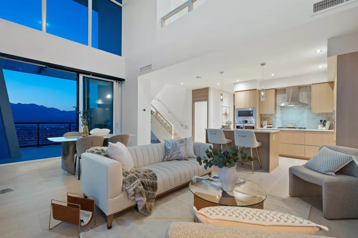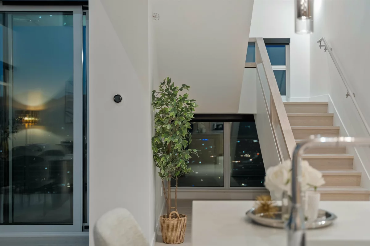 Discover luxury living in this stunning two-level penthouse by Concord Brentwood. Featuring three bedrooms, two living areas, and soaring ceilings, this home offers modern urban elegance. Floor-to-ceiling windows flood the space with natural light, framing breathtaking city and mountain views. The open-concept layout boasts hardwood floors, marble countertops, premium and appliances. Central A/C and heating ensure year-round comfort, while motorized blinds add convenience.Seamless indoor-outdoor living awaits with retractable balcony doors. The highlight? A 2,600 sq. ft. private rooftop terrace with a built-in BBQ, perfect for entertaining. A private two-car garage completes this rare offering. Act fast—this opportunity won’t last! Open House Nov 29 11:00 AM -1:00 PM !