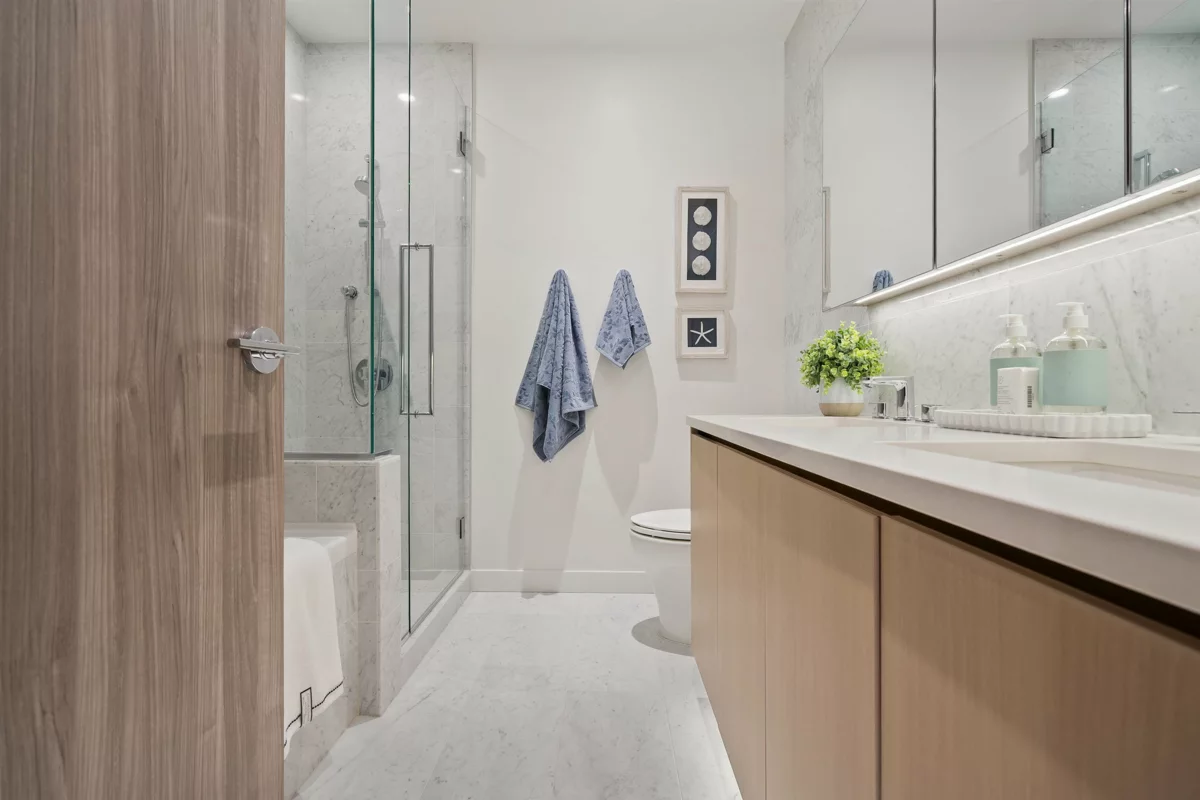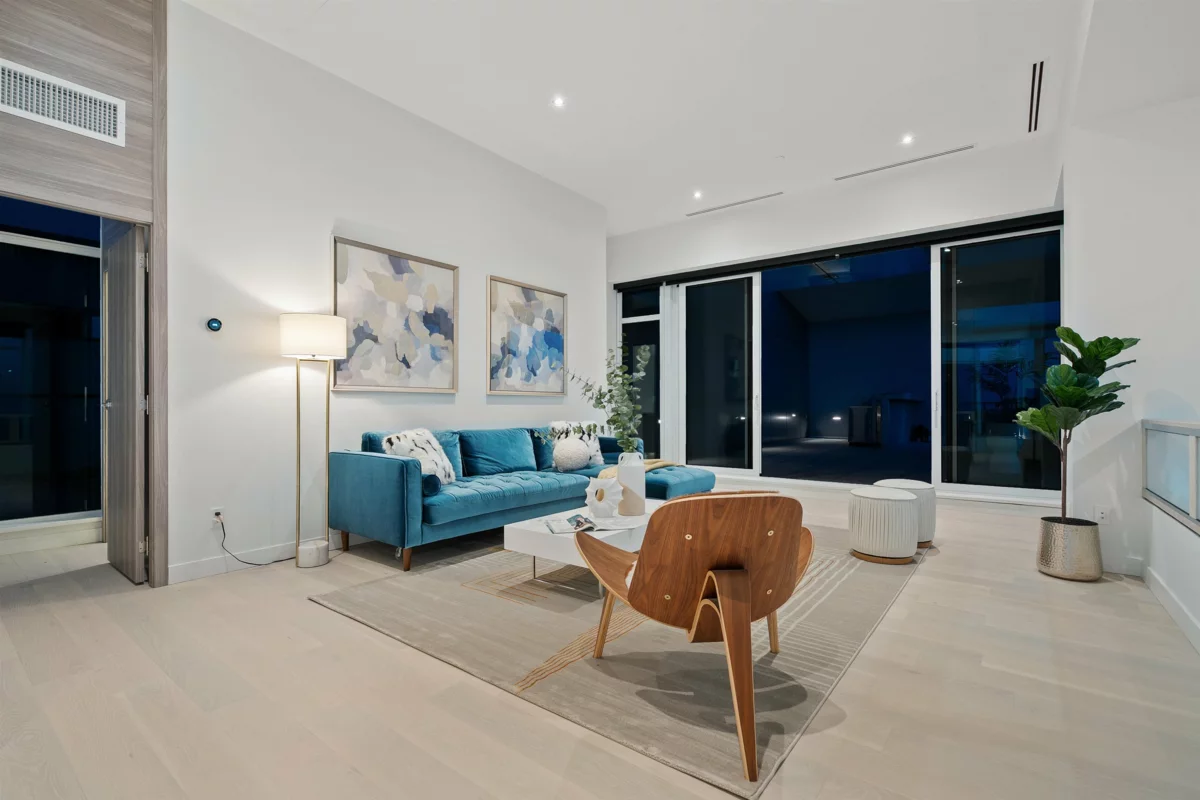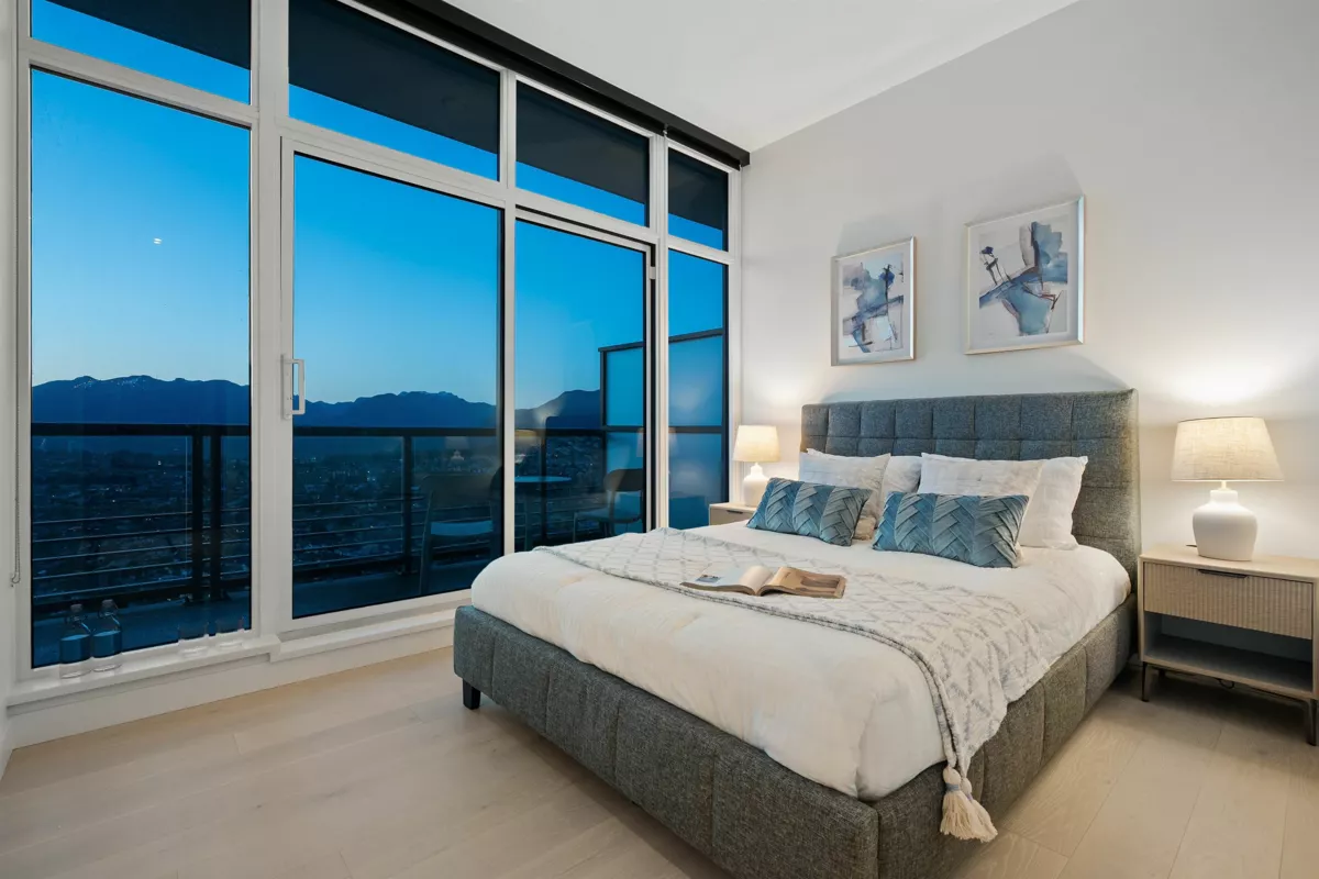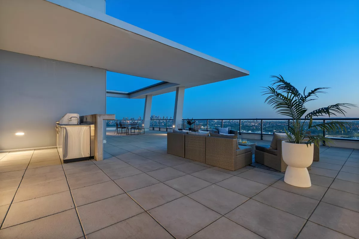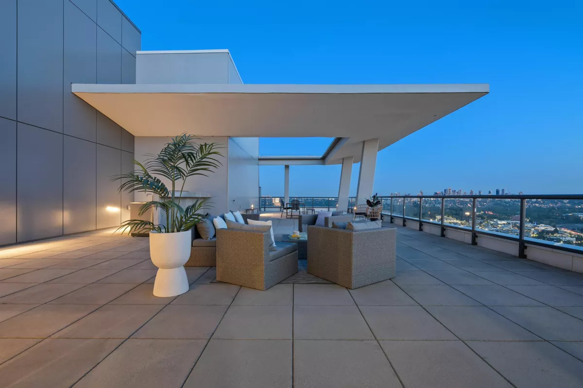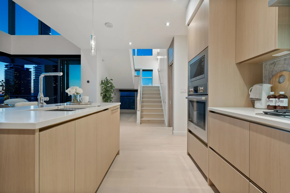 Discover luxury living in this stunning two-level penthouse by Concord Brentwood. Featuring three bedrooms, two living areas, and soaring ceilings, this home offers modern urban elegance. Floor-to-ceiling windows flood the space with natural light, framing breathtaking city and mountain views. The open-concept layout boasts hardwood floors, marble countertops, premium and appliances. Central A/C and heating ensure year-round comfort, while motorized blinds add convenience.Seamless indoor-outdoor living awaits with retractable balcony doors. The highlight? A 2,600 sq. ft. private rooftop terrace with a built-in BBQ, perfect for entertaining. A private two-car garage completes this rare offering. Act fast—this opportunity won’t last! Open House Nov 29 11:00 AM -1:00 PM !