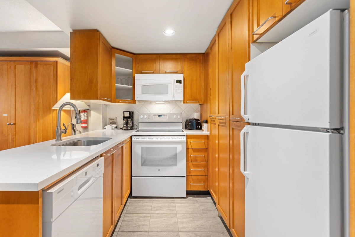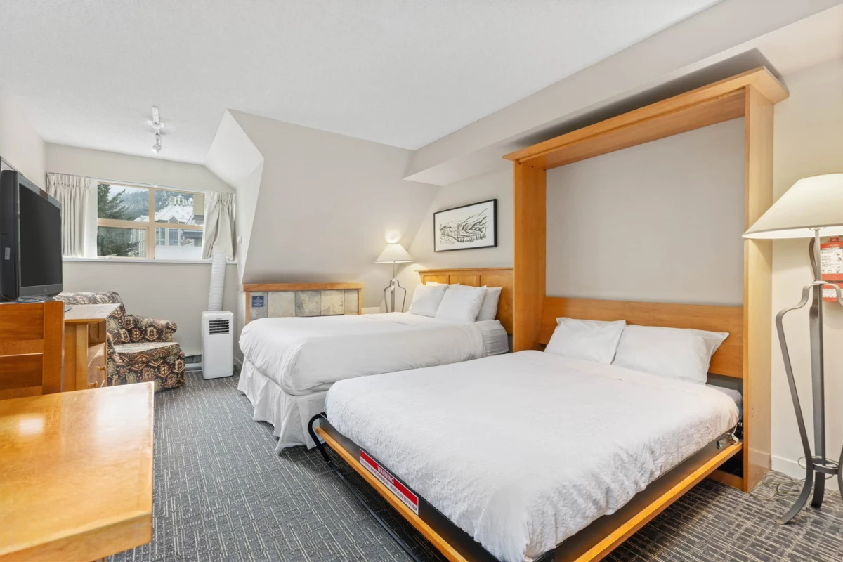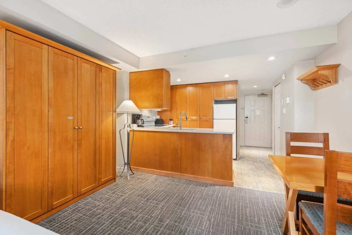 Located just steps from the gondolas, restaurants, and shopping, this deluxe studio suite at Whistler Peak Lodge offers the perfect mountain getaway in the heart of Whistler Village. Comfortably sleeping four, it features a queen bed and a double Murphy bed, plus a cozy gas fireplace for winter and air conditioning for summer. The full kitchen is equipped with everything you need, and the dining area makes mealtime easy. Relax in the jetted bathtub after a day on the mountain, and enjoy the convenience of an in-suite washer/dryer. Amenities include a fitness centre, ski/bike storage, and a 24-hour front desk. Phase 2 zoning allows owners to enjoy up to 56 days per year while earning rental revenue for the remainder of the time.