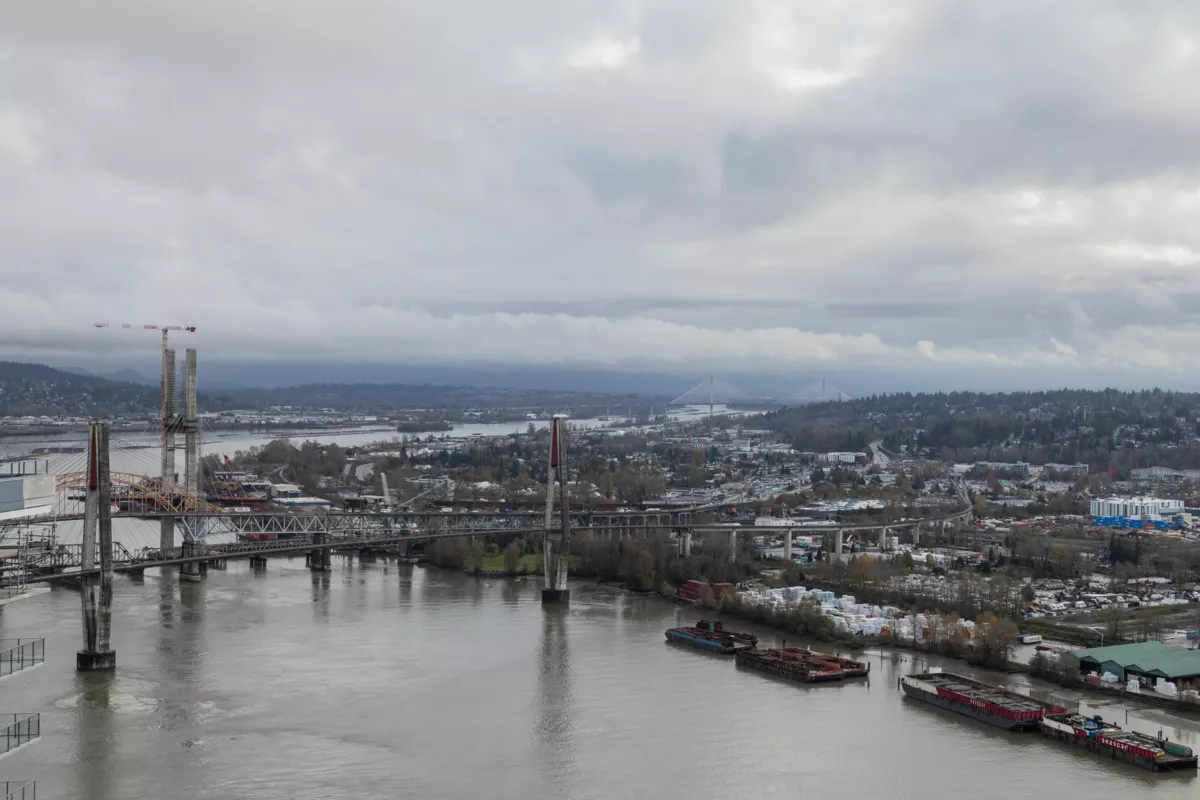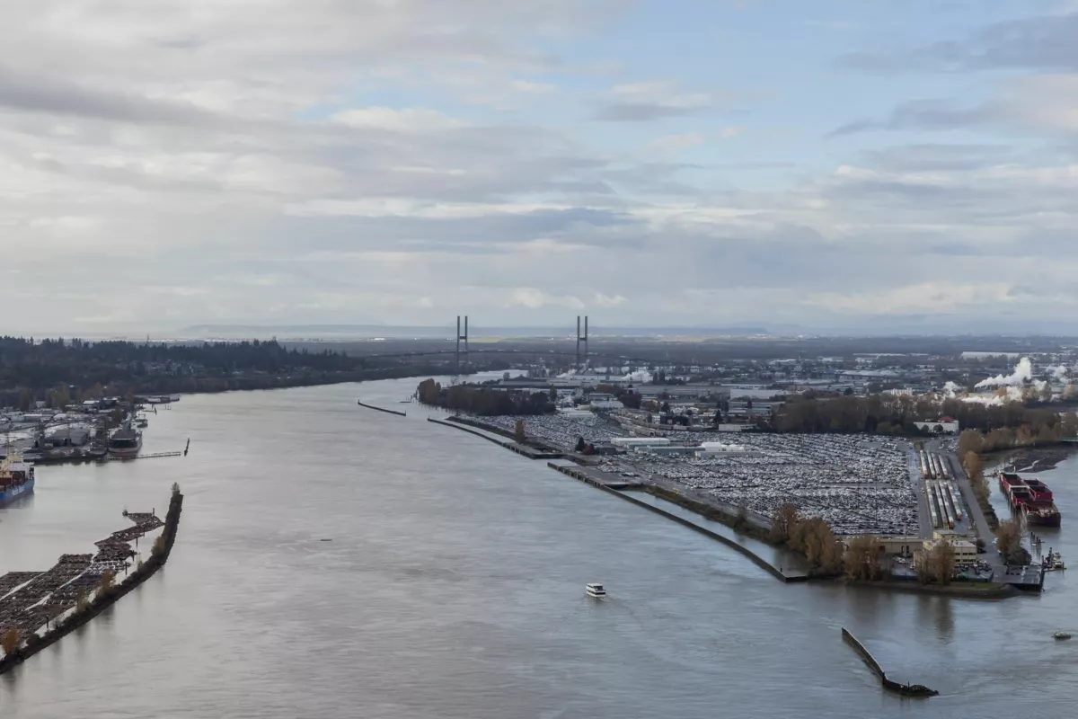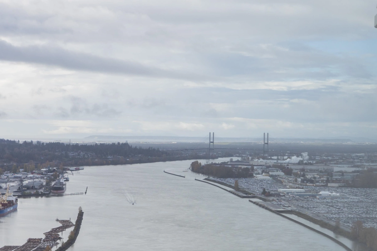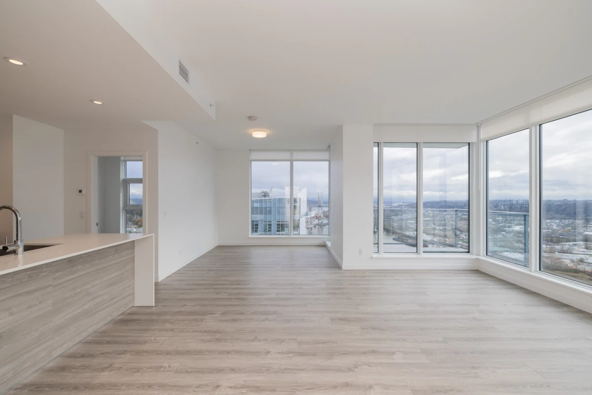 Welcome to the Sky Collection at Pier West, New Westminster’s signature waterfront address. This two bedroom plus den spans 1,277 square feet with unobstructed southern views over the Fraser River. Floor to ceiling windows flood the open plan with light, and a chef’s kitchen anchors the space with ample cabinetry, a gas range, and a double door fridge. The den works as a proper office, the bedrooms are well separated, and the primary includes a generous closet and ensuite. Building amenities include a full gym, sauna, and a comfortable social room. Two parking and a storage locker are included. Step outside to the boardwalk, local shops, cafes, and riverside trails. Elevated, easy living on the water, part of the exclusive Sky Collection.