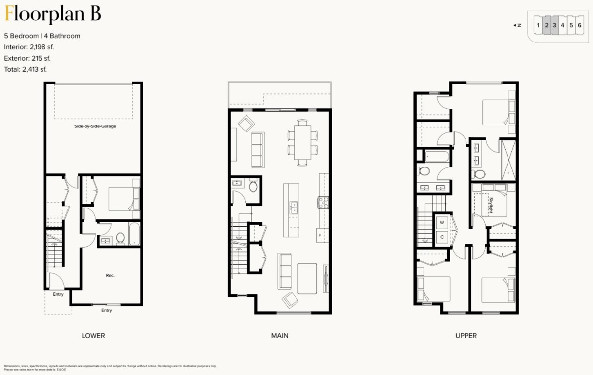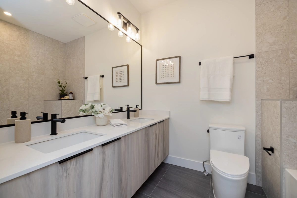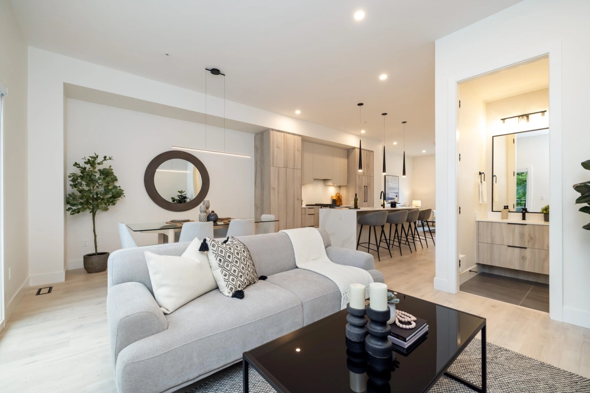 RARE OFFERING - NO STRATA FEES ROWHOME. Save OVER $110K from original list price. Brand new, move-in ready. 5 Bed + 4 bath, 2198 SF home over 3 levels. Single family living without the price or maintenance. Side-by-side double car garage with EV rough-in, 10' main and 12 bedroom ceilings, central A/C, gas cooktop, Fisher & Paykel and LG appliances, quartz countertops, his & hers walk-in closets, and smart home features with a Google Nest thermostat and Leviton Smart Switches. Outdoor features include a private, gated, landscaped yard and balcony. WITH $30,0000 WORTH OF UPGRADES INCLUDED. Call for a private appointment.