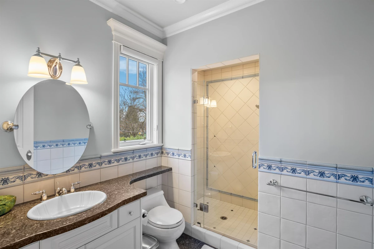 SHAUGHNESSY! Beautiful high quality house facing Devonshire Park. DBLE height foyer with crystal chandelier, custom finishing crown moulding, wainscoting, detailed handwork. Open LIV/DINRM w/bar. Office(can be converted to a BR).FAMRM with an open gourmet kitchen: Wolfe appls ,Subzero fridge,granite island and wok kitchen. 6 BMs all ensuites.4 upstairs w/a laundry, MBDRM w/dome ceiling,balcony,2 walk-in closets, his/her ensuite, soaker tub and dble steam shower. BSMT has Nanny's ensuite, guest BR, wine cellar, rec RM, home theatre/bar. Built in vacuum, HRV/AC, security cameras. Mature landscaping, irrigation, security gated/fenced yard. 3 car garage w/attached office+2 pc bath. Walking distance to Shaughnessy Elem/York House. Open House: Aug 31 Sun, 12-2pm.