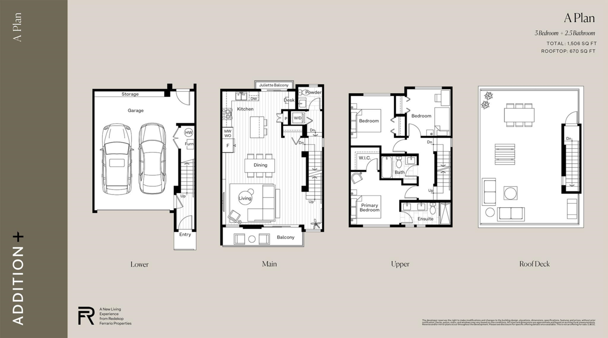 Welcome to ADDITION, a collection of 87 3-bedroom plus rooftop townhomes perfectly situated between Willoughby + Willowbrook and developed by Redekop Ferrario Properties. This 3 bedroom home features a side by side garage and over 1,500 sqft of living space plus a 670 sqft rooftop patio. In the kitchen enjoy Samsung Kitchen appliances including a 36” counterdepth fridge, gas cooktop, built in microwave and wall oven. Premium features come standard including: Heat pump with air conditioning, Navien tankless hot water system, Finished gas barbecue connections, solid built in closet organizers and roughed-in EV car charging. Unit 46 is under construction and ready for completion Fall 2026. Presentation centre and show homes are available for viewing Saturday to Wednesday from 12-4pm.
