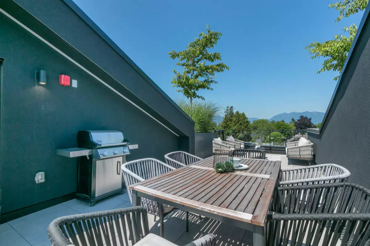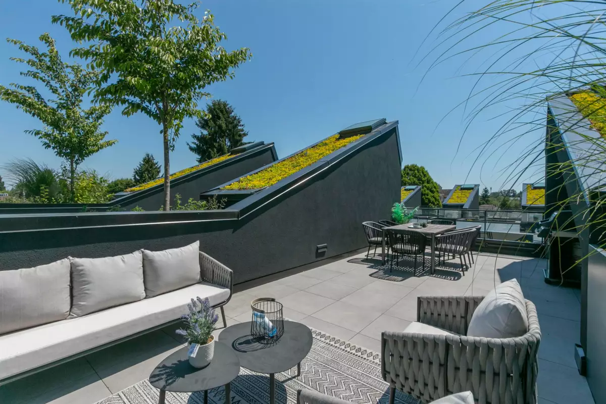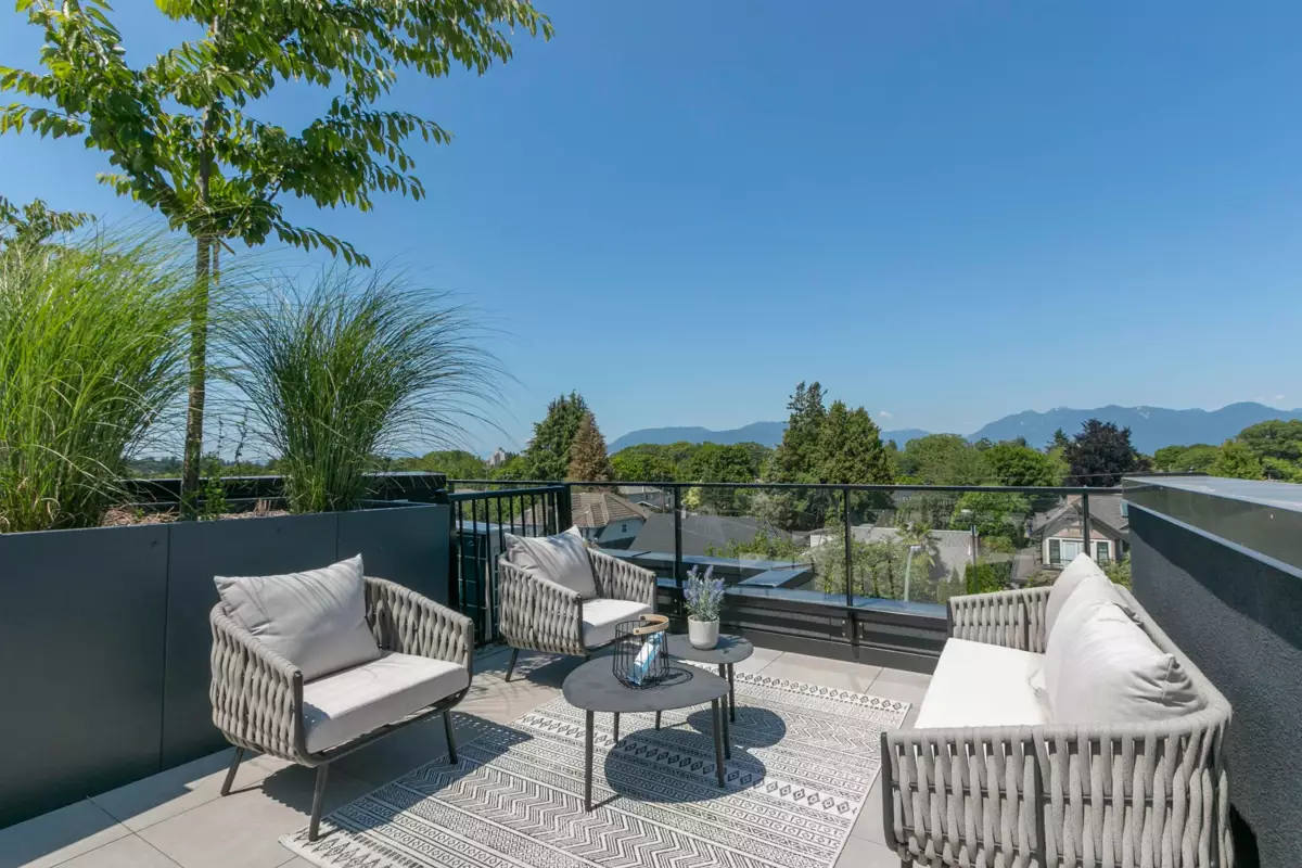 Stunning like-new, GST already paid, 3-bed 3-bath townhome with a 441 sqft rooftop patio with gas and water hook up at Just West! Nestled in the heart of Riley Park, this thoughtfully designed home features a functional floor plan, high-end finishings, an integrated Miele kitchen appliance package, ample storage, air conditioning, heated floors in bathrooms, and spacious bedrooms. Enjoy the beautifully designed community courtyard as a shared gathering space. This home includes two side by side EV-ready parking stalls, a large storage room, and extra bike storage. Located just steps from Queen Elizabeth Park, Nat Bailey Stadium, and Hillcrest Community Centre, short walk to King Edward SkyTrain station, providing easy access to both Cambie and Main Street’s vibrant amenities. OPEN SAT 2-4
