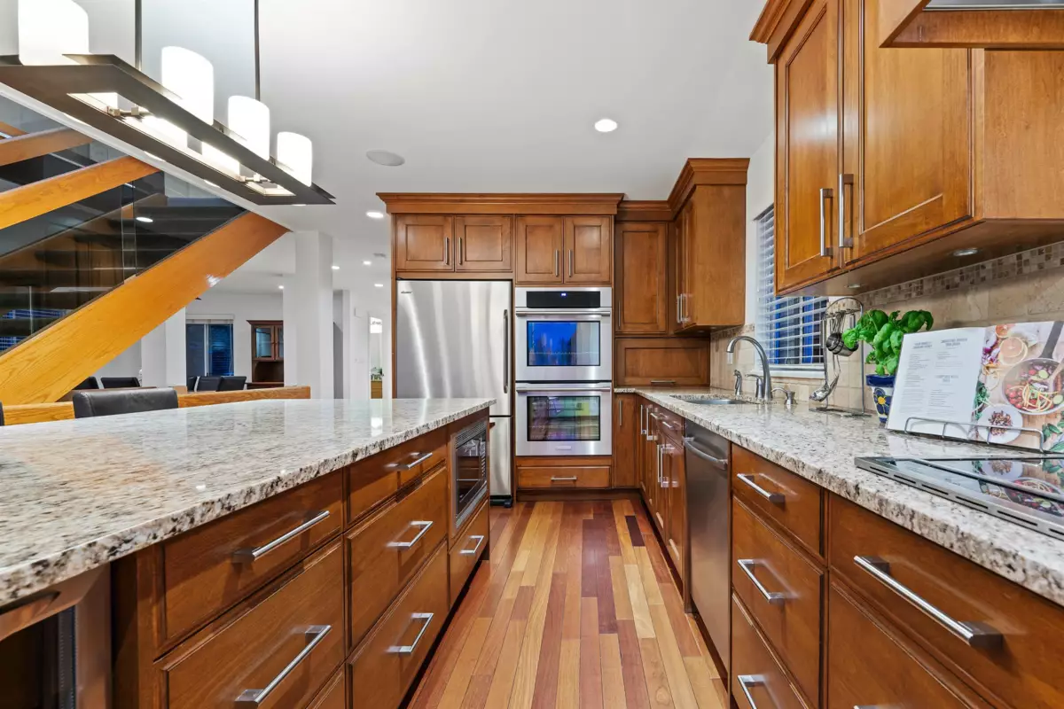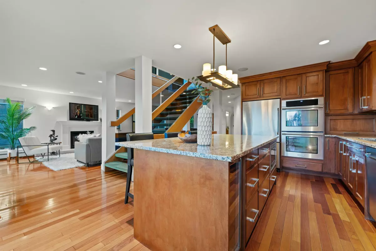 Beautiful Family Home Awaits In Upper Grand Boulevard. This charming, contemporary & south facing home offers 5 bedrooms, 4 baths, w/ fantastic city & water views. The main floor boasts an updated open-concept kitchen, dining & living room and 1 bedroom. The Main also opens to south facing balcony to take in the views w/ your morning coffee! Expansive windows throughout for an abundance of sunlight! The Upper level offers 3 additional bedrooms, A/C, plus family room w/ cozy gas fireplace. The lower level offers a great 1 bedroom in-law suite or mortgage helper. You'll love the private roof top deck for entertaining on those summer nights! Steps from Queensbury Elem, Sutherland Sec & Greenwood Park. Extremely well cared for, a real pleasure to show!