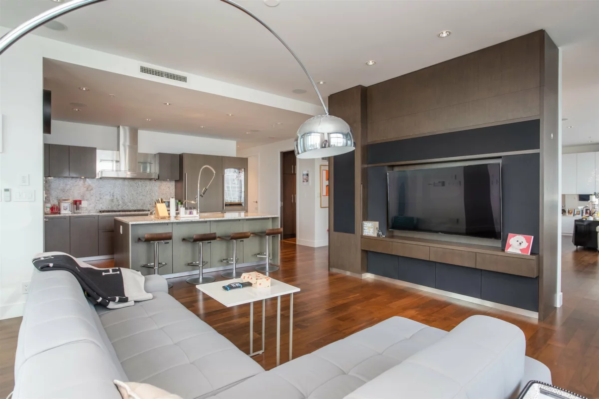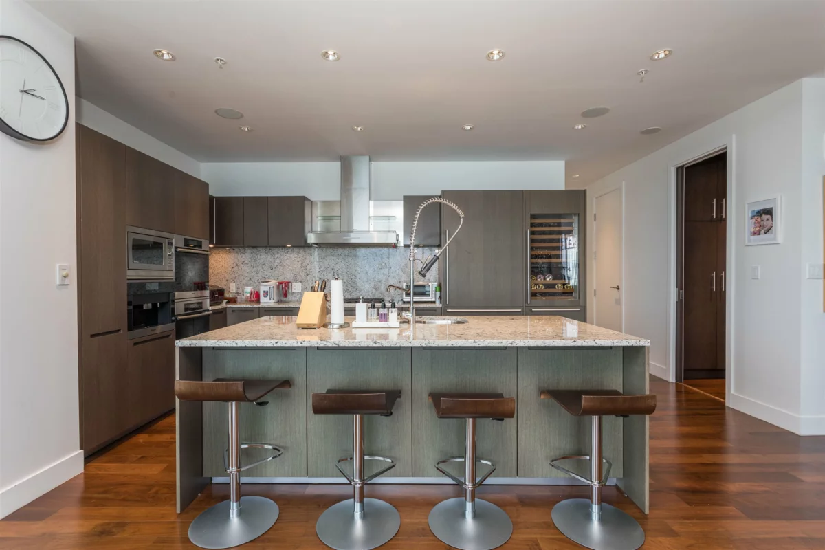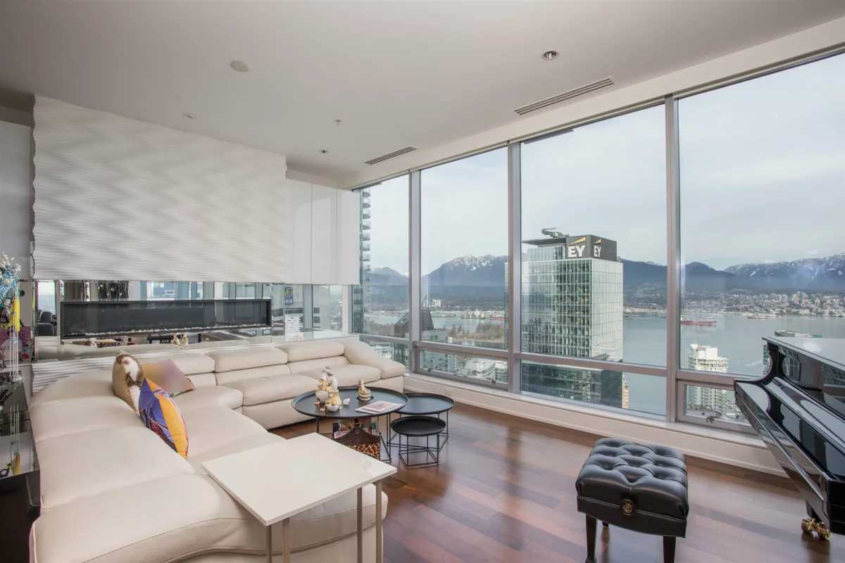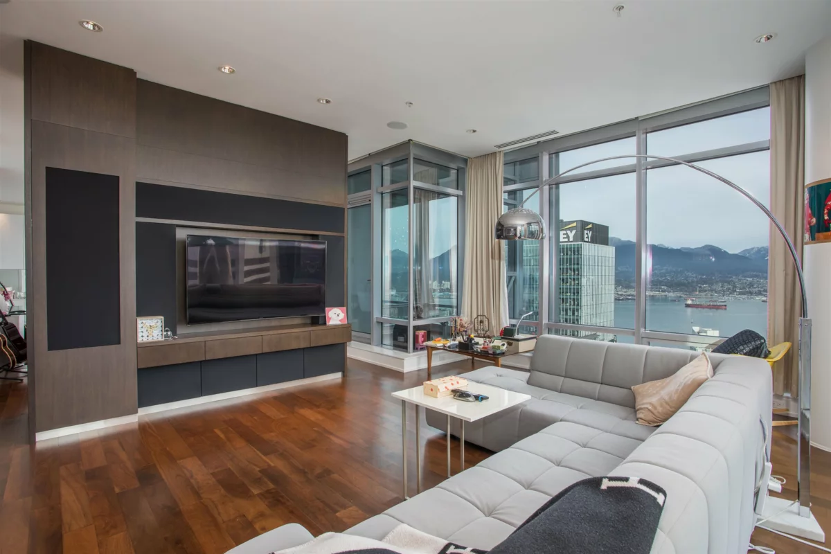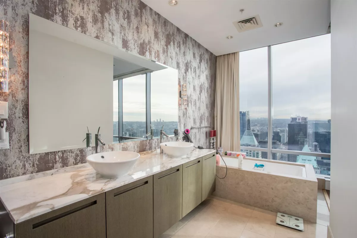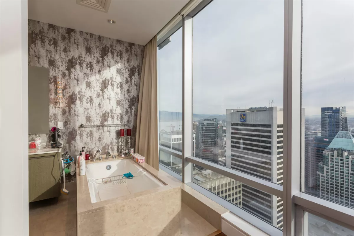 LIVE LIKE ROYALTY in this opulent 2-bedroom, 3-bathroom residence nestled within the prestigious Shangri-La. Meticulously upgraded with approximately $300k in enhancements, this suite boasts hardwood floors, state-of-the-art appliances, a bespoke temperature-controlled wine room, and automated shades & lighting. Revel in unobstructed vistas of the North Shore Mountains and Coal Harbor that will elevate your entertaining prowess in the expansive living and dining areas equipped with a built-in sound system. Retreat to the master quarters where a window-side soaker tub and spacious walk-in shower beckon you to unwind. This breathtaking property provides privileged access to the Shangri-La's 5-star hotel amenities, including a fitness center, pool, and a 24/7 concierge.