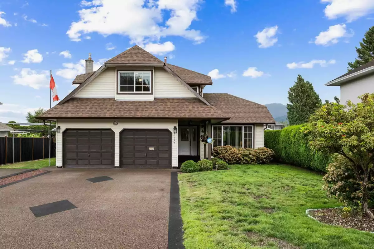 AMAZING FAMILY HOME with UPDATES on a quiet SARDIS CUL-DE-SAC + full RV PARKING w/ Sani Dump! First time on market in 35+ years, this 4 bdrm, 3 bath home features 2x6 construction on a 9554 sq ft fully fenced lot w/ stunning MOUNTAIN VIEWS. Updates include newer roof, gutters, windows, doors, furnace, A/C (heat pump), and exterior paint. RUBBERSTONE driveway over 56’ long fits 8 cars + garage. The beautifully landscaped yard boasts a 12x23 stamped concrete COVERED patio, inground irrigation, raised garden beds, & 12x12 shed. Side access allows for future carriage home/shop. Inside: 4 bdrms up + main floor den, spacious kitchen w/ newer counters & eating nook overlooking the backyard. A TURN-KEY home with room for all!