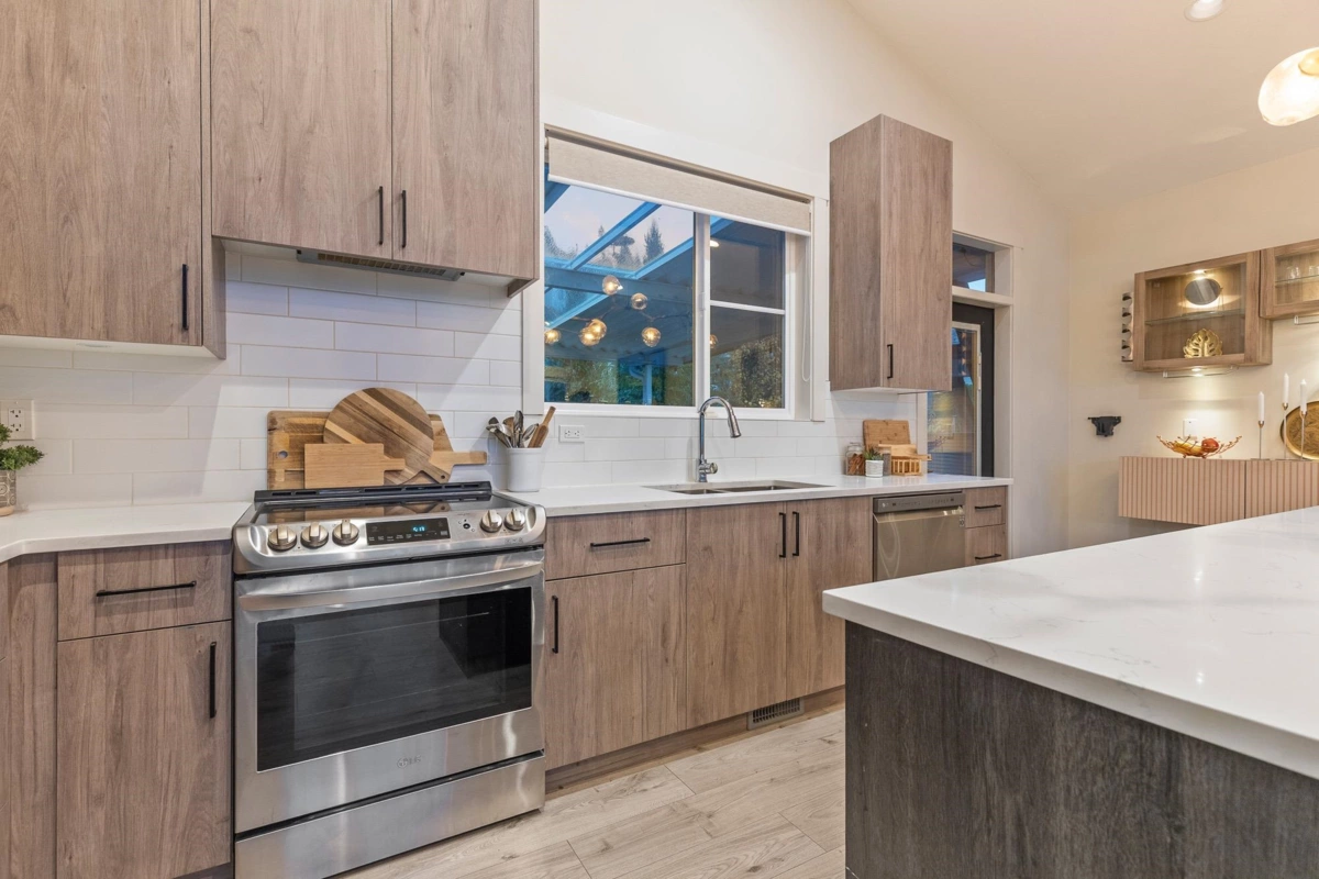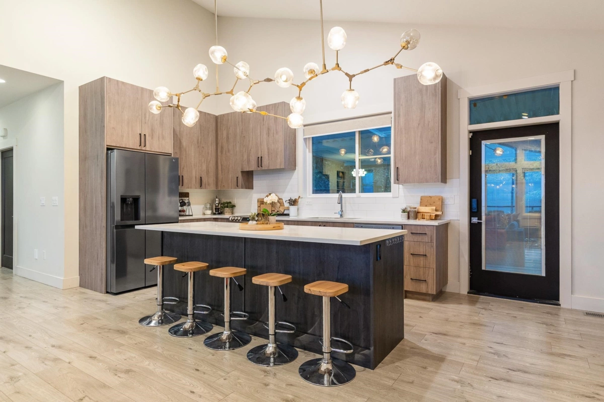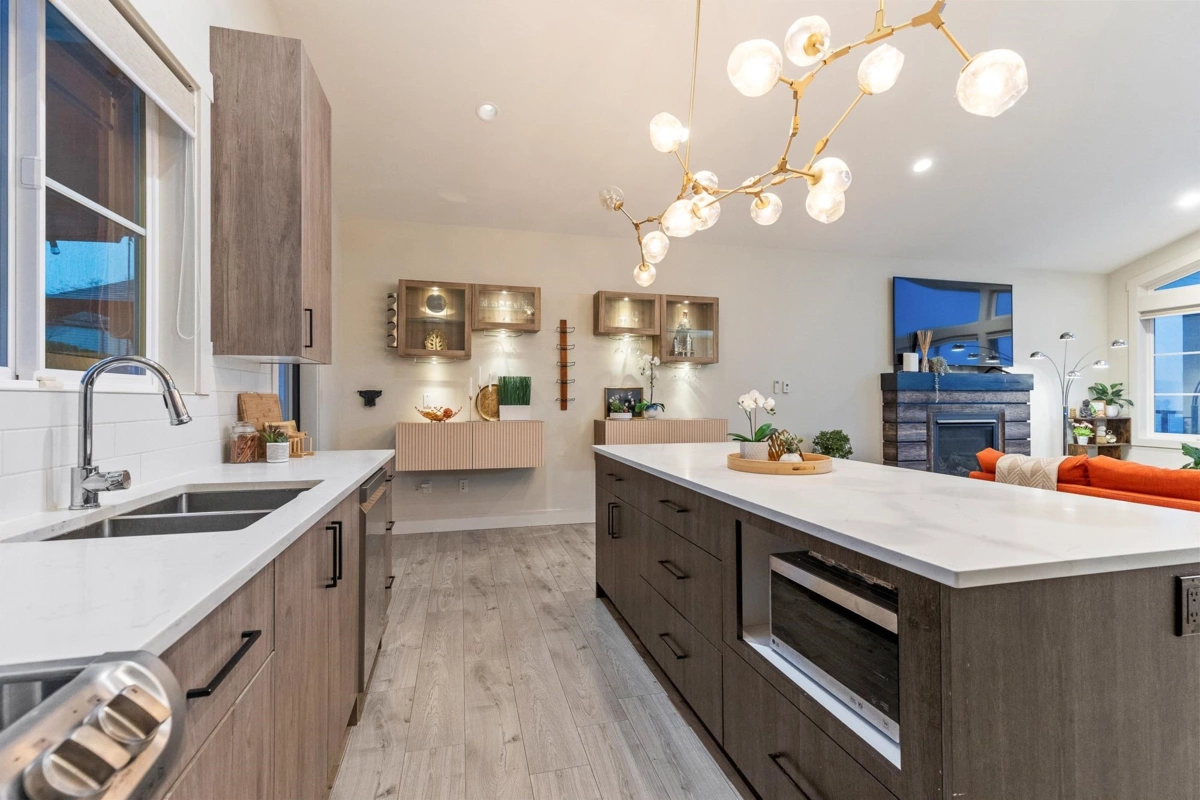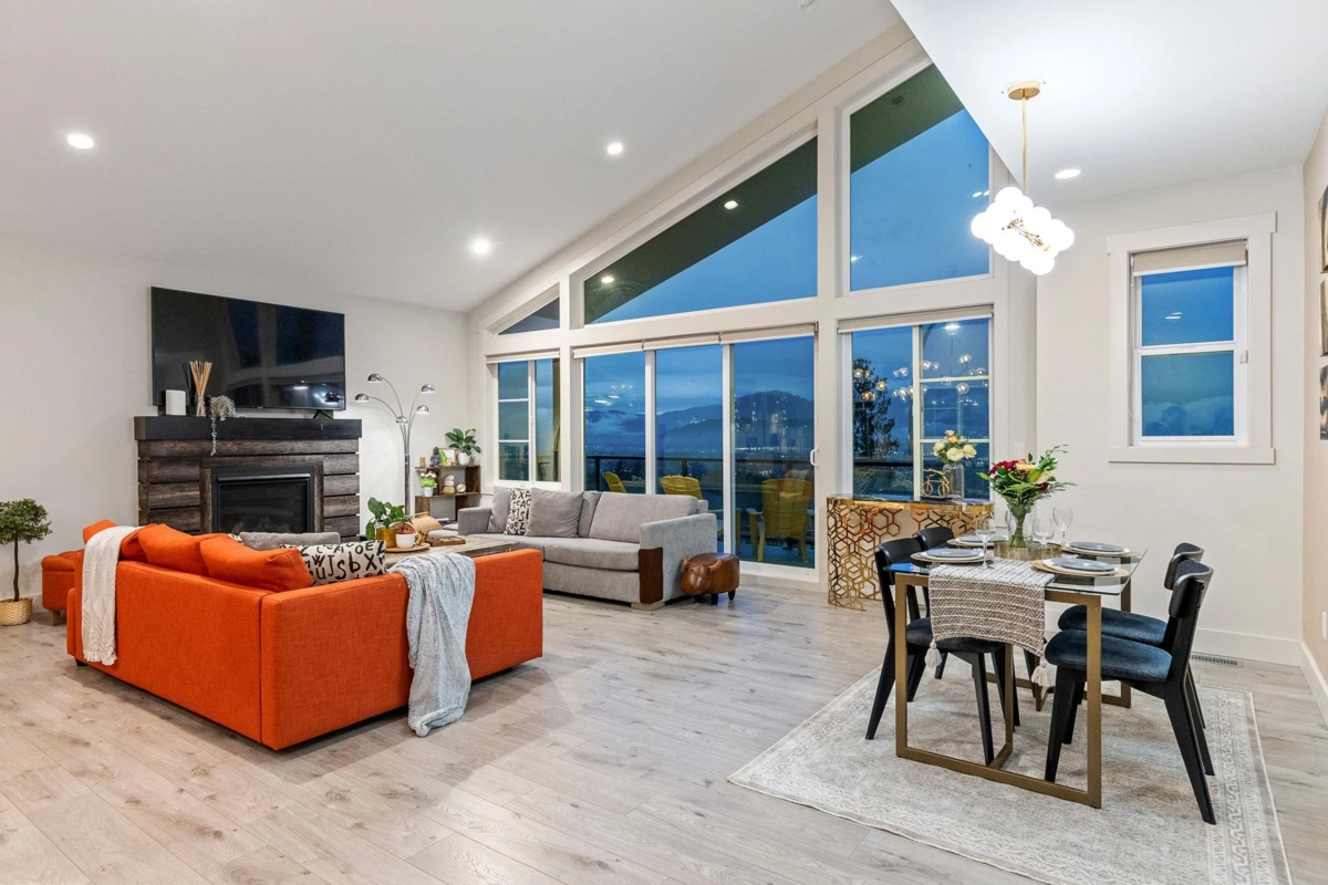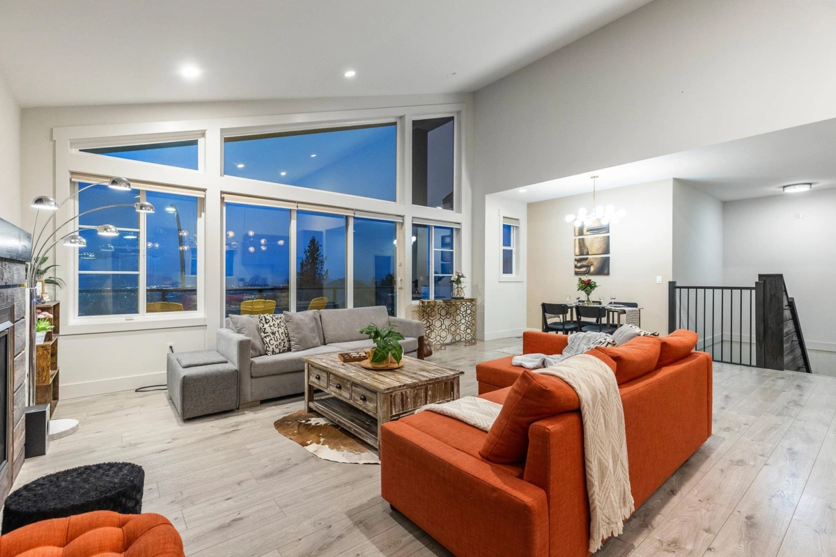 GORGEOUS MODERN basement-entry home featuring 3 bedrooms up PLUS a 1-bedroom DAYLIGHT suite with den! Enjoy a FABULOUS OPEN living space highlighted by a sleek modern kitchen with large island, SS appliances, chic lighting, gas fireplace, vaulted ceilings, and a MASSIVE window + front patio showcasing BREATHTAKING MOUNTAIN & VALLEY VIEWS! The primary suite offers another huge view window, TONS of natural light, a generous W.I.C., and a 4pc ensuite with dual sinks! Downstairs includes a bright 1 bed suite with separate entry and laundry! Additional perks: 20x20 covered vinyl deck, PRIVATE low-maintenance fenced yard, ULTRA-deep garage (perfect for trucks), and side RV parking! This STUNNING home checks every box — view it today and fall in love!