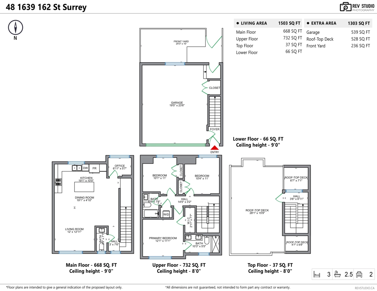Location! Welcome to Horizon, the luxury townhouse community built by reputable developer Apcorn. Located in the desirable location of South Surrey, Horizon is steps from urban amenities, beaches, parks, schools and shopping mall. This over 1500 sqft 3 Bedroom & Den unit comes with Rooftop patio + Front yard + Double Garage. It features a spacious layout with generous 9" ceilings, premium stainless steel appliances, durable plank flooring in the kitchen and living area, tranquil spa like bathrooms, ample storage and expansive oversized windows that provide natural light. EV Charging and Air Conditioning included. Amenities include Gym, Yoga Room, Club House, and Kids Playground. A MUST SEE!