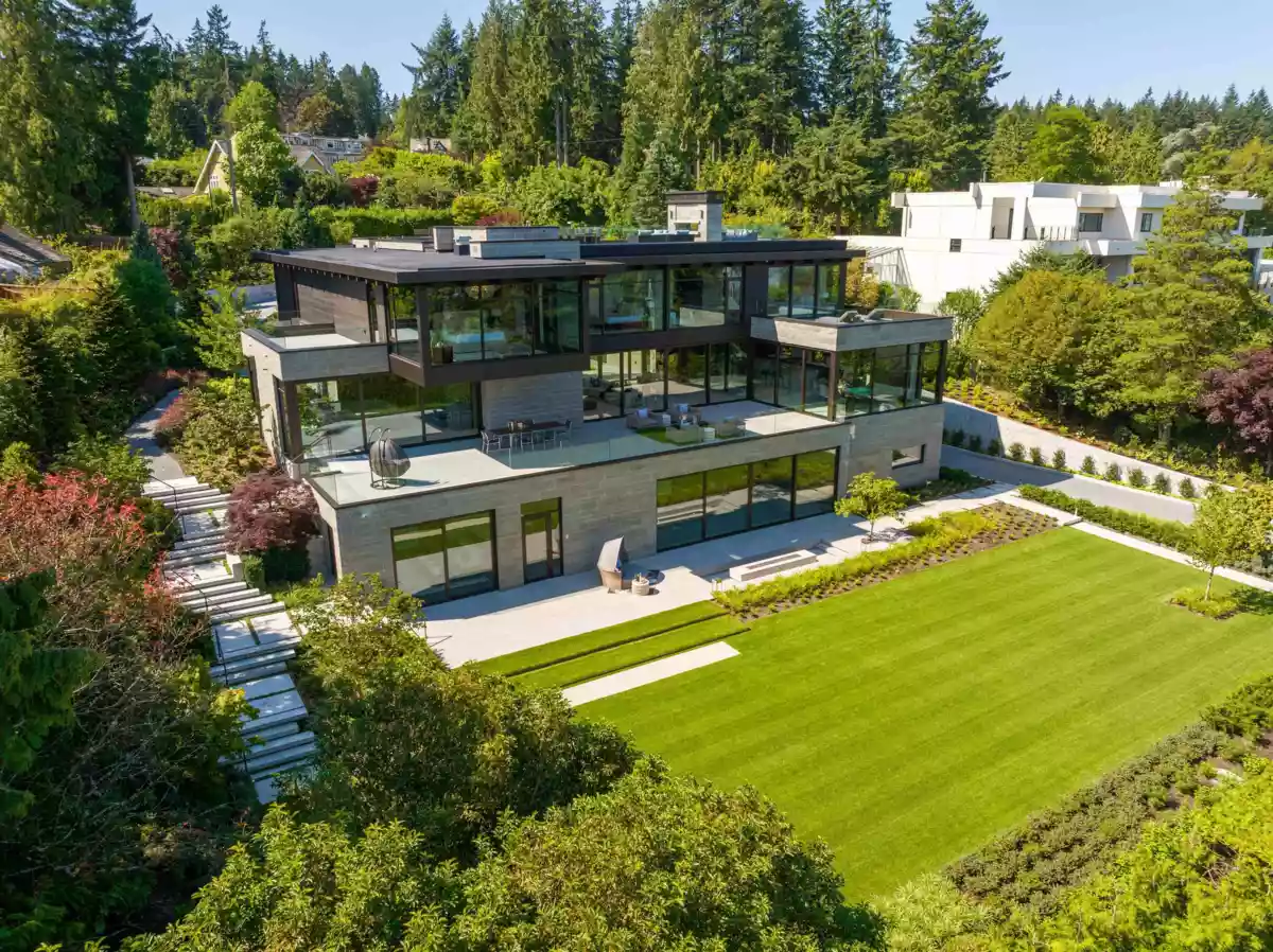 Magnificent & Contemporary. This elegant mansion in prestigious Pt. Grey showcase quality craftsmanship, luxurious materials & impressive detailed finishings. Over 12,000sqft of livings area offer Italian marble floor on Main. Grand foyer w/elevator & a stunning staircase. Massive Chef kitchen w/marble counter, a wok kitchen & eating area. Open plan living room, dining room & family room with access to 1,404 sqft patio. 5 well-appointed bdrm include a spacious master bdrm w/large Italian walk-in closet, marble bathroom & a den. Lower floor feature media room, living area w/wet bar, wine cellar, gym & I/D pool. An entertainment sized rooftop deck w/fireplace to enjoy the panoramic views of water, mountain & city. Lush landscape, 8 car garages A/C & more. Close to beaches, golf course & UBC.