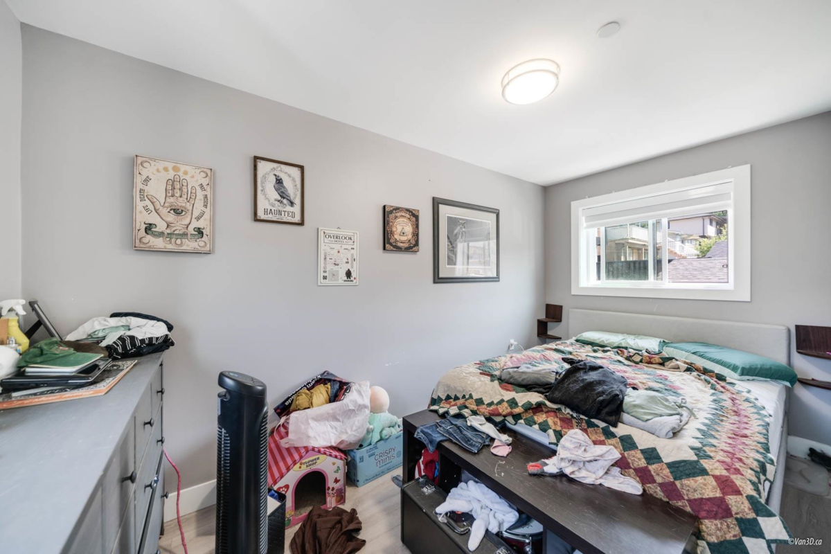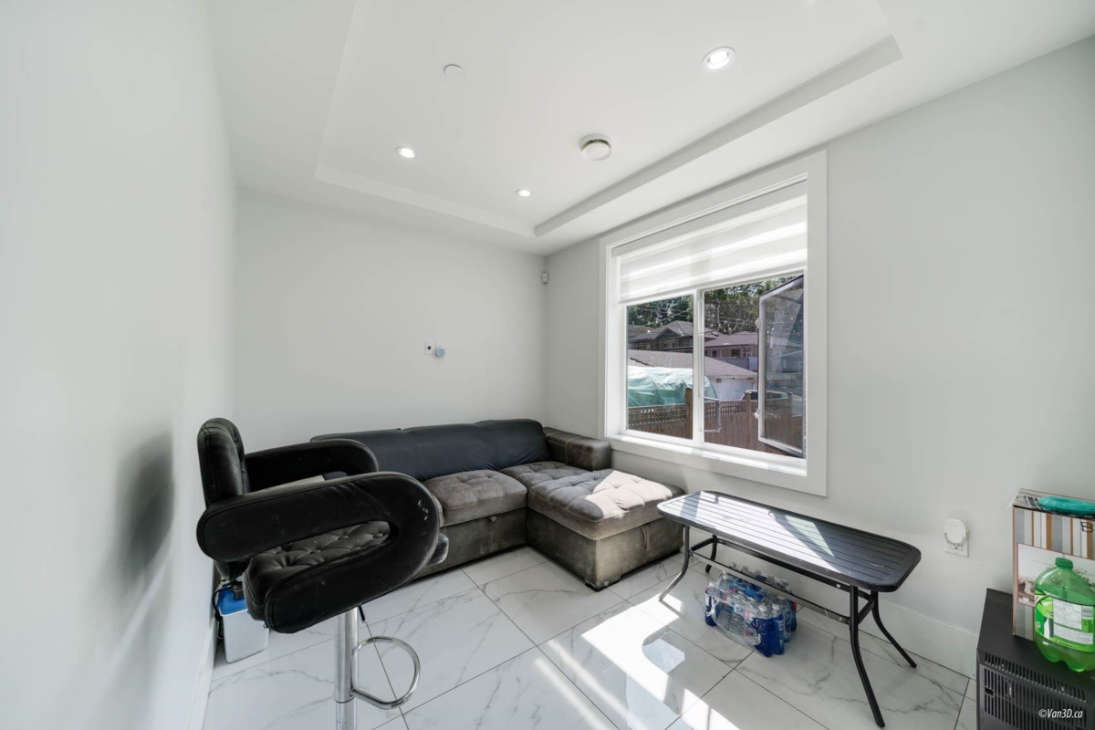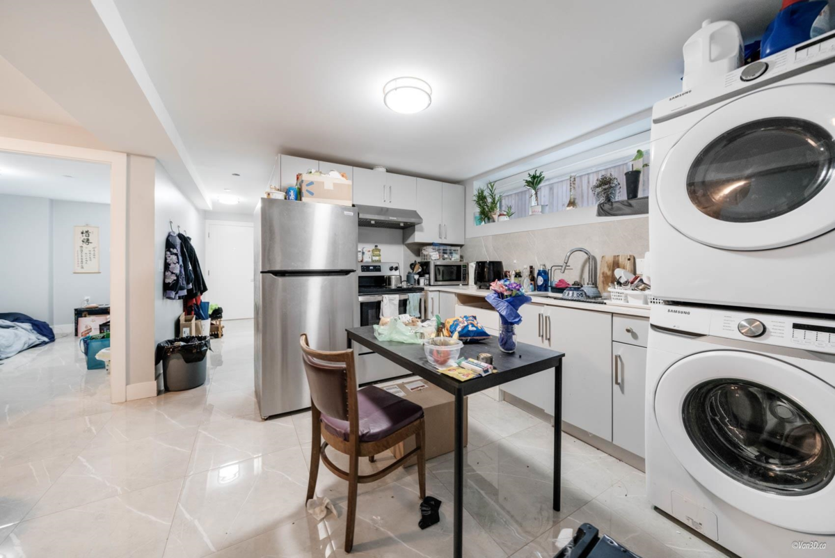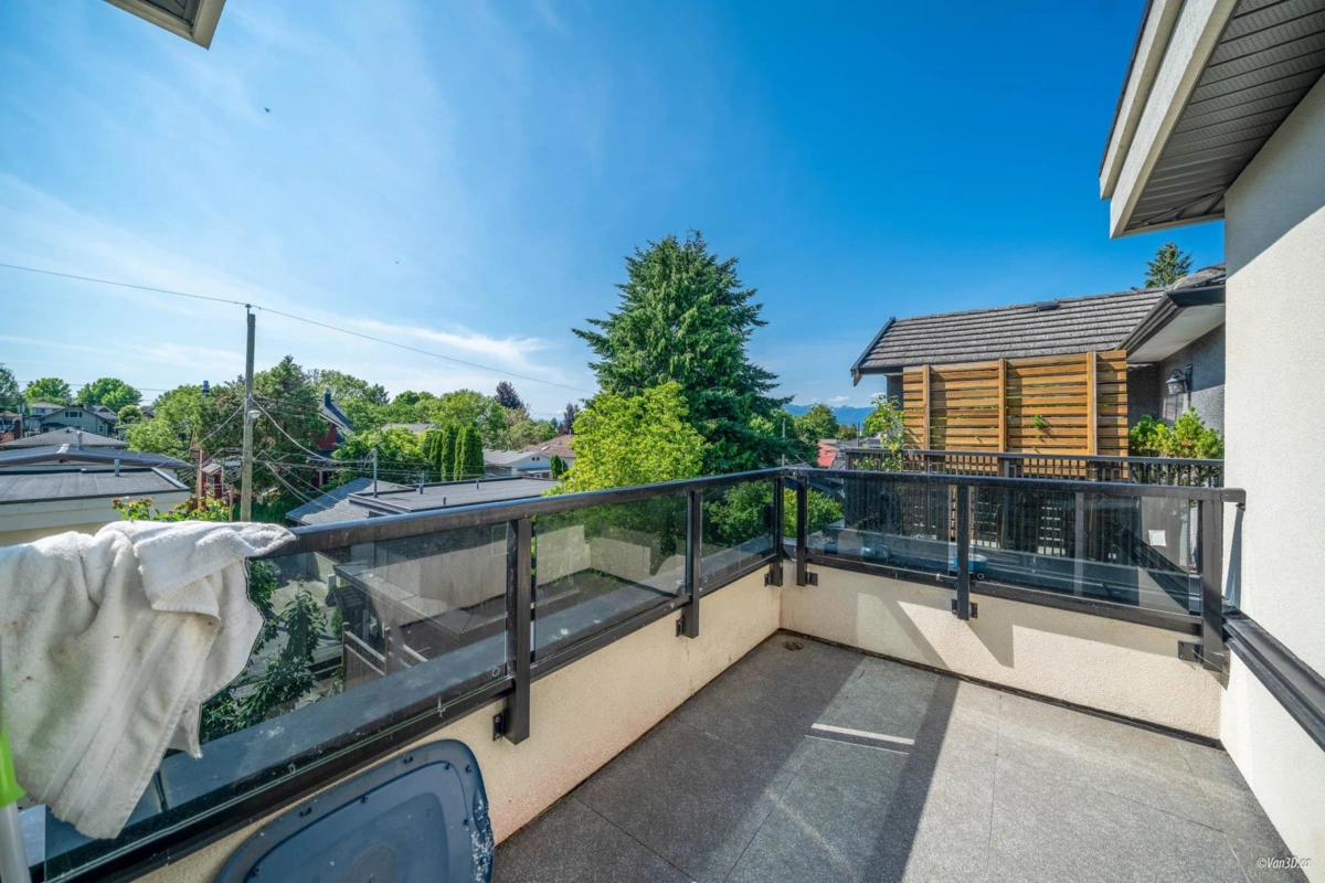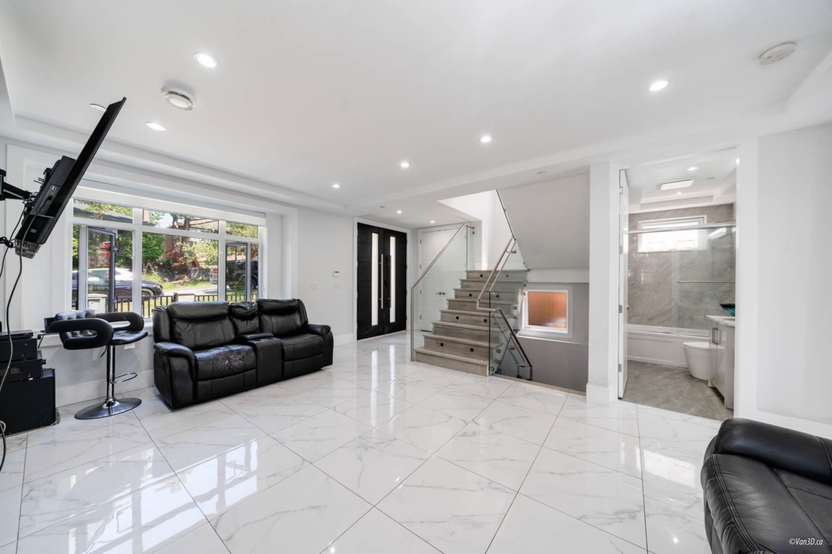 Custom-built 3-level family home with a fully finished 3-bedroom basement suite and laneway house in the desirable Knight and East 33rd area. Features a bright, open-concept main floor layout with a bedroom ideal for extended family or a home office. Designer kitchen with island and stainless steel appliances, oversized tile flooring, and stylish glass railings. The top floor boasts 3 bedrooms and a breathtaking private rooftop deck with mountain views. The primary bedroom includes a spacious walk-in closet and an ensuite with double sinks and a rain shower. Separate laundry in each suite. Two sump pumps for added peace of mind. Conveniently located near Kensington Park and Community Centre, T&T Supermarket, and transit.