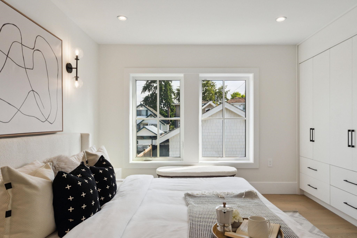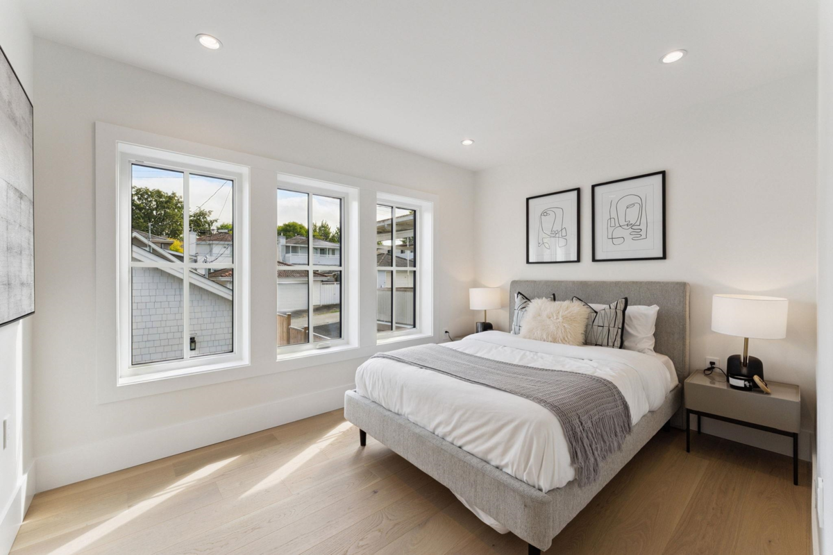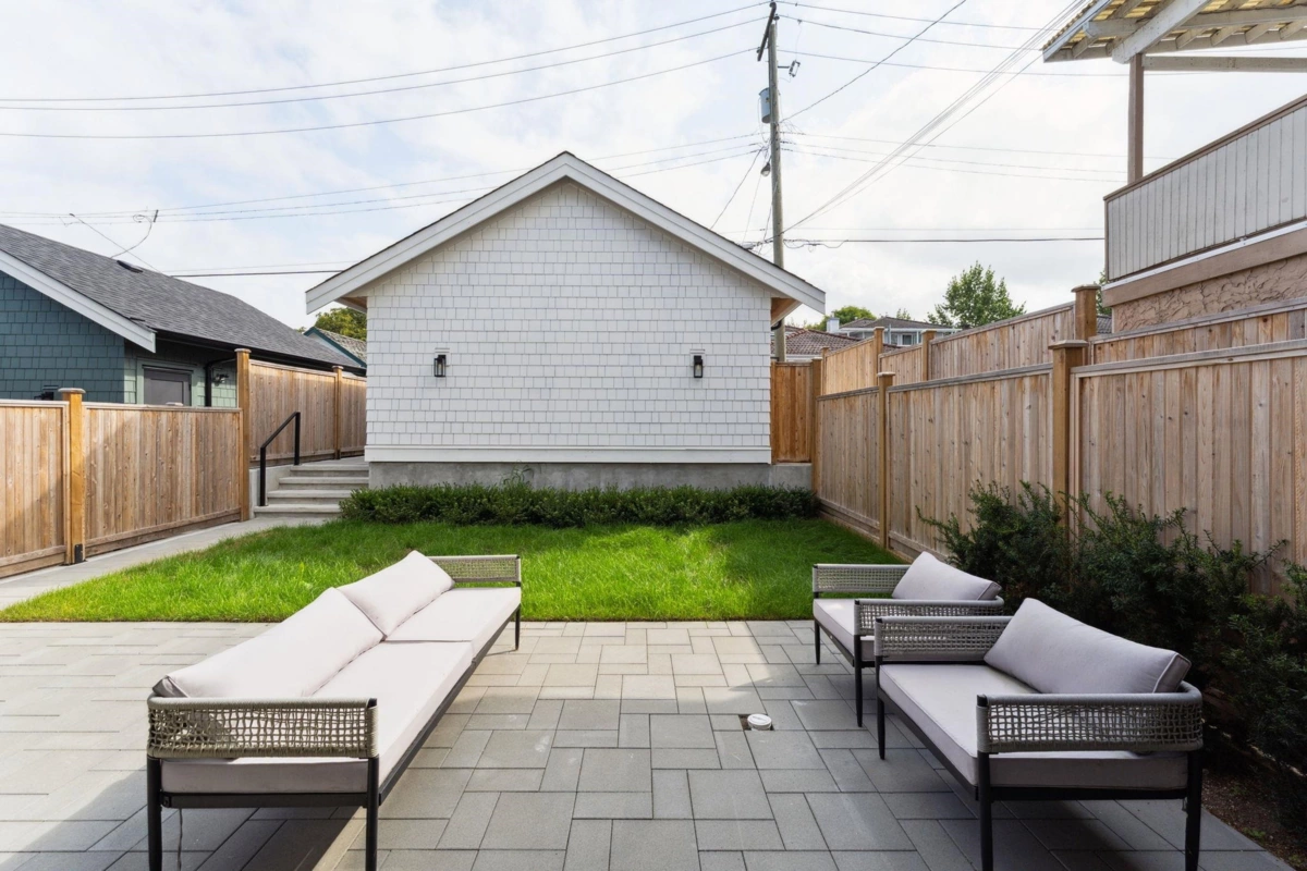 Luxurious back-unit duplex by Encore Collection in East Vancouver with stunning downtown views. This home showcases high-end exterior finishes, blending Hardie, Brick, and Norwegian Fluted siding, this 3-bed, 3.5-bath home offers an open-concept main floor, gourmet kitchen with Fisher & Paykel appliances, and sleek stone countertops. Two second-floor primary bedrooms include private ensuites, while the top-floor third bedroom offers a tranquil retreat. Additional highlights include air conditioning, white oak hardwood floors, custom cabinetry, CCTV, alarm system, 12' accordion patio door, and private garage. Close to parks, schools, transit, shopping, and dining. This home combines comfort, style, & an unbeatable location.