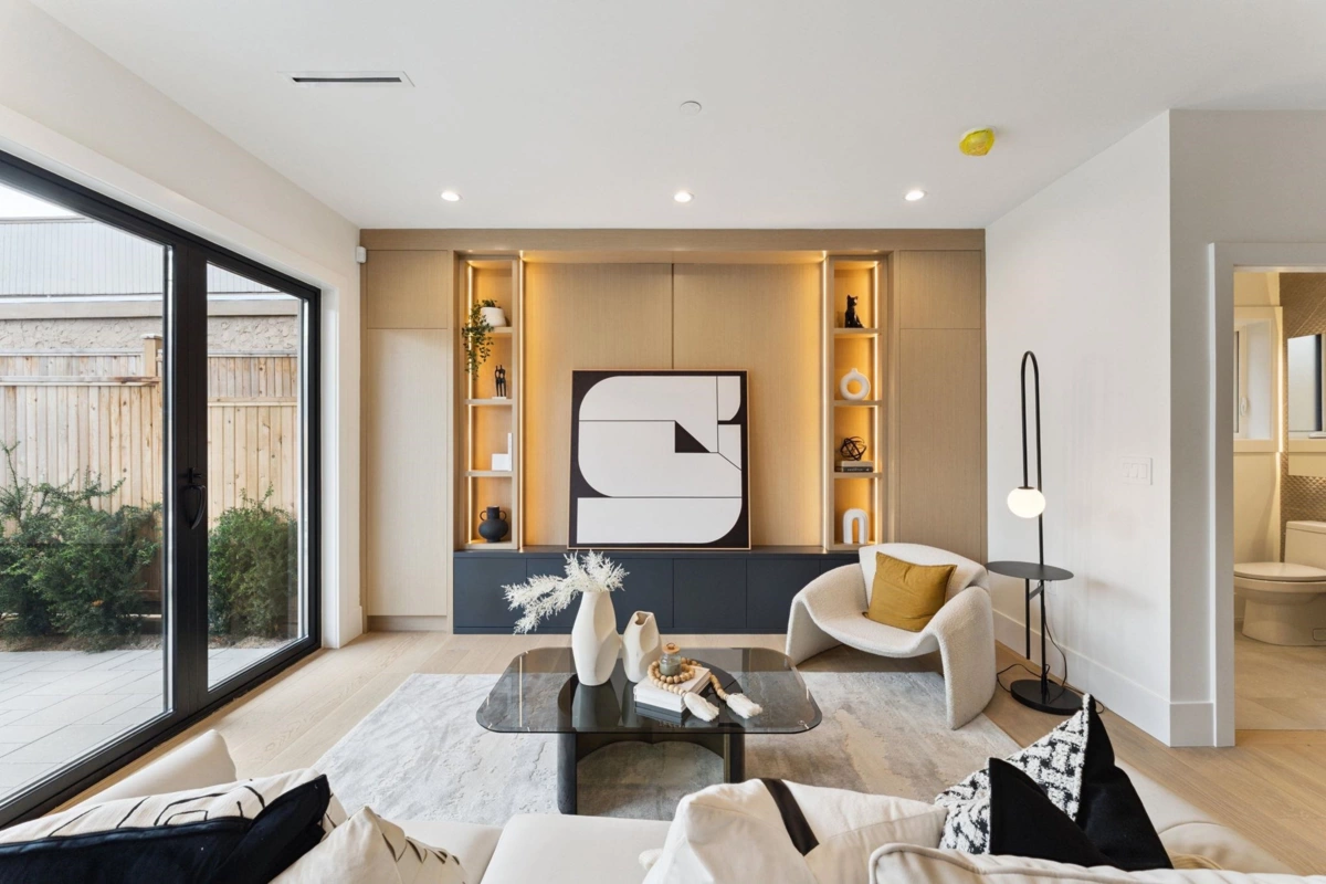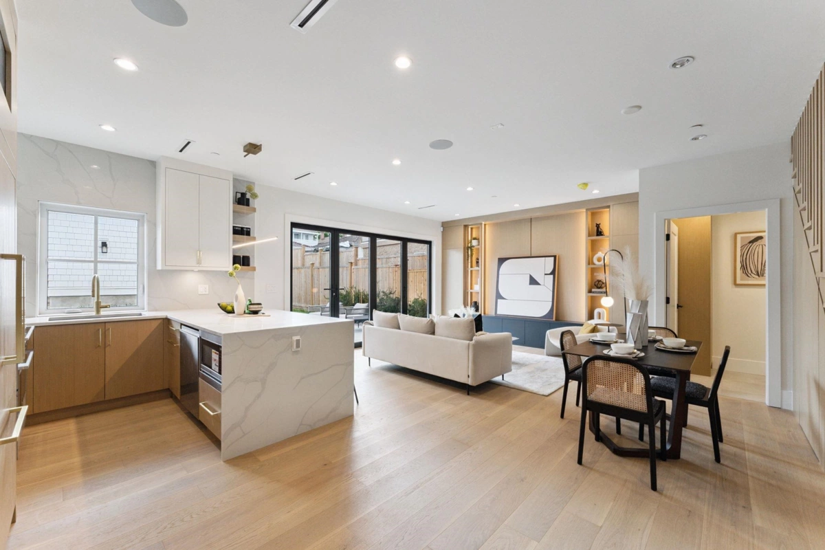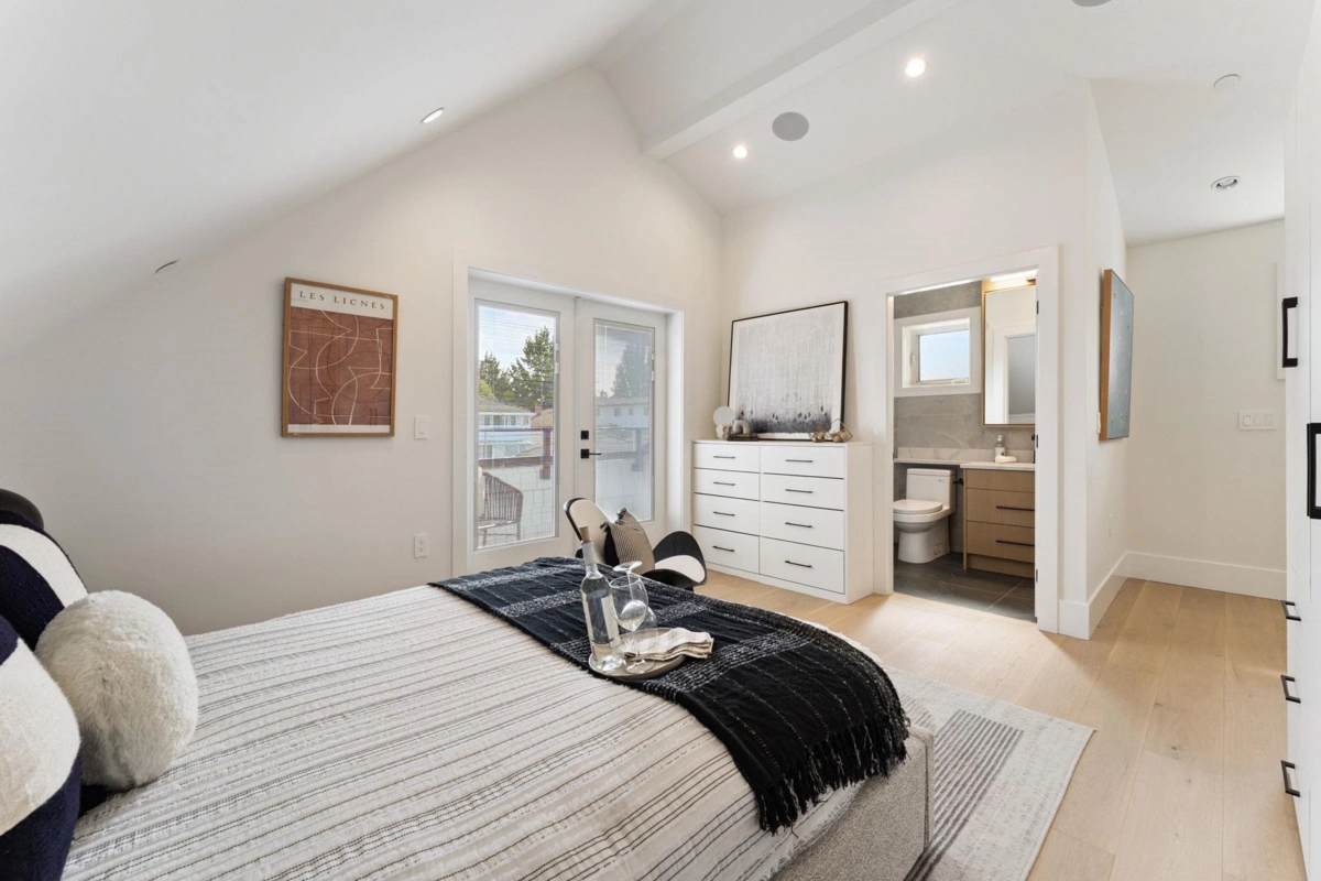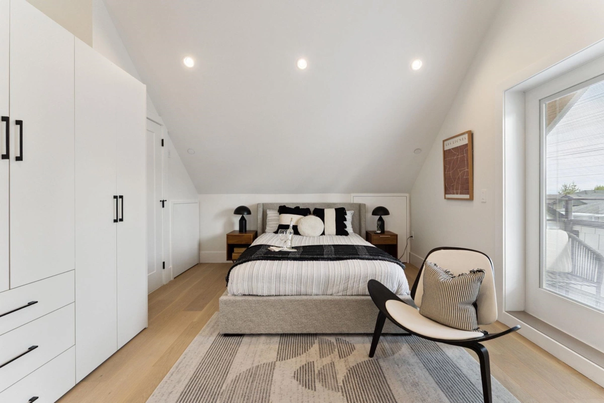 Luxurious back-unit duplex by Encore Collection in East Vancouver with stunning downtown views. This home showcases high-end exterior finishes, blending Hardie, Brick, and Norwegian Fluted siding, this 3-bed, 3.5-bath home offers an open-concept main floor, gourmet kitchen with Fisher & Paykel appliances, and sleek stone countertops. Two second-floor primary bedrooms include private ensuites, while the top-floor third bedroom offers a tranquil retreat. Additional highlights include air conditioning, white oak hardwood floors, custom cabinetry, CCTV, alarm system, 12' accordion patio door, and private garage. Close to parks, schools, transit, shopping, and dining. This home combines comfort, style, & an unbeatable location.