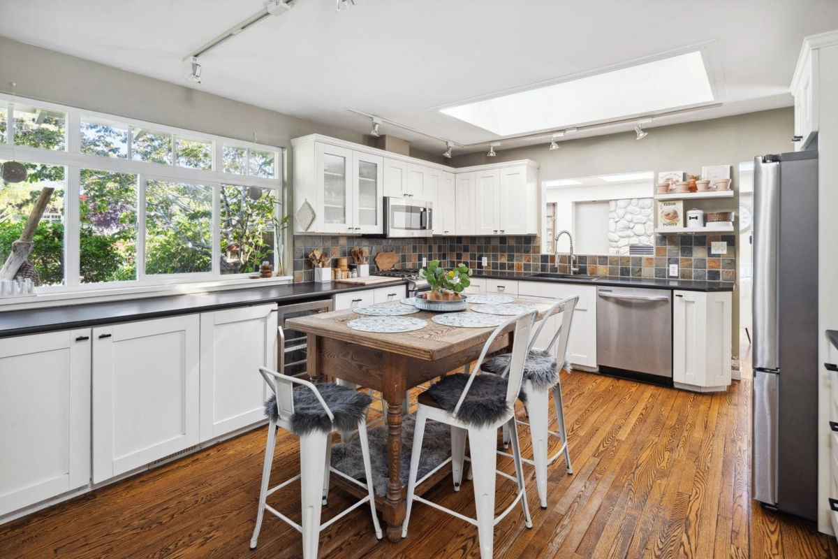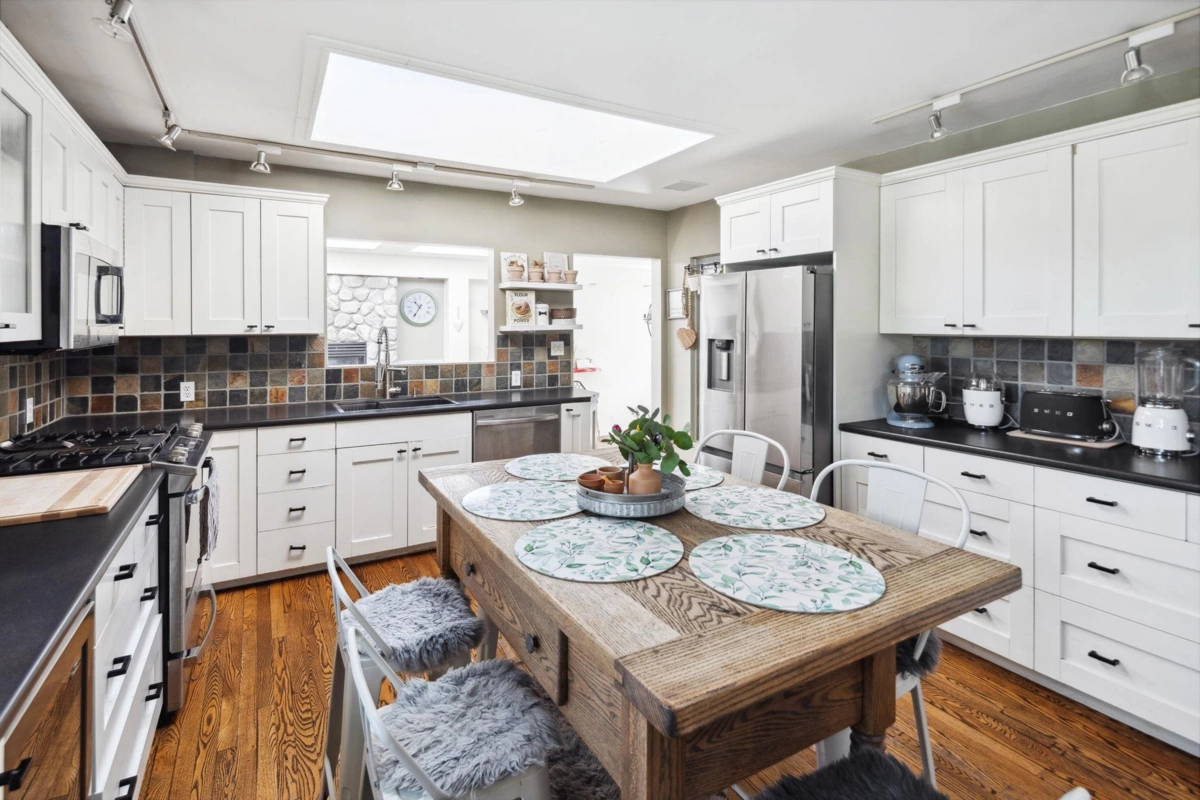 Exceptionally renovated 2,278 sq.ft. 4 bedroom rancher situated on an almost 9,000 sq.ft. flat, private south lot with almost 2,400 sq.ft. of additional outdoor patios/decks. This exquisite home has an entertainer's delight floorplan; the kitchen with white shaker style cabinets, is located at the front and overlooks the living room with a stately fireplace and skylights flooding the home with natural light. The sunken family room offers French doors leading to the patio. The bedrooms are quietly situated in the 'west wing' of this home. Stunning oak & slate floors throughout and so much more! A true Tsawwassen classic!