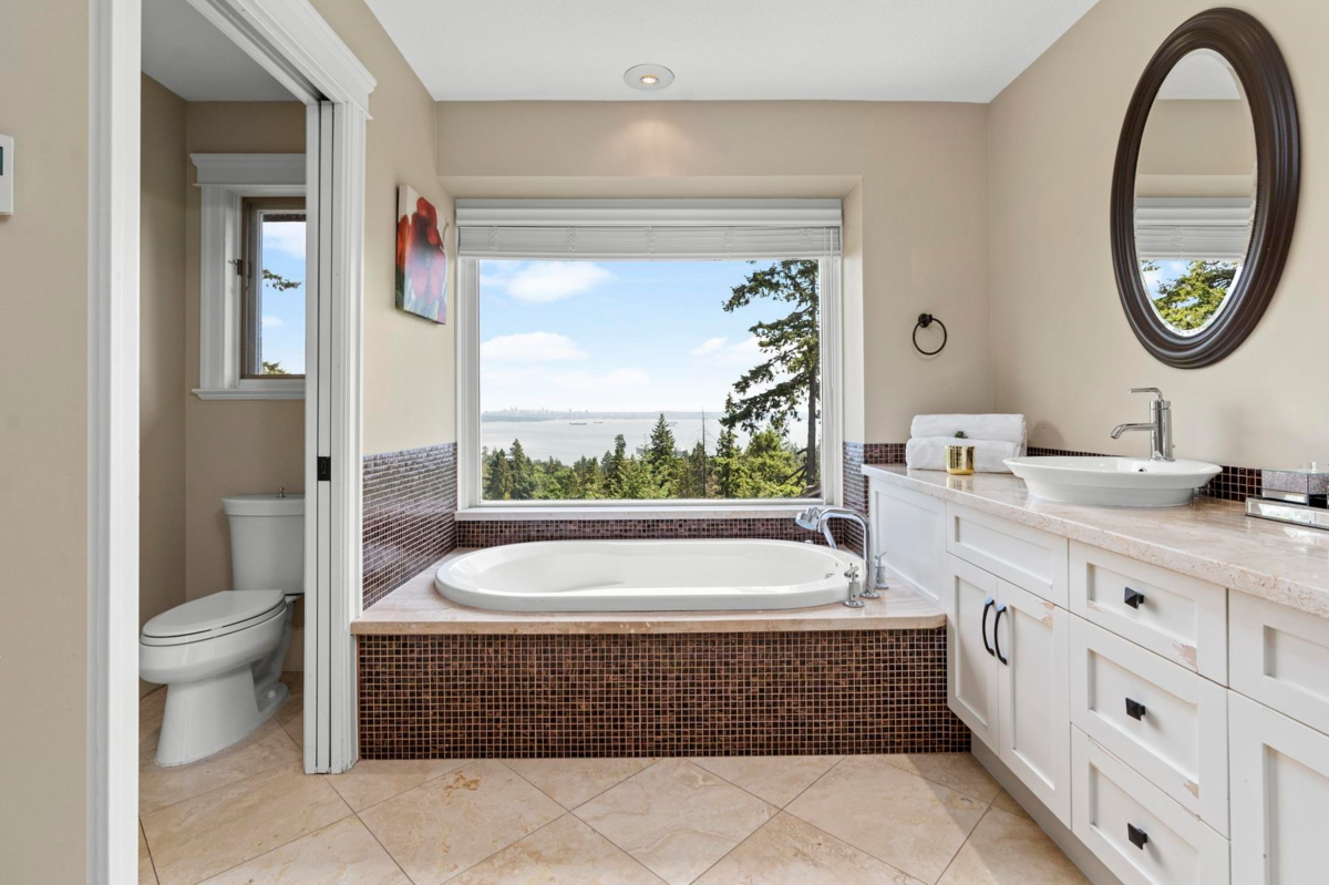 Situated on a sought-after Caulfeild cul-de-sac, contemporary 5 bedrs family home sits on a spacious, sun-soaked 14,746 sq ft lot with stunning ocean and city views! This home boasts a gourmet kitchen with top of the line stainless steel Subzero fridge, Jenn-Air double wall oven, granite countertops and built-in wine rack. Other features includel large livingroom with high ceilings, French doors, master bedroom with large walk-in closet, built-in vanity and 10 piece en-suite with rain shower and mosaic tiling, hardwood floors, 4 fireplaces, complete multimedia system, security cameras, ample storage and large deck for summer entertaining. Within walking distance to Caulfeild Elementary, Rockridge High School and Caulfeild Shopping Centre. Public Open house on Sun 2 - 4pm, Nov 23rd.