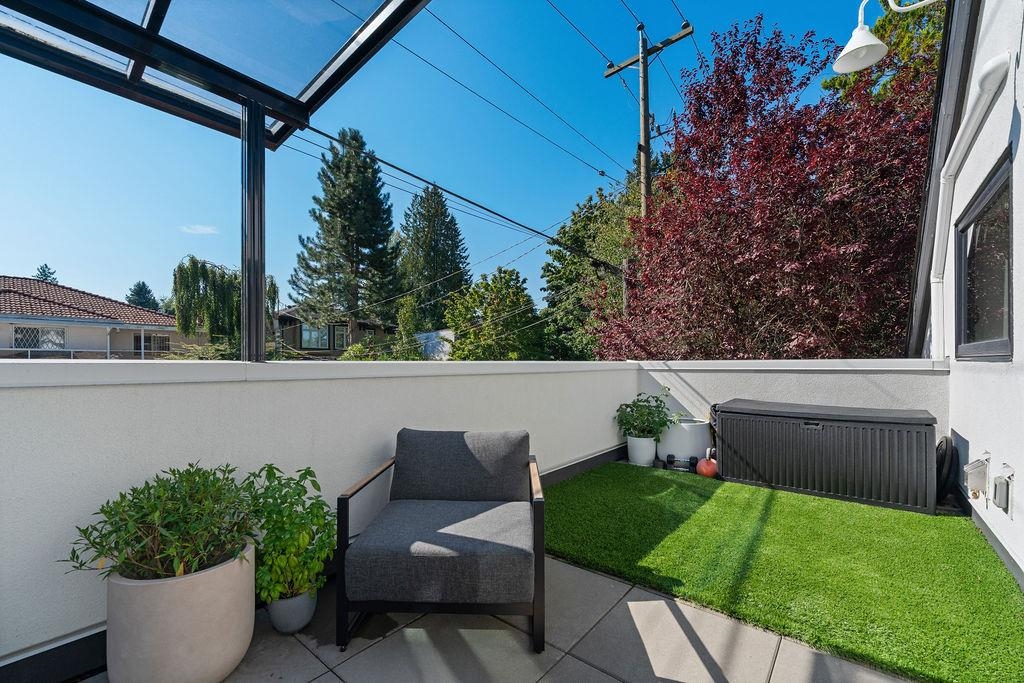 Ideally located in the heart of the West Side, this stunning home features 2 level living with a 170 sq ft partially covered south facing patio on the quiet side of this luxurious 6-plex. Timeless design by Sophie Burke, architecture by Birmingham & Wood inspired by Spanish Revival. Featuring a spacious primary, vaulted ceilings, A/C, radiant heat, gourmet kitchen, herringbone white oak hardwood floors, 2 spa like baths, custom built ins & jr 2nd bed ideal for nursery, office or guests. Exceptional location close to Kerrisdale, Kitsilano, top ranked schools & private clubs. Steps to Quilchena Park, coffee shops, groceries & restaurants. Enjoy natural light, your own front door to the private courtyard & a lovely outlook over beautiful tree lined streets. Unique, thoughtful, spectacular.