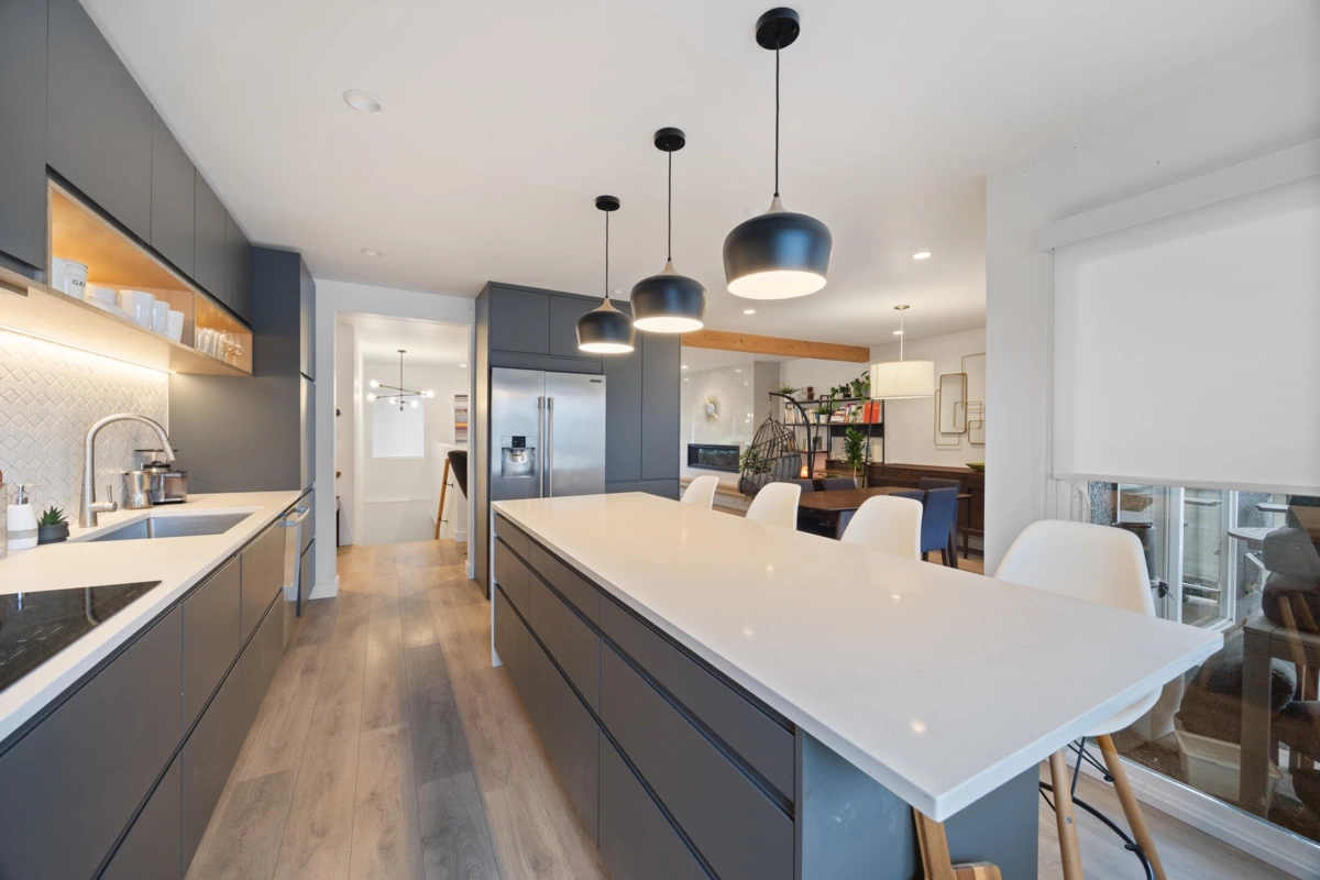 Completely renovated in 2020, top to bottom! Down to the studs and renovated on 2 levels. Features 3 bedrooms up and a 3-bedroom ground-level suite—perfect for in-laws or extended family. Includes 3 full bathrooms, 2 stunning kitchens, and 2 laundries. Quality updates throughout: modern bathrooms, laminate flooring, updated plumbing and electrical, exterior and interior paint, spray foam insulation, and soundproofing between floors. Fully permitted with separate heating systems (forced air up, electric in-floor down), 200-amp service with surge protector, 100-amp sub panel up, and 50-amp exterior. Roof (2020). Networking cables (Cat 6) installed. Centrally located near The Amazing Brentwood, Metrotown Shopping, BCIT, SFU, and easy access to Hwy 7 & Hwy 1.