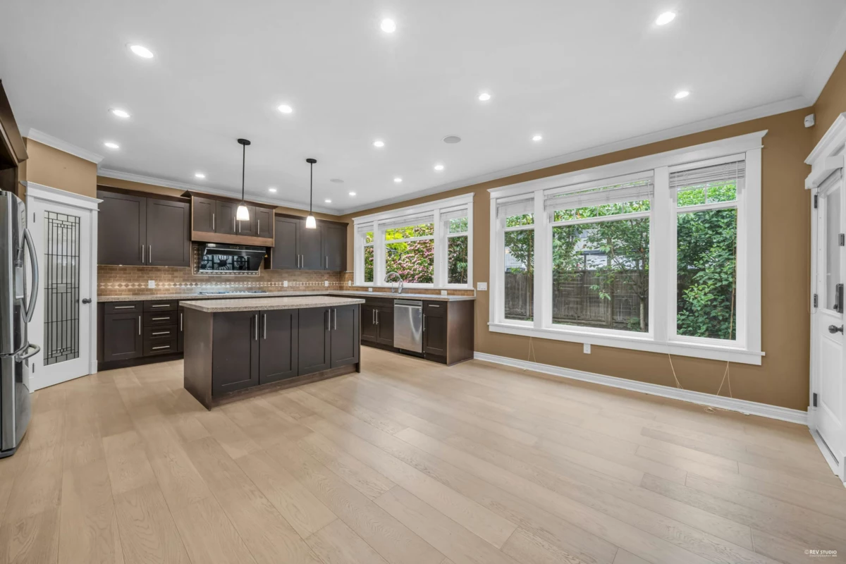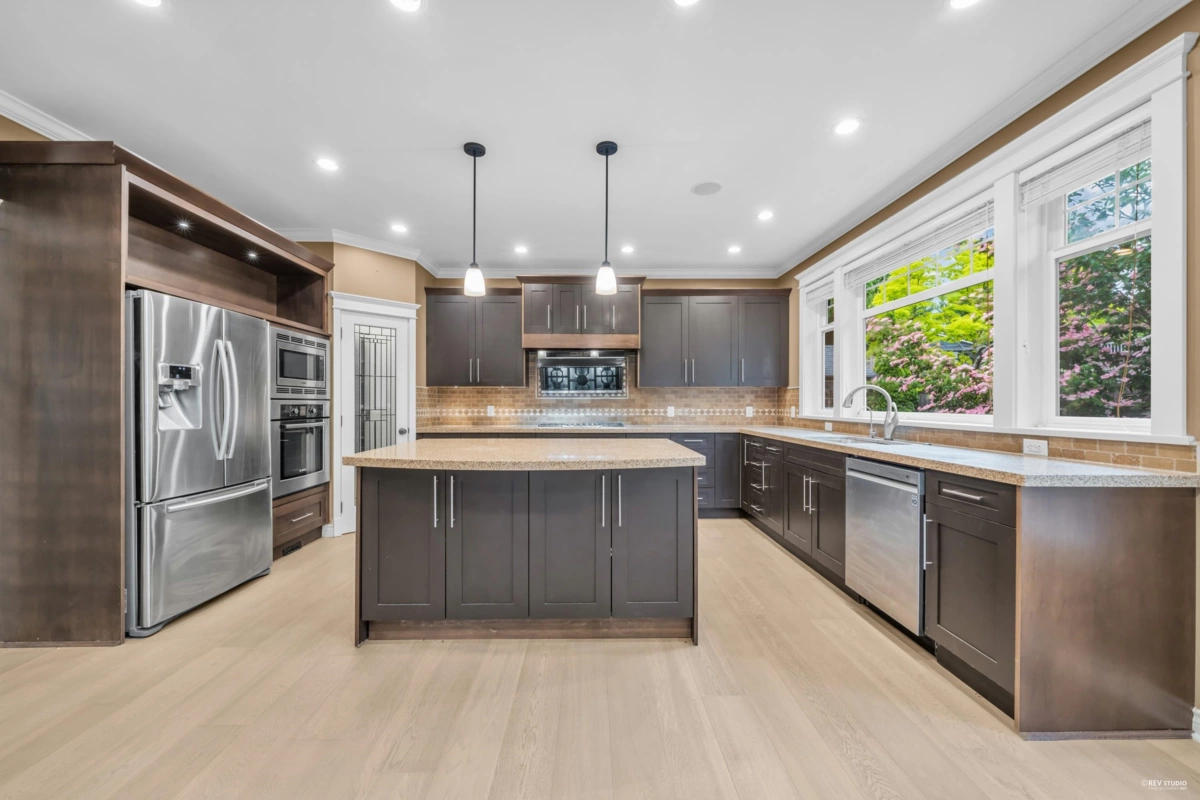 This custom-built home offers 2,802 sq ft of living space, featuring 4 bedrooms, a den, and a 3-car garage with a convenient drive-through to the backyard. It also boasts an open floor plan with spacious rooms designed for entertaining. The oversized kitchen and dining area provide a great view of the private, hedge-lined backyard. The property is beautifully landscaped front and back, includes a detached workshop/shed with power. Set on a large 7,481 sq ft lot with 80 feet of frontage, this home boasts excellent curb appeal in the neighborhood surrounded by mature trees. A warm and inviting home, perfectly suited for the whole family.