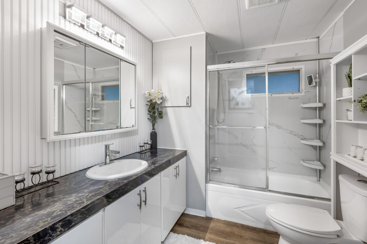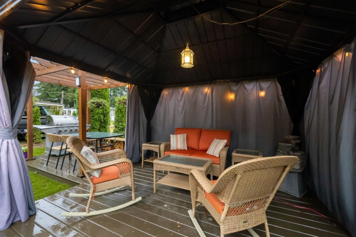 Welcome to Fernridge Park, a peaceful and highly desired 55+ community in the heart of Brookswood, just steps from IGA, local restaurants, transit, and beautiful Campbell Valley Park. This fully renovated 3-bedroom, 1-bath home offers 865 sq ft of bright, modern living with nothing left to do but move in. Enjoy a private, park-like backyard complete with a charming gazebo, two large storage sheds, and space for a motorhome, boat, or up to 4 vehicles, a rare find in the park. Inside, the home features new updates throughout, keyless entry, security cameras, 2 A/C units, and all appliances included. With a large carport, quiet surroundings, and a friendly, well-run community atmosphere, this home offers exceptional value in an unbeatable location!