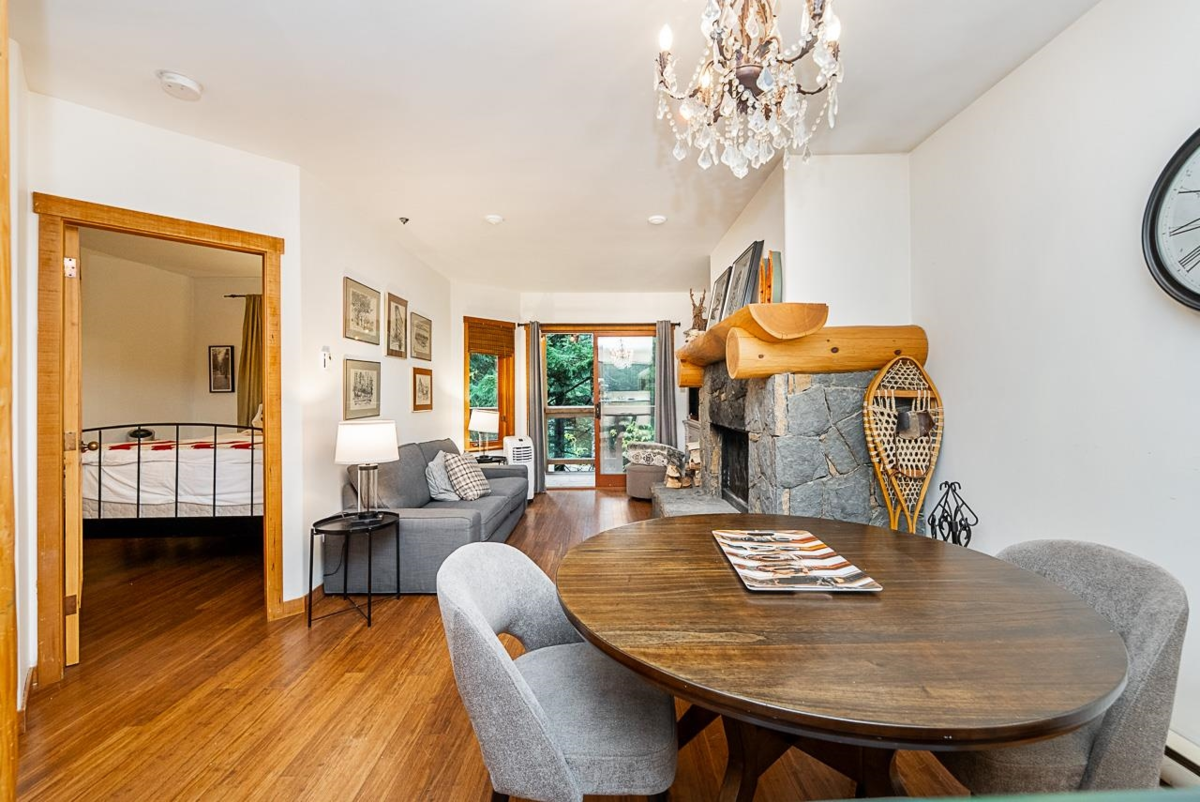 Ski right to the hot tub! Settle into this beautifully crafted log-and-beam mountain retreat. This spacious 1 bedroom + den home features an open layout with a direct path to your private patio and a gas-started wood-burning fireplace that sets the perfect post-slope atmosphere. Heated floors in the kitchen, foyer, and bathroom add year-round comfort. Enjoy easy Ski access to the Dave Murray run on Whistler Mountain, leading straight into Creekside. The boutique complex has only six homes and offers impressive amenities, including a large seasonal pool and a year-round outdoor hot tub. A private single-car garage provides secure gear storage. Phase 1 zoning allows nightly rentals, giving you the flexibility to earn revenue immediately. OPEN HOUSE Sat & Sun Nov 29 & 30, 2-4pm.