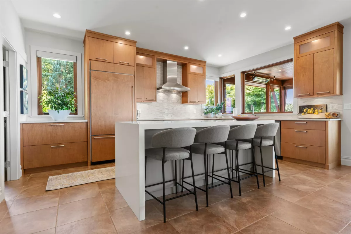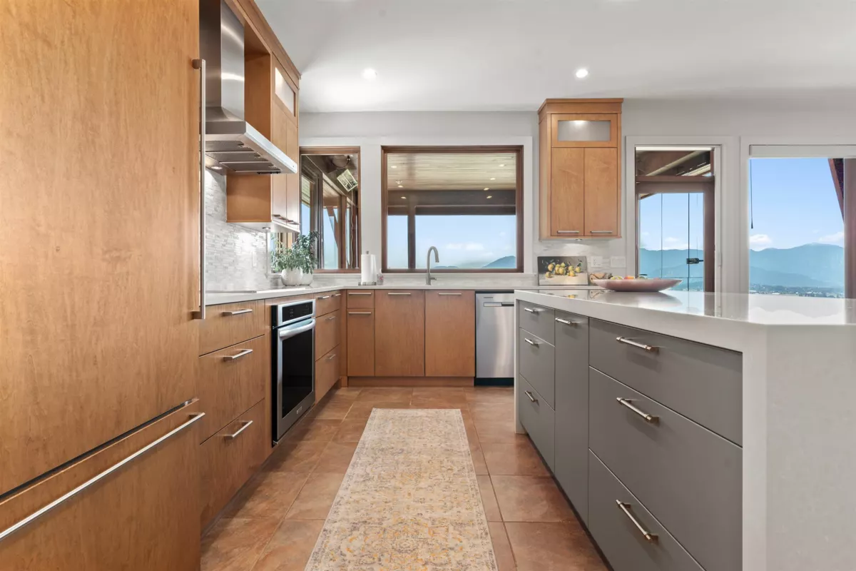First time on the market! This stunning Mt. Archibald home offers privacy, tranquility, and sweeping views from Harrison to the Mission Monastery. A timeless Trace Wisse design, this 4-bedroom, 4,500 sq. ft. rancher with walkout basement sits on a beautifully landscaped 1/3 acre. Features include soaring ceilings, large windows, updated kitchen, office, and baths, heated tile floors, and on-demand hot water. Enjoy two heated covered patios, a spacious deck, in-ground sprinklers, security cameras, RV parking, and a workshop with generator hookups. Exceptional quality throughout, with suite potential below. Must be seen!