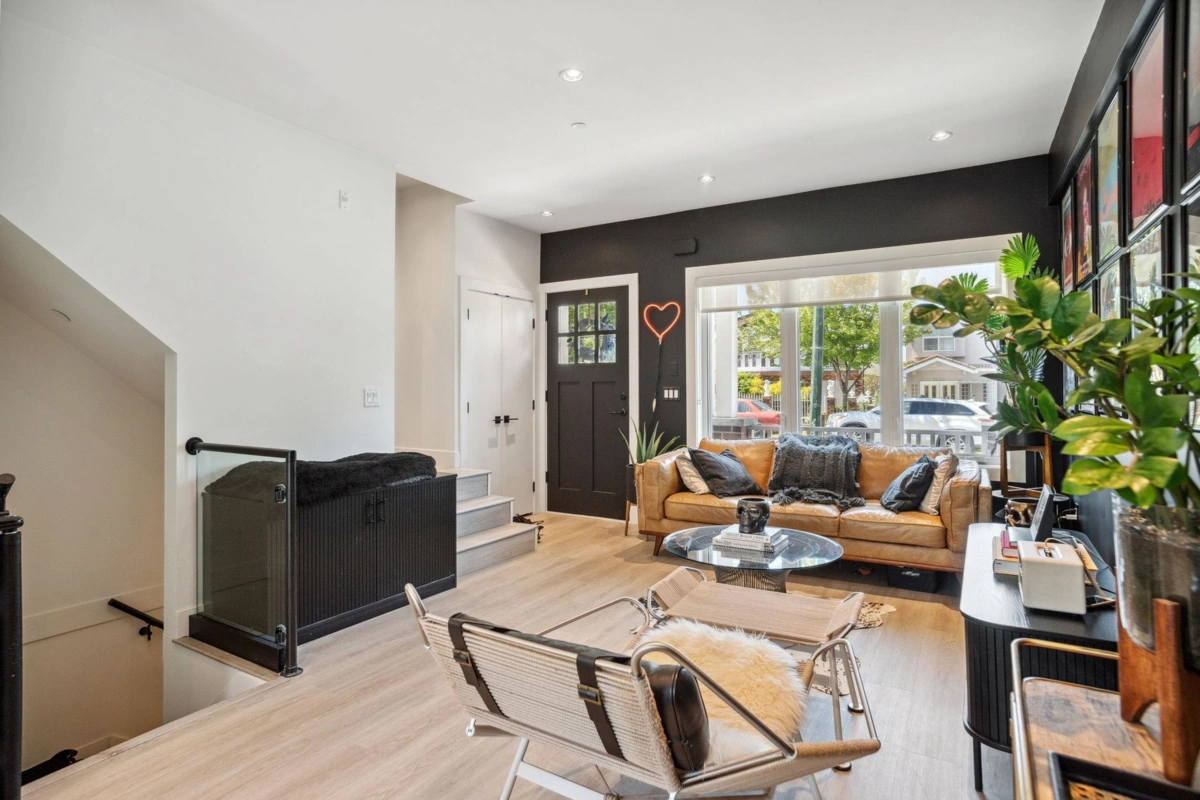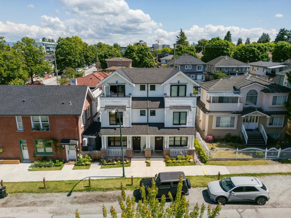 A stylish and spacious townhome in the heart of East Vancouver. Located just off Nanaimo & 34th, this three-bedroom + flex home blends modern comfort with heritage charm as part of the beautifully restored Century House collection. Enjoy a smart, family-friendly layout with a full basement media room and versatile flex space—perfect for a home office, gym, or creative studio. The top-floor primary suite features vaulted ceilings, a double vanity ensuite, and a private balcony with city and mountain views. Two more generously sized bedrooms offer flexibility for kids, guests, or work-from-home needs. Street-level access, abundant street parking, and a walkable location near Cunningham Elementary, T&T, parks, and transit.***Open House Sat, 2-4pm***