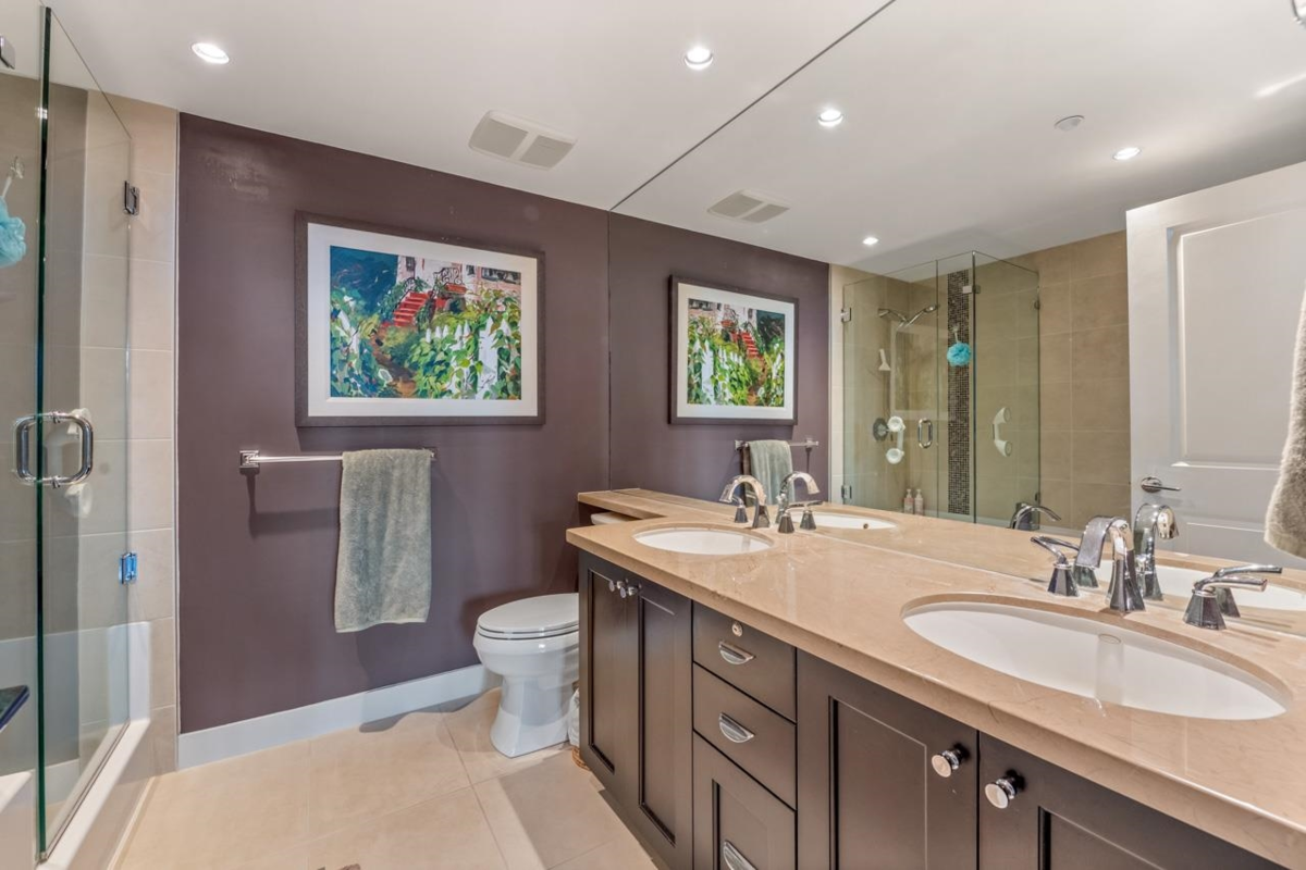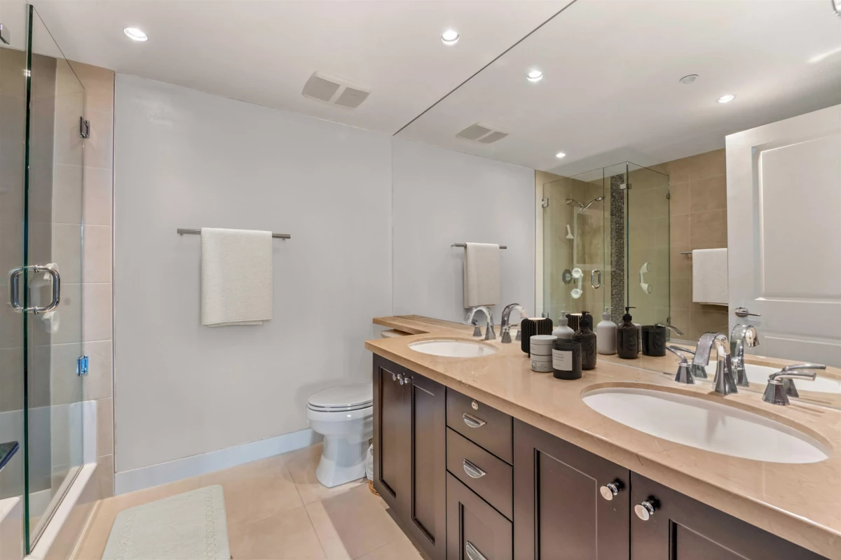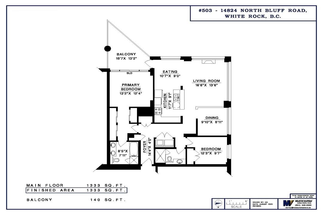 Ocean View at The Belaire, exceptional building and a prime location. Southwest corner, enjoy both ocean views and sunsets 1,333 SF of living space. Secure concrete & steel construction. A/C, plenty of windows streaming natural light. No buildings looking in at you - just fresh ocean air. Two bdrms and den, generous primary with balcony access & spacious 5 piece ensuite - ample closets. Enjoy the ocean view S/W concrete balcony 140 SF. Secure underground parking side-by-side at elevator for 2 cars and visitor parking avail. 1 storage locker. Transit out front or walk 2 blocks to groceries, shopping recreation and schools. 2 pets: max 50 kg in total. Schools: Semiahmoo Secondary. Nat gas & heat pump, A/C included in strata fee $755/Month. Digital floor plan & brochure available