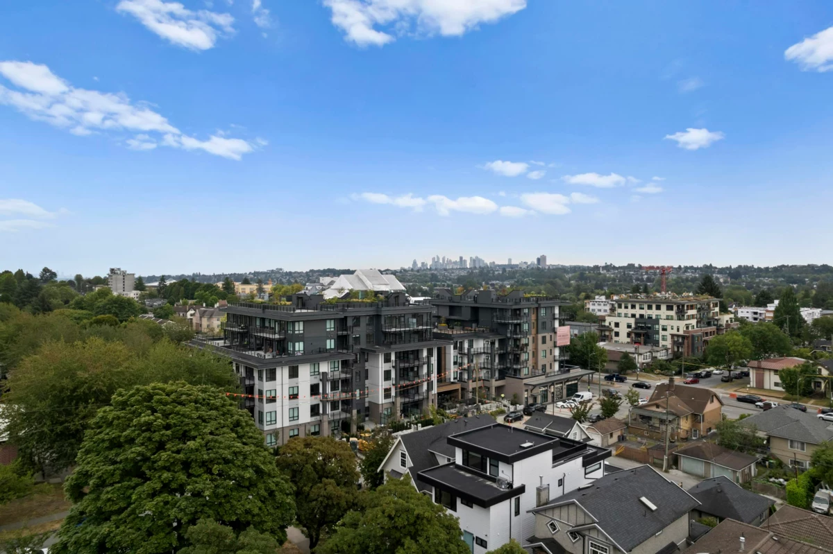 Your private sky-high playground off Commercial Drive!This sub-penthouse offers 1,034 sq ft of stylish living with 3 beds, 2 baths, 2 dens, and over 800 sq ft of outdoor space big enough for your own pickle ball court! Soak up mountain views and fresh air on your oversized balcony. Inside, enjoy bright, open-concept living steps from cafés, shops, and the SkyTrain. Comes with 1 parking and 1 locker. A rare lifestyle gem in East Van’s most loved neighbourhood!