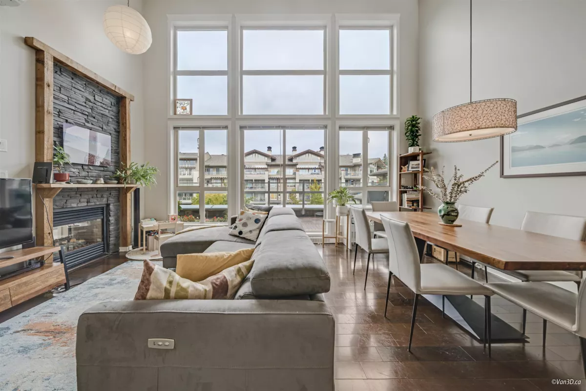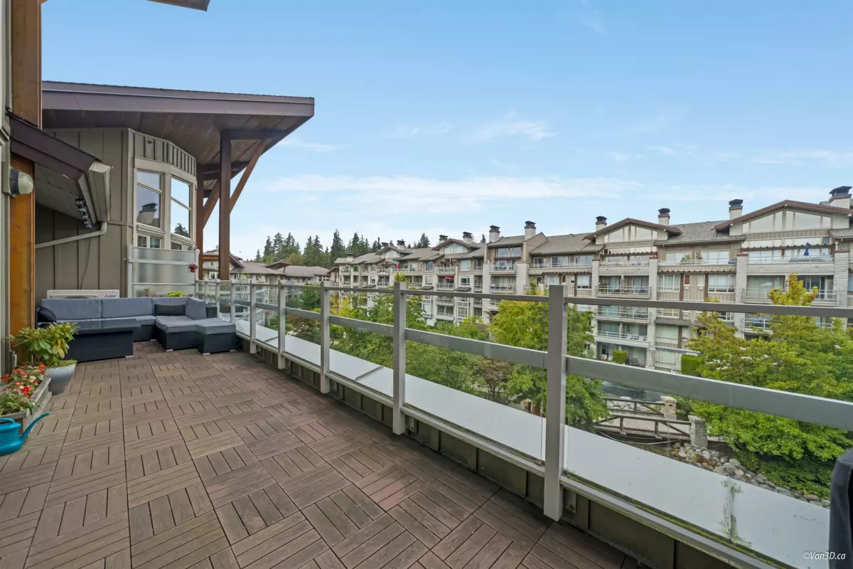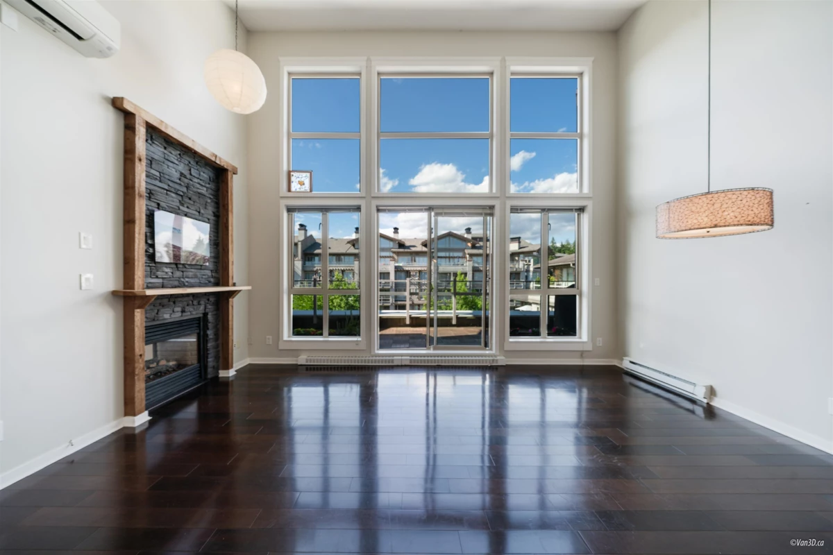 STUNNING 2 BEDROOM & DEN PENTHOUSE! 2 STOREY WINDOWS & 16 FT VAULTED CEILINGS! MASSIVE 350 SQ FT BALCONY. This wide open floorplan has so many features to enjoy! 2020 renovations includes, new Bosch Appliances, deep double kitchen sinks, new counter tops, updated plumbing & lighting, 2022 new AC/Heat Pump, 2025 EV Charger. So many features in this home including hardwood floors, 2 sided gas fireplace, stone & wood mantle, ceiling crown moulding, spa like bathrooms, walk in laundry room with Top Quality Miele washer/dryer system. This home has the "Wow" factor the minute you pass thru the entry door. Outside balcony is spacious with plenty of room for BBQ & full sized patio sets. Raven Woods is located minutes to Deep Cove, Cates Park beaches, biking & hiking trails galore at your door!