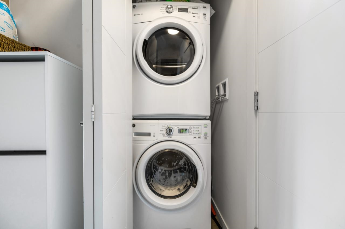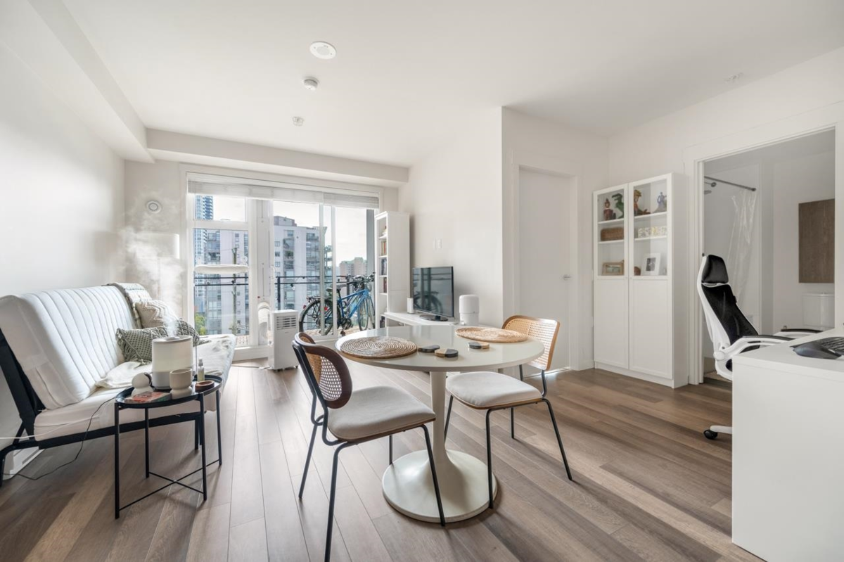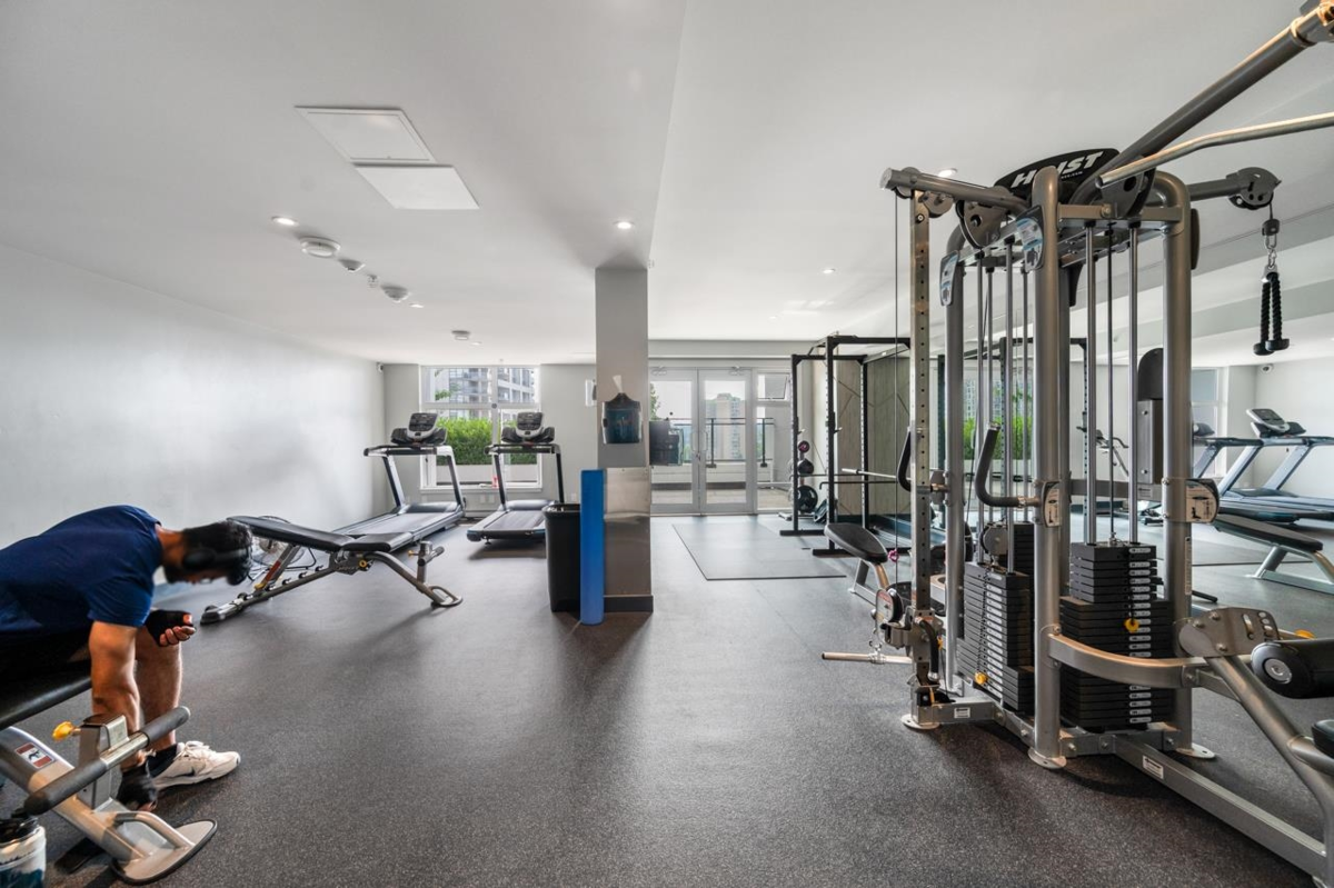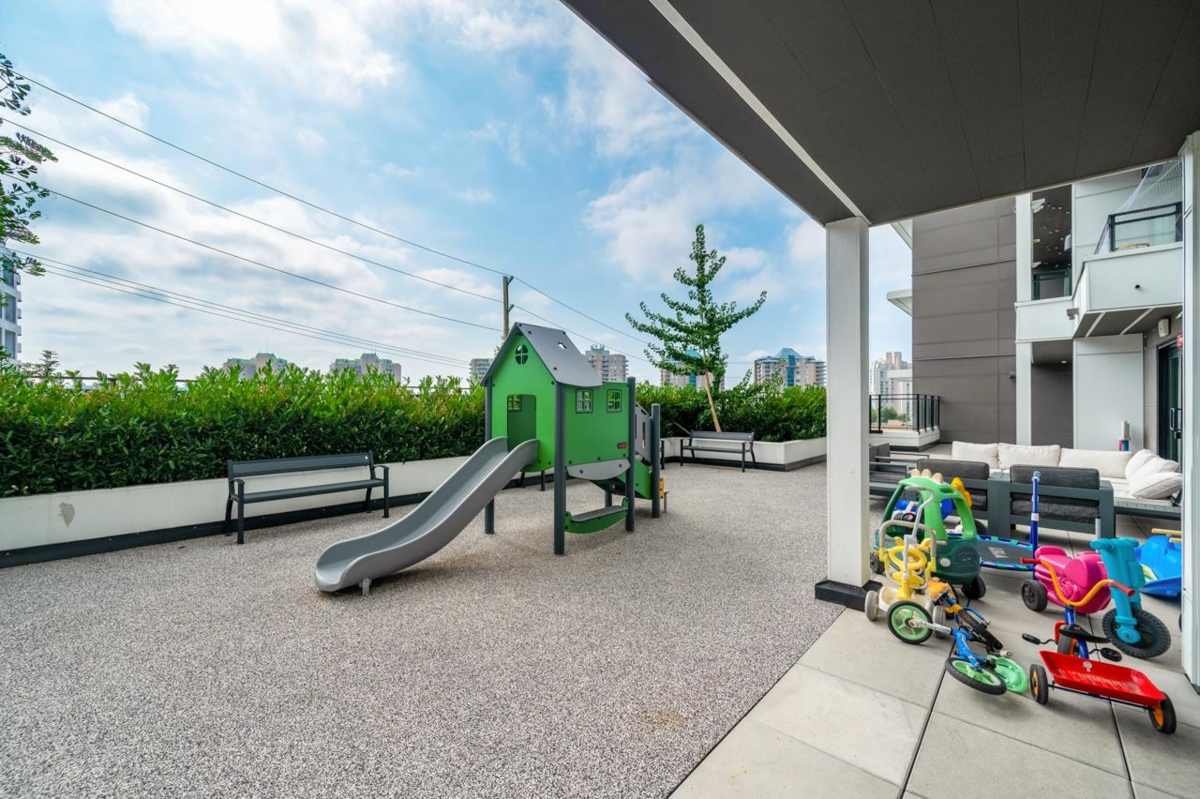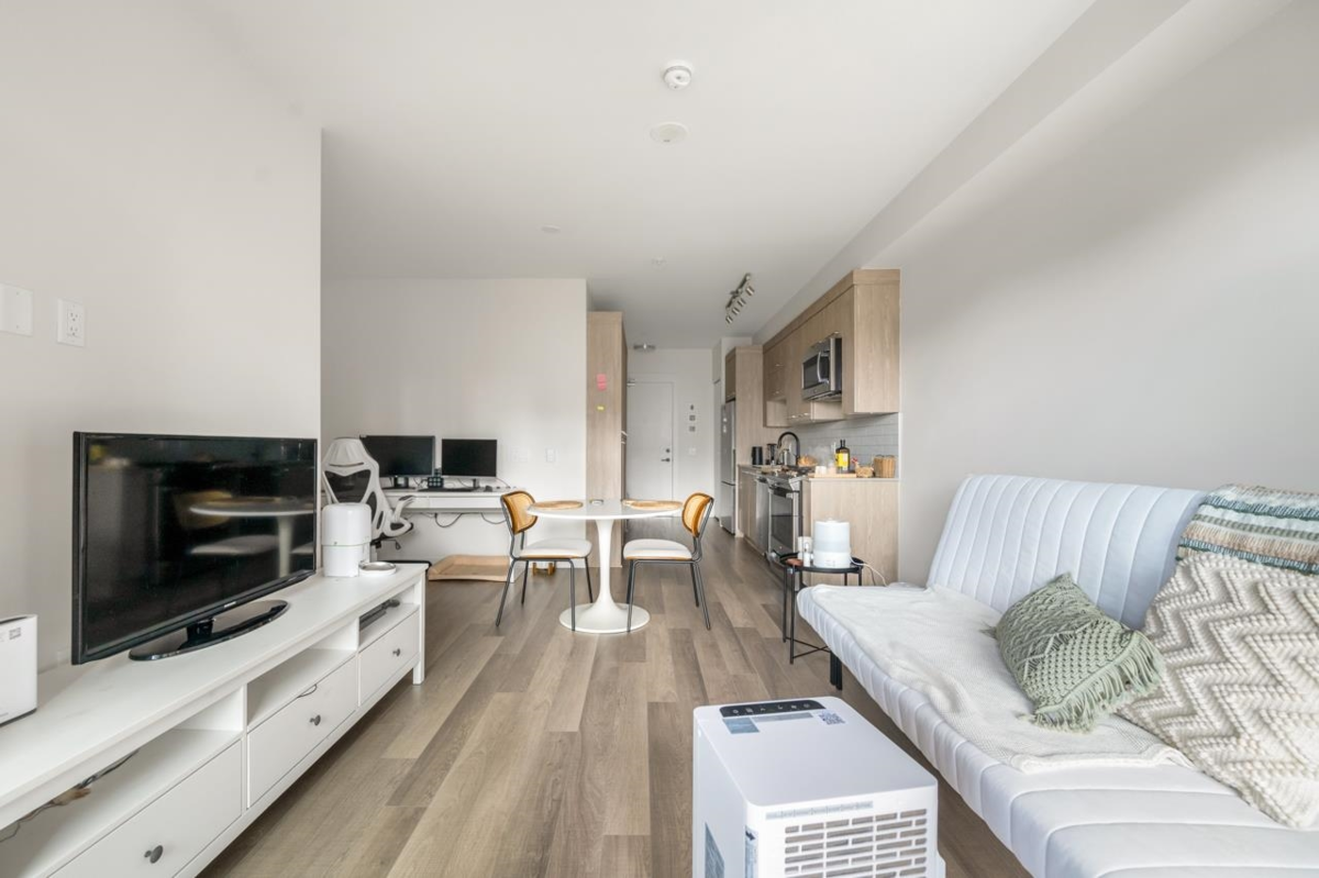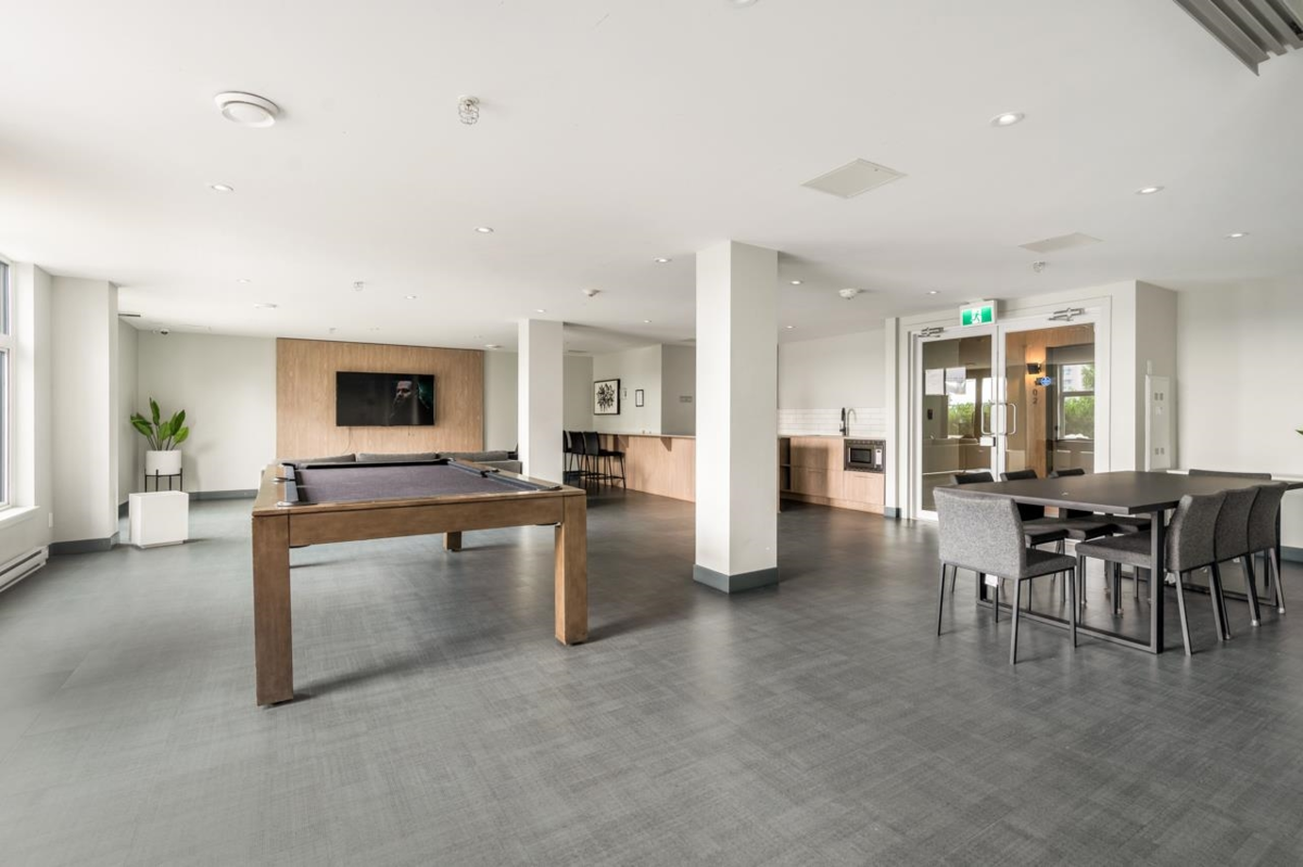 Welcome to Capitol, Modern Sub-Penthouse Living in the Heart of Downtown New Westminster! This sleek and stylish south east 1 bed unit offers the ultimate mix of comfort and convenience. Featuring soaring ceilings, an open-concept floor plan. The contemporary kitchen showcases full-size stainless steel appliances, elegant stone countertops, and a classic subway tile backsplash. The Bathroom is tastefully finished with porcelain tile and coordinated cabinetry for a clean, modern look. Walking distance to the SkyTrain, Quayside Boardwalk, Pier Park, Douglas College, grocery stores. 1Parking&Locker. Exceptional building amenities: fully equipped fitness centre, games room, lounge, children's play area, workshop, and a spacious rooftop terrace with cozy gas fire tables.