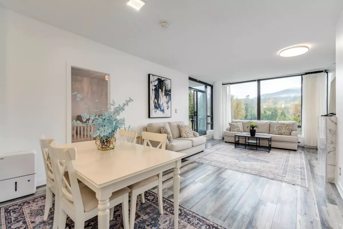 Experience contemporary elegance in this beautifully updated 2 bedroom + large den, 2 bathroom residence in the prestigious ARIA I tower. This bright home features an open layout with floor-to-ceiling windows and a refined outlook of lush treetops and distant mountains. Enjoy a modern kitchen and private balcony that blend comfort and style. Situated in vibrant Suter Brook Village, just steps to cafés, restaurants, shops, groceries, and SkyTrain, with Newport Village and Port Moody’s waterfront close by. Residents enjoy resort-style amenities including an indoor pool, hot tub, sauna, gym, squash court, media lounge, and rooftop BBQ patio.