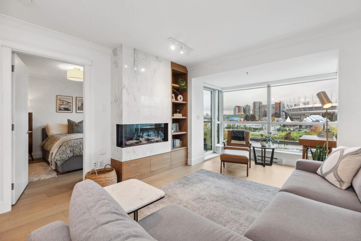 BRIGHT WATERFRONT PODIUM PENTHOUSE IN THE HEART OF FALSE CREEK! Welcome to Creekside built by BOSA. This stunning 1 bed + large den home offers 747 sqft of thoughtfully designed living space. Beautifully updated, the open-concept layout is perfect for entertaining, featuring a functional kitchen, cozy fireplace & a sun-filled solarium ideal for relaxing or working from home. Primary boasts an ensuite, den is easily an office or 2nd bed. 1 parking & 1 storage. Enjoy incredible views of False Creek, Science World & the city skyline from your balcony. Steps from the Seawall, shops, transit and restaurants, this location truly can’t be beat. Amenities include a gym, steam/sauna, bike room & much more. OPEN SUN, NOV 23 FROM 2-4PM