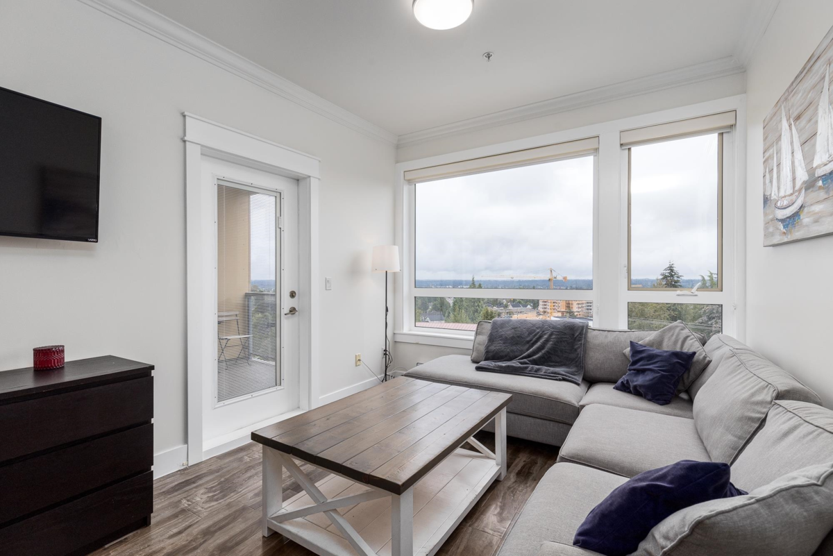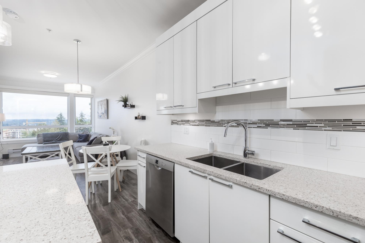 Welcome to Focal Point. This Gorgeous Penthouse suite is sure to catch your attention with breathtaking panoramic views of the valley, city and Mt., Baker. Enjoy a coffee on your spacious patio over looking the beautiful views. This 1 bed, 1 bath home offers an open concept design with 9ft ceilings and generous windows that allow an abundance of natural light in. The kitchen features s/s appliances, soft close cabinets, and quartz counter tops with a large Island. Enjoy the amenities! The building offers a massive roof top common area which is equipped with a bbq, and a party room; perfect for entertaining! In-suite laundry, secure underground parking (1 parking,1 storage unit) Close to retail, coffee shop, transit and more.