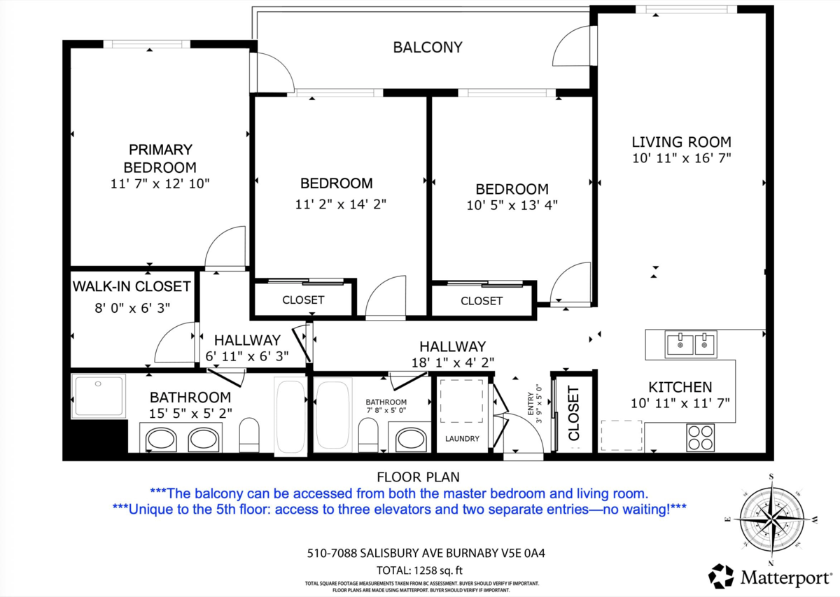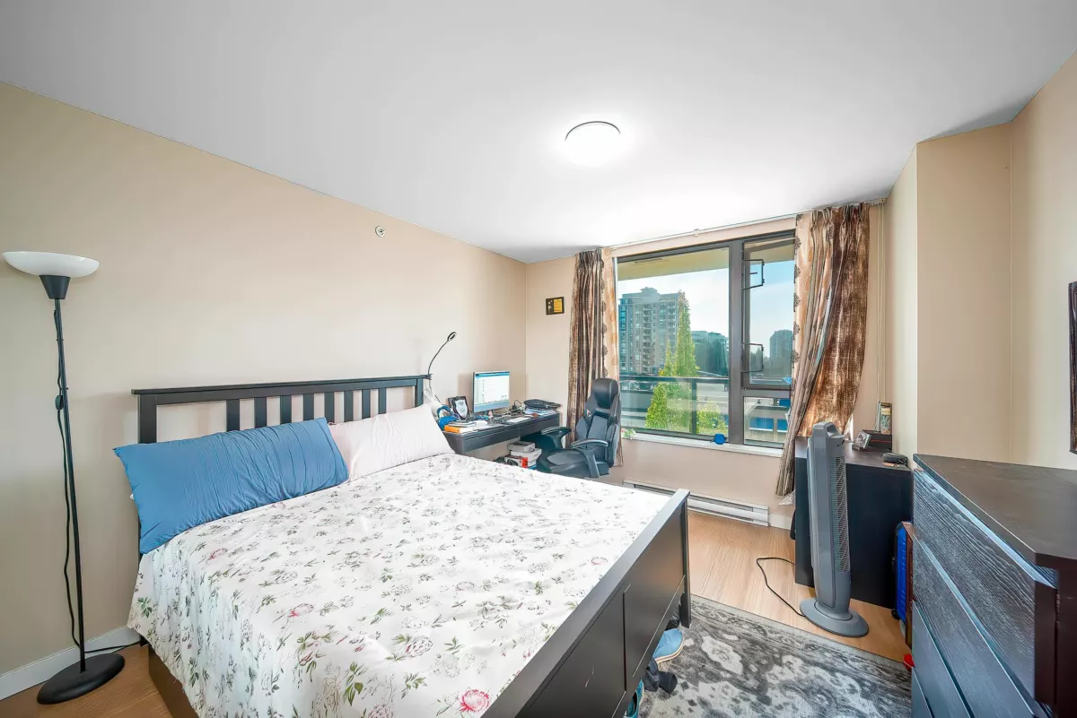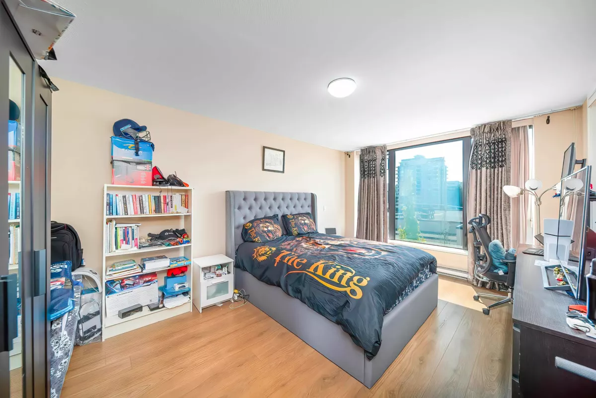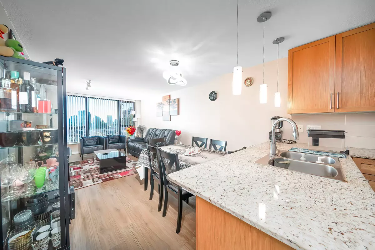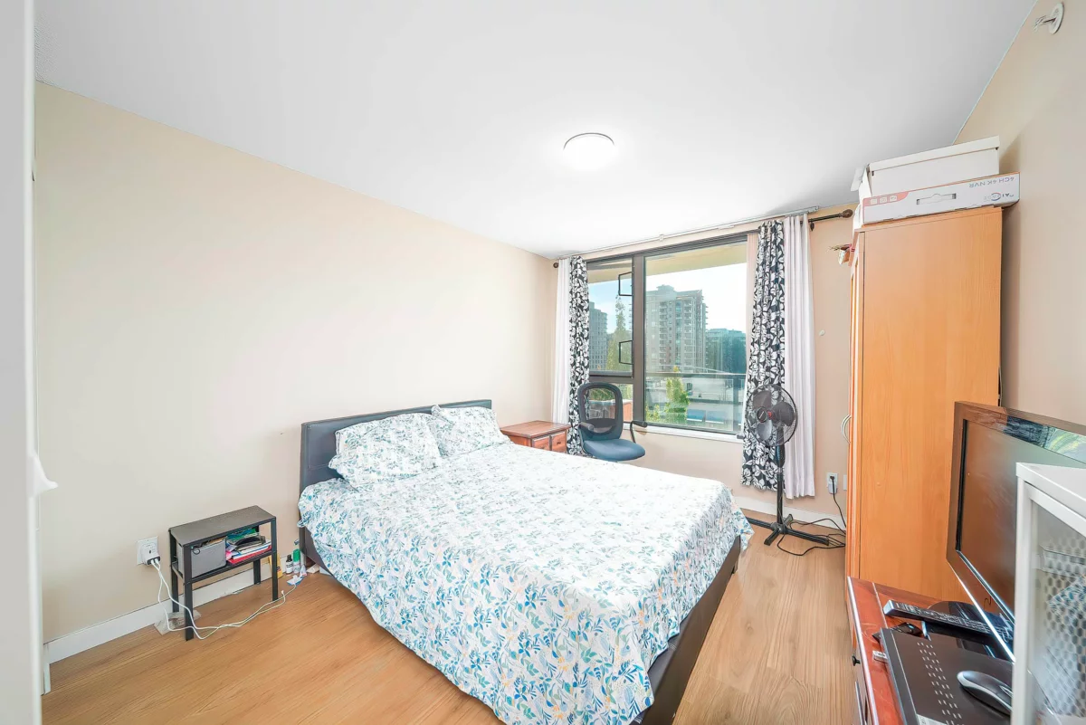 Welcome to West at Highgate Village, a quality BOSA-built concrete tower in prime Burnaby South. This bright south-facing 3 bed 2 bath home on the ideal 5th floor is perfect for families—not too high, not too low. UNIQUE to the 5th floor: ACCESS to THREE elevators and TWO separate entry points, offering unmatched convenience and safety—no more long elevator waits! Thoughtfully designed layout with no wasted space. Spacious primary bedroom. Granite counters in kitchen and baths, newer laminate floors. Large covered balcony with access from living room and bedroom. Includes TWO secure underground parking stalls and ONE storage locker. Amenities: gym and lounge. Steps to bus, Save-On, Shoppers, Club16, Starbucks, banks, clinics, library, Edmonds Centre, parks and more.Pet and rental friendly!