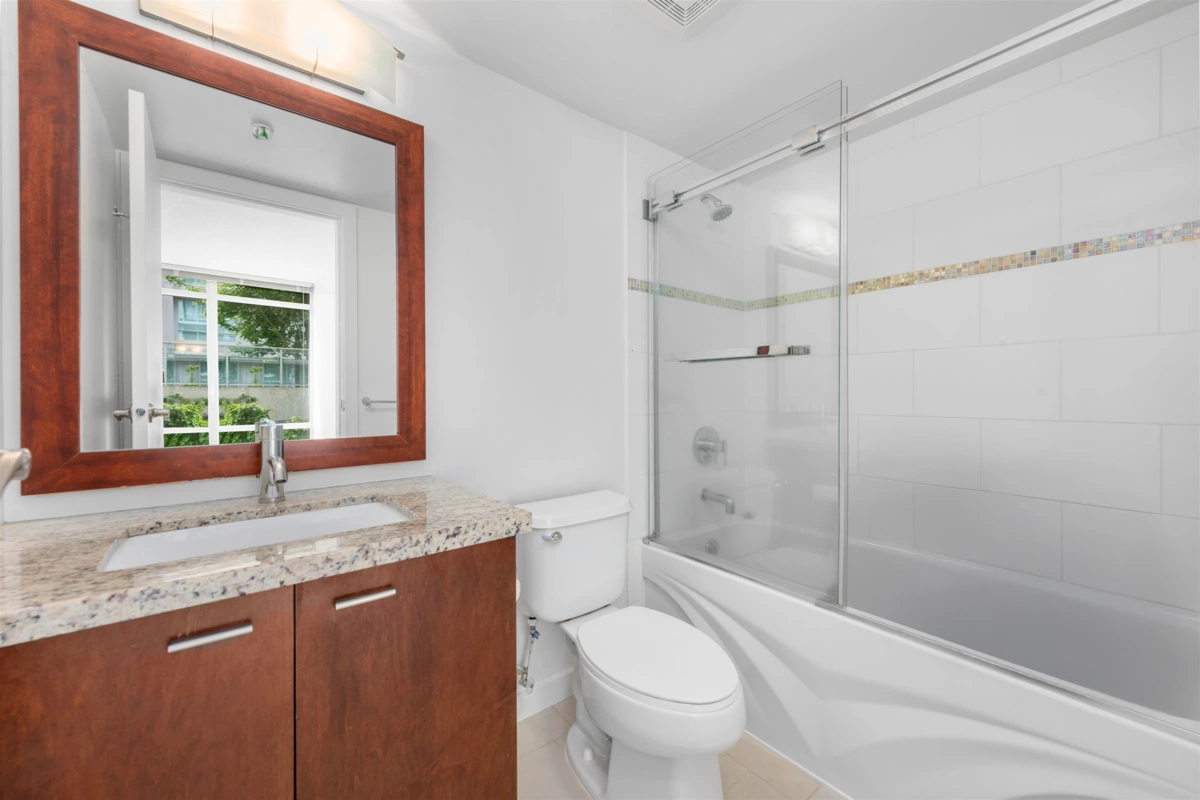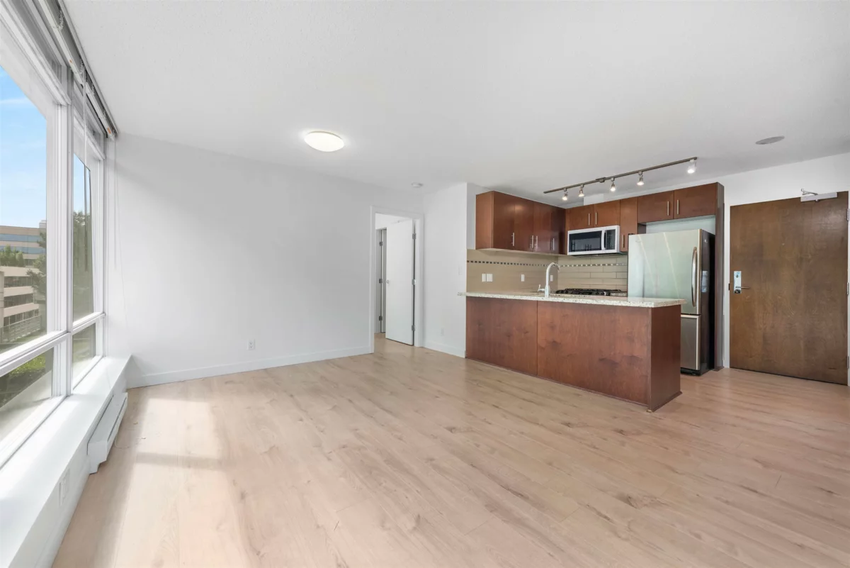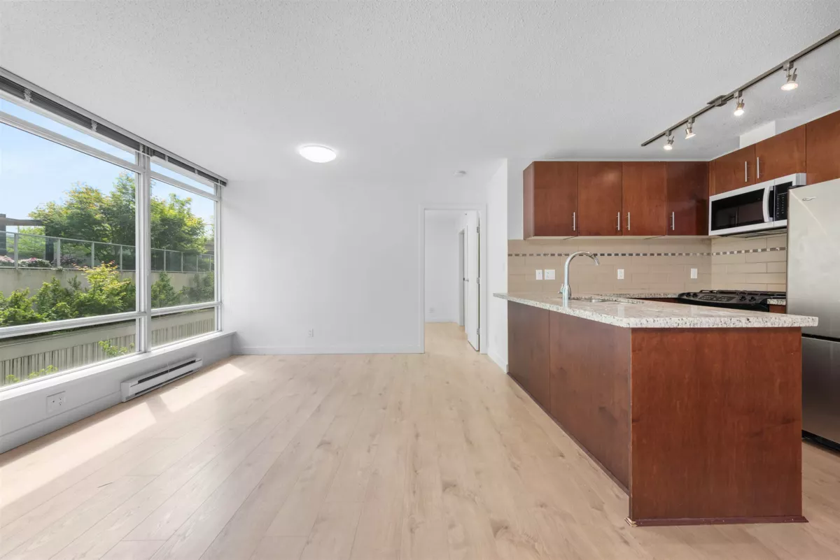 Welcome to The Versante - This Turn-Key 2 Bed 2 Bath Concrete-Built East Facing Home with desirable "WIDE" floorplan with no waste square footage. Enjoy an open concept with 2 bedroom completely separated for ultimate privacy. The home comes with abundance of floor to ceiling windows throughout. Upgrade includes: New Flooring 2022, New Paint and Microwave 2025. The home has a Walk Score of 93 where you are surrounded by Lansdowne Mall featuring T&T and Best Buy, multiple strip malls countless retails and restaurant and Canada Line skytrain. Quick possession is possible. STRATA HAS APPROVED INSTALLATION OF AIR CONDITION. 1 Parking Included.