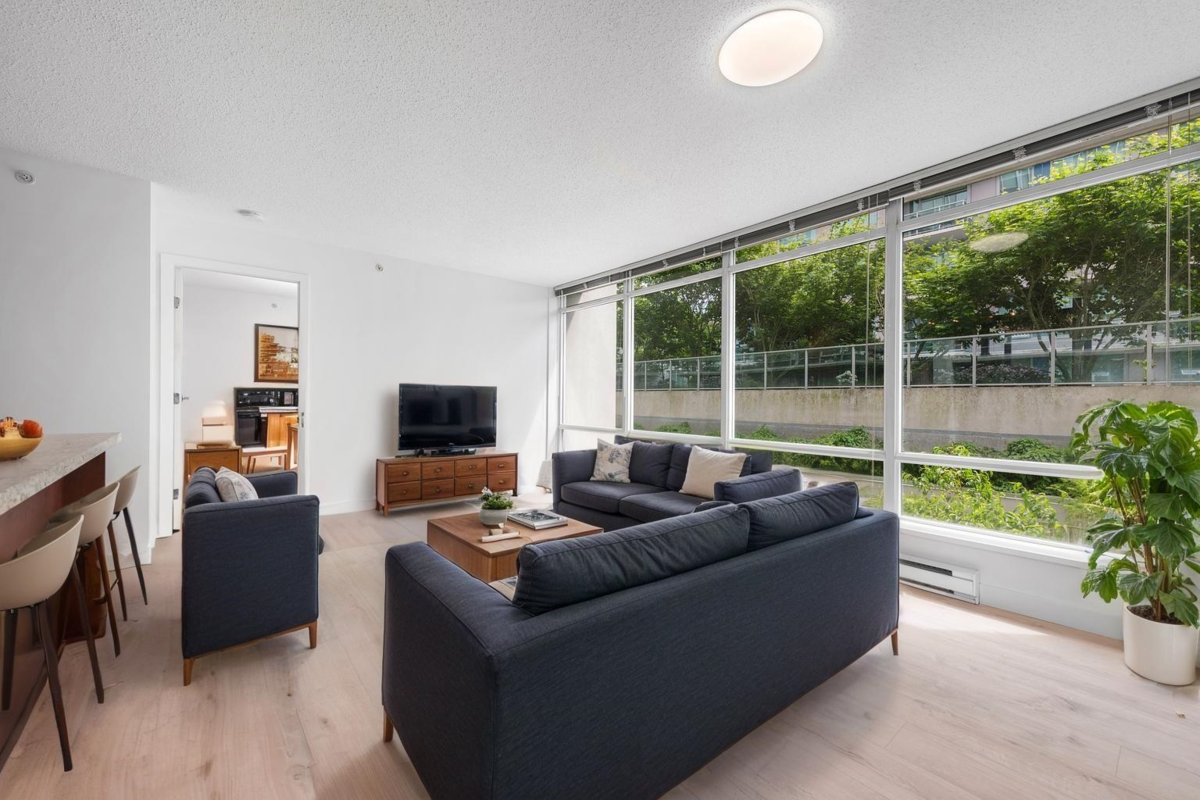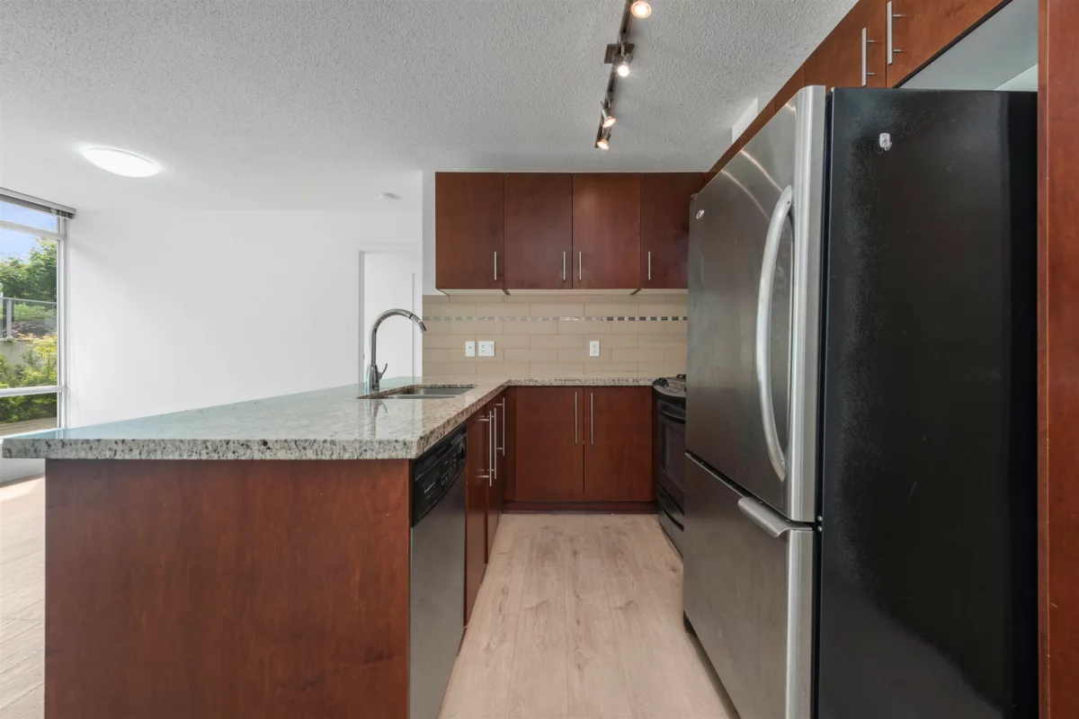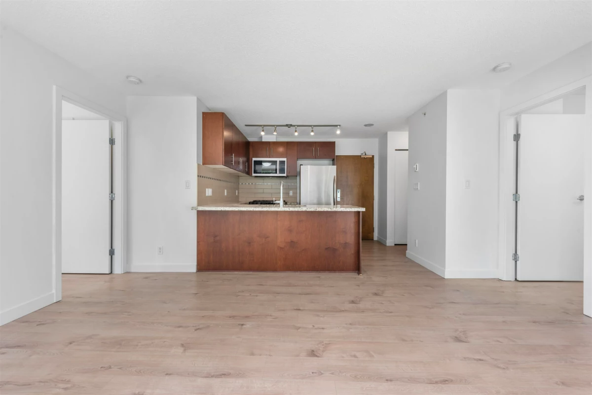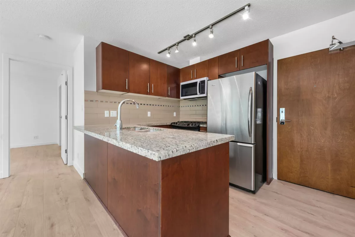 Welcome to The Versante - This Turn-Key 2 Bed 2 Bath Concrete-Built East Facing Home with desirable "WIDE" floorplan with no waste square footage. Enjoy an open concept with 2 bedroom completely separated for ultimate privacy. The home comes with abundance of floor to ceiling windows throughout. Upgrade includes: New Flooring 2022, New Paint and Microwave 2025. The home has a Walk Score of 93 where you are surrounded by Lansdowne Mall featuring T&T and Best Buy, multiple strip malls countless retails and restaurant and Canada Line skytrain. Quick possession is possible. STRATA HAS APPROVED INSTALLATION OF AIR CONDITION. 1 Parking Included.