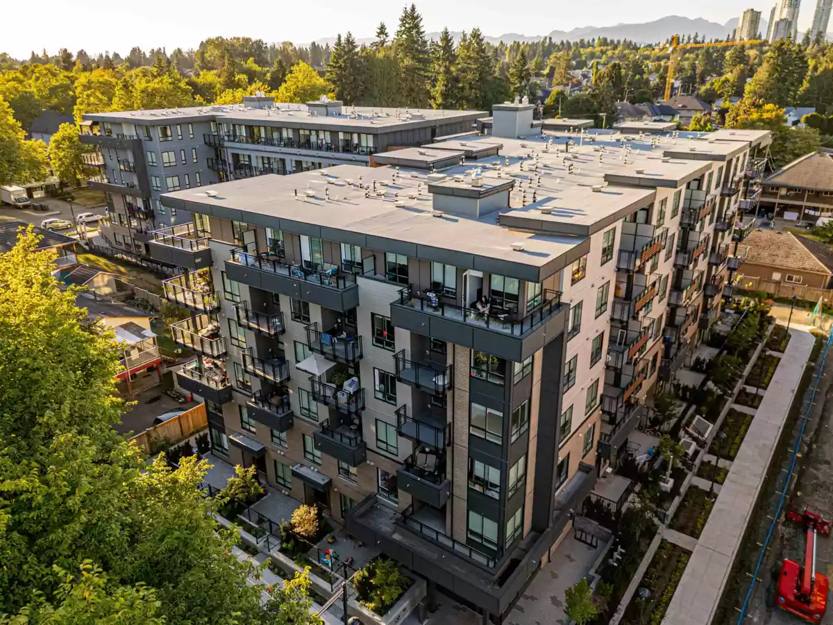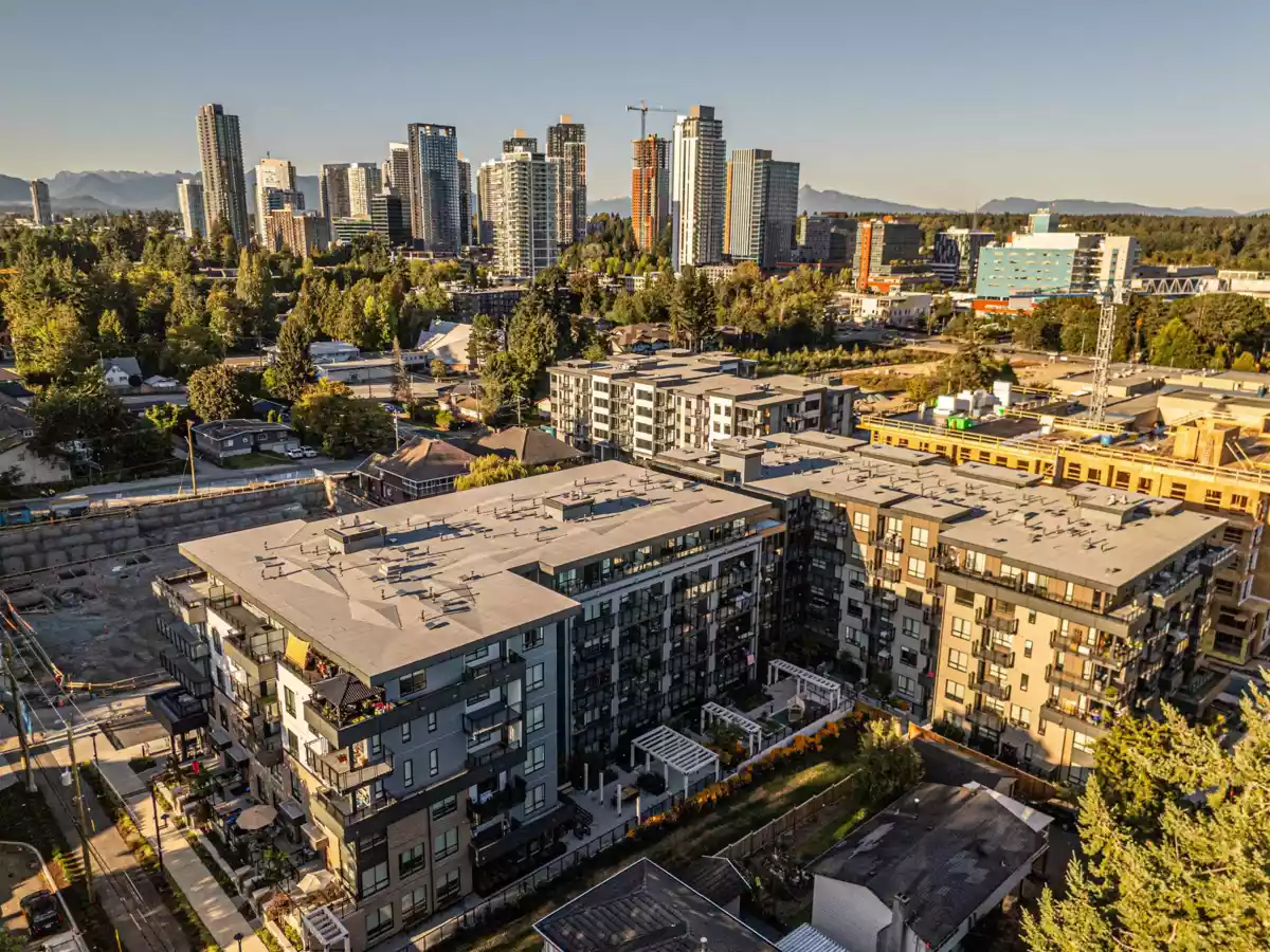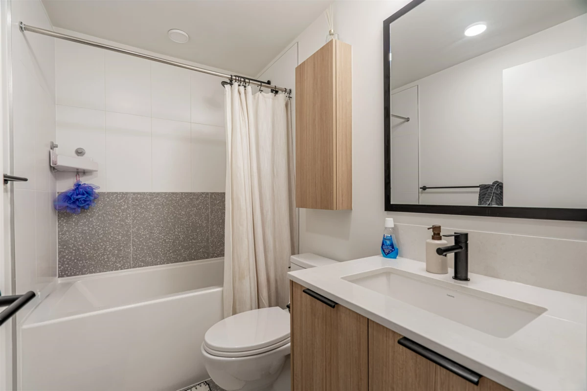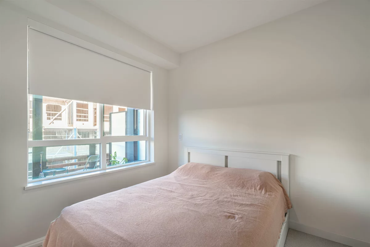 Discover this modern, newly built 1-bed + den condo with 8'10" ceilings and an open layout. The spacious kitchen features quartz countertops, stainless steel appliances, ample storage, and a large island—ideal for cooking and entertaining. Bright and inviting with large windows, this home offers a cozy yet stylish atmosphere. Located across from Queen Elizabeth Meadows Park, it provides tranquility while being close to elementary and secondary schools, hospital, shopping, the skytrain station and dining. Enjoy outdoor living with a serene garden area and a spacious patio, plus access to a well-equipped fitness room. Perfect for small families or investors, this move-in ready condo offers comfortable living in a great location. Don’t miss out on this beautiful home!