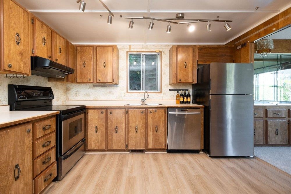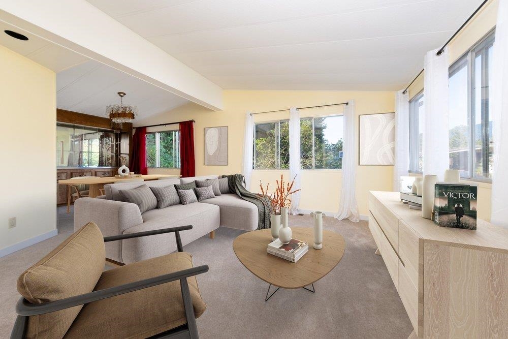Outstanding privacy in this wonderful culdesac location. One of the the largest homes at 1352 Sq ft, 2 bedrooms plus large office/3rd Bedroom and 2 baths. Enjoy views to Sentinal Hill or snow-capped views to Holyburn as you relax in your living room. The bright kitchen opens to the dining and large family room. Master Bedroom is large and has a spacious ensuite with walk in shower and plenty of storage. Just off the master bedroom is a large office/ 3rd bedroom w/skylights that opens with sliders onto the fully covered 13’ x 11’ deck space. A private low maintenance garden w/shed. are all around this home. One of the few on a full concrete pad. Roof new in 2013. Park is 55+ only with no rentals allowed. Pets okay. Call for further Park Details including rules and regulations.