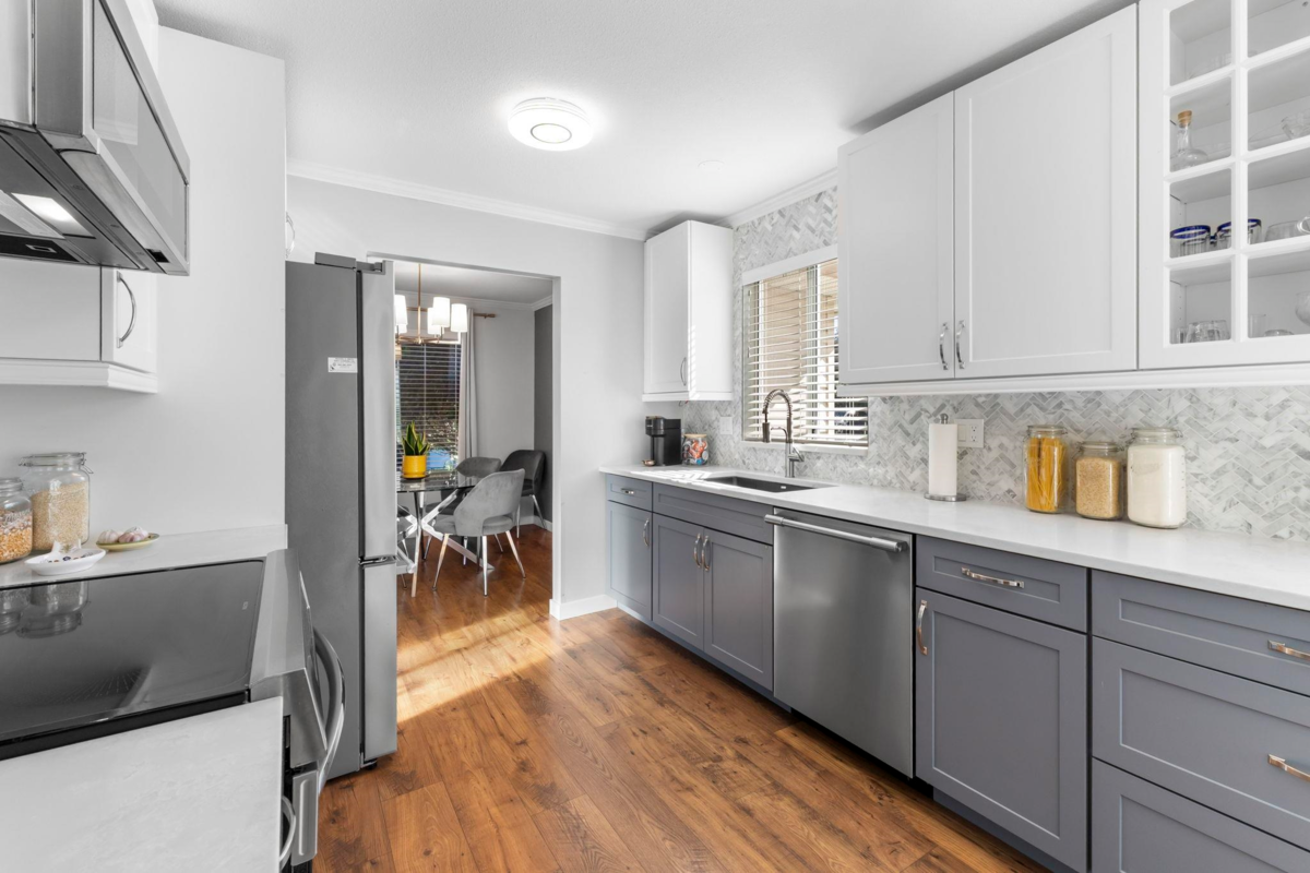 This beautifully updated end unit feels like a detached home! Featuring a spacious two-level floor plan with large rooms, 3 bdrms & 2.5 stylishly updated bathrooms. Enjoy an abundance of natural light from extra windows, a cozy gas fireplace & the comfort of forced air heating. The renovated kitchen shines with new cabinets, countertops, backsplash & appliances. Additional upgrades include fresh paint, vinyl plank flooring, heated bathroom floors, organized closets, new blinds, an updated laundry set w/ sink & more. Step through french doors to your extended patio-perfect for entertaining. Complete with a large 2 car garage & ideally located in central Pitt Meadows, just a short walk to the West Coast Express, schools & parks. A rare opportunity in a highly sought-after community!