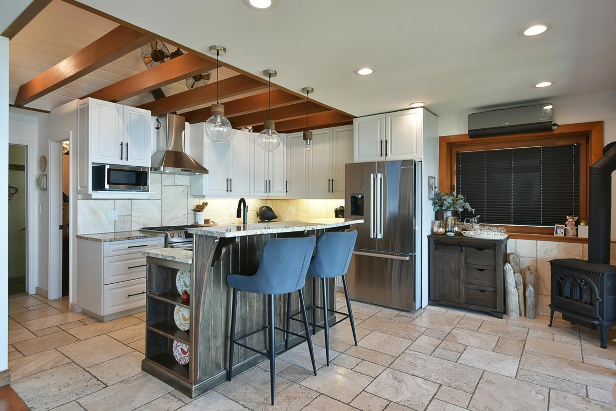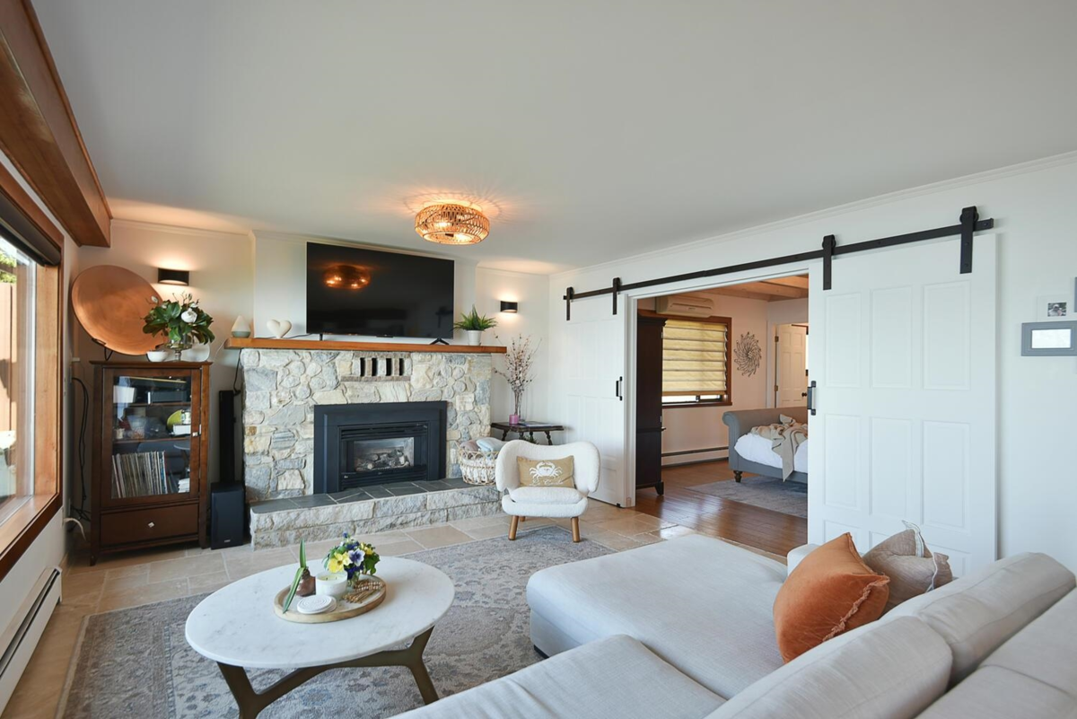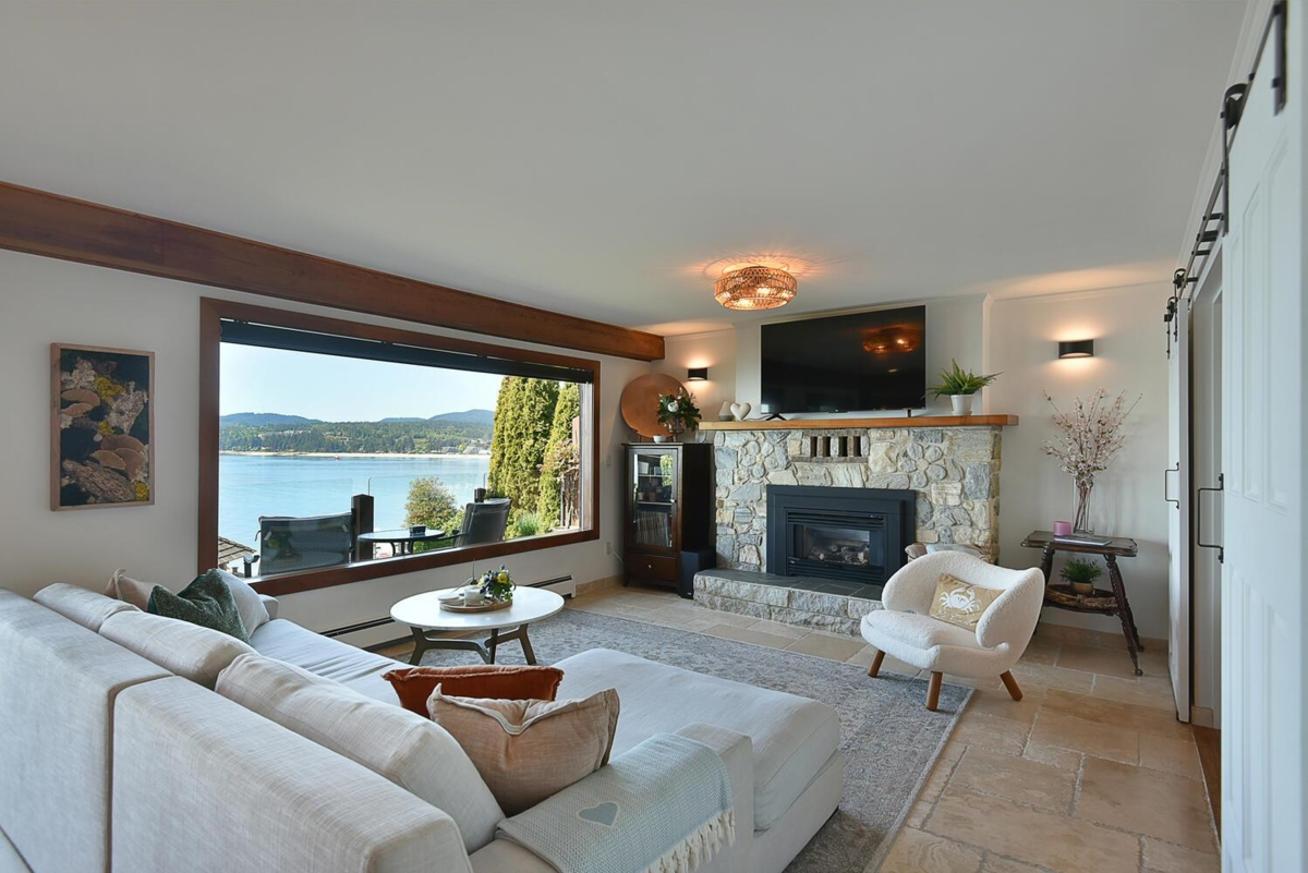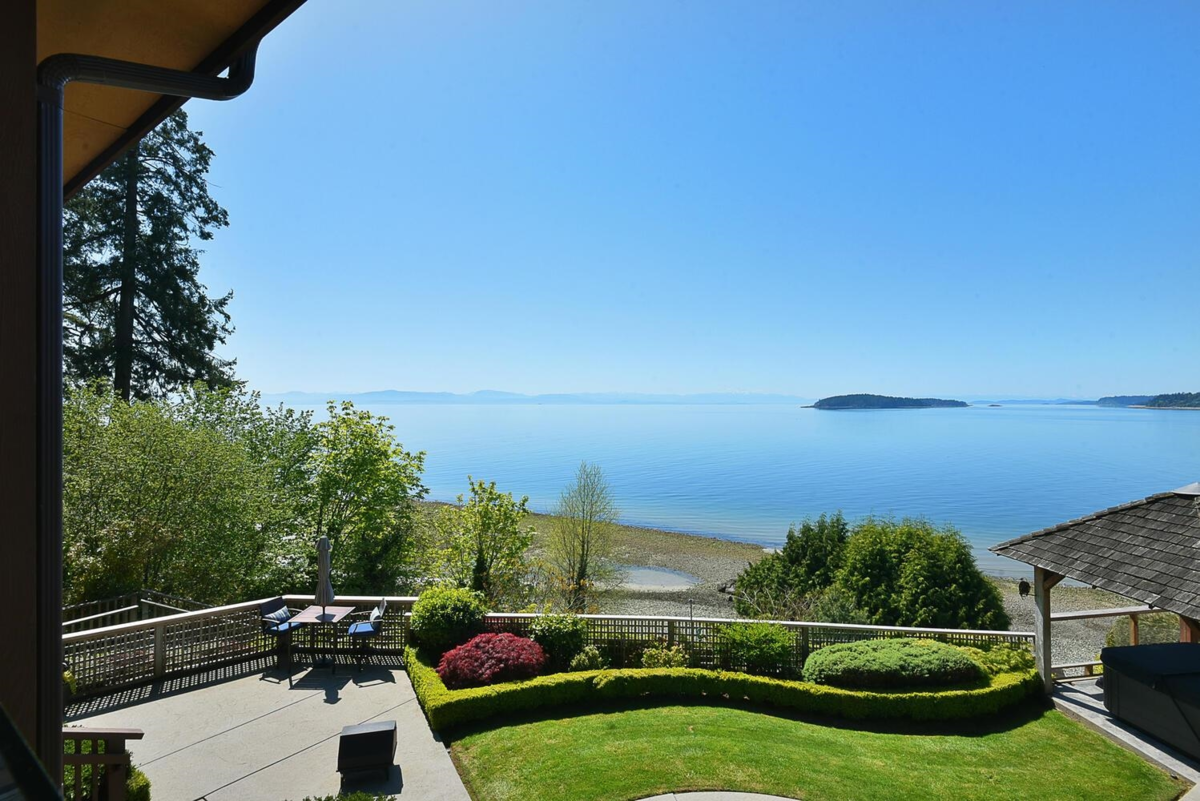 Sun-drenched, stunning waterfront home & property w/ spectacular views & sunsets! 3,599 sq.ft w/ 3 attached suites. West facing w/over 1/2 acre & 83' of oceanfront, beautifully landscaped w/irrigated low maintenance gardens. The level entry open concept main level features a gourmet kitchen, master bdrm w/spa-like ensuite, guest bedroom & a spacious patio, while upstairs is a self contained bedroom suite w/ocean views as far as the eye can see. The ground level features 2 more luxurious self contained suites w/stunning ocean views & 2 hot tubs. At the water's edge there is a beach spa cottage, infrared sauna & a pergola - enjoy the sound of waves gently crashing upon the shore! Operating as a highly successful vacation rental- generate excellent income, enjoy w/ family & friends, or both!