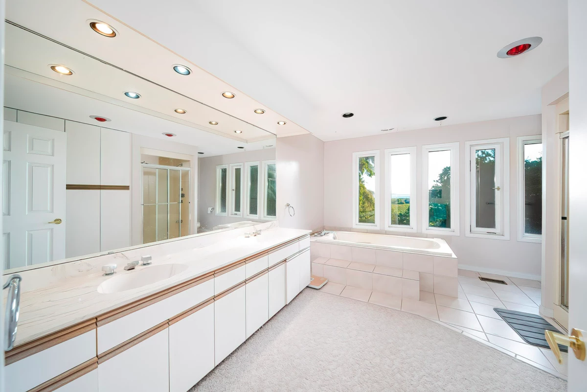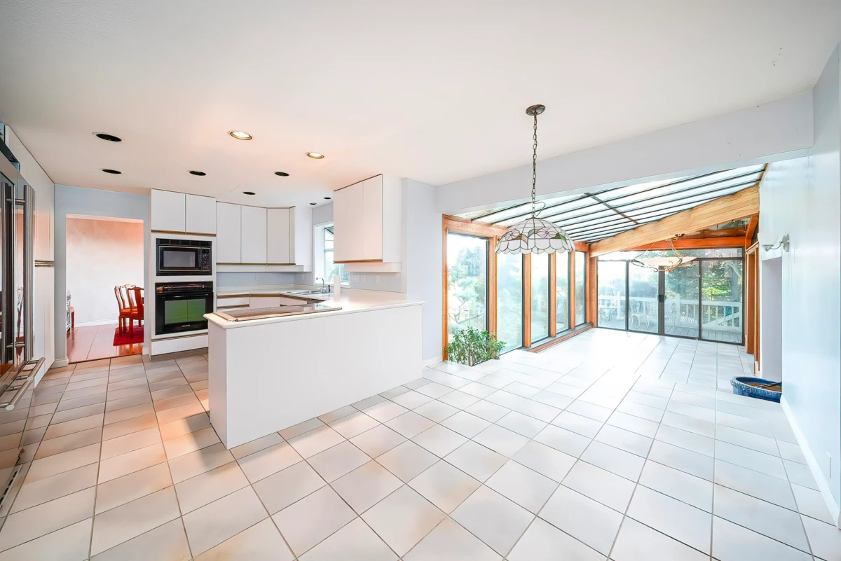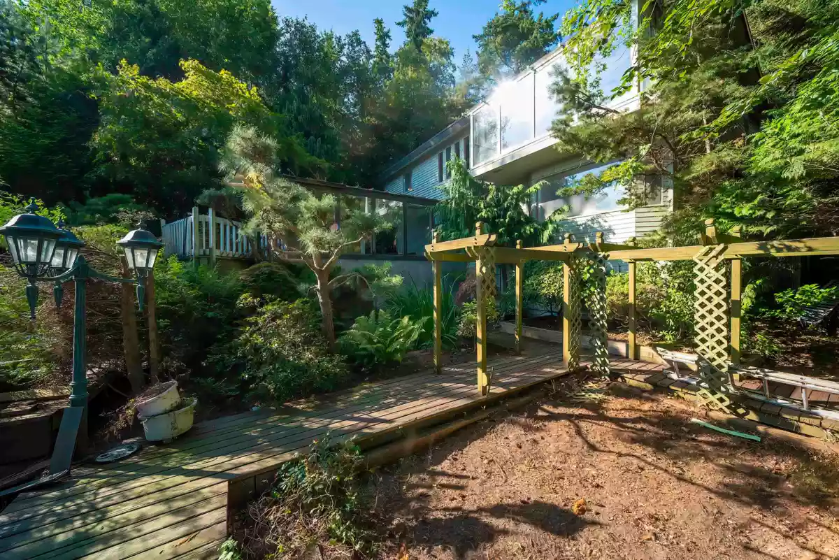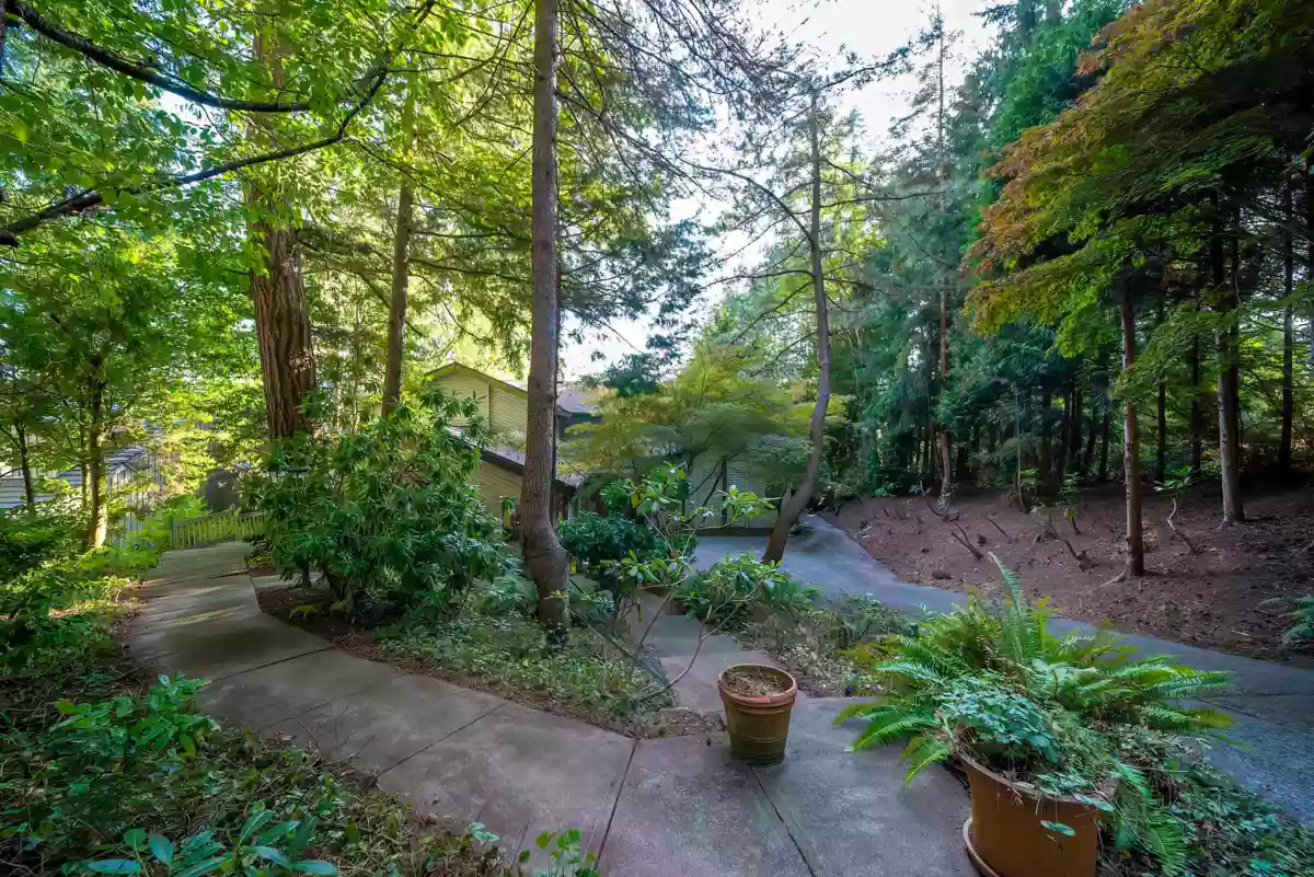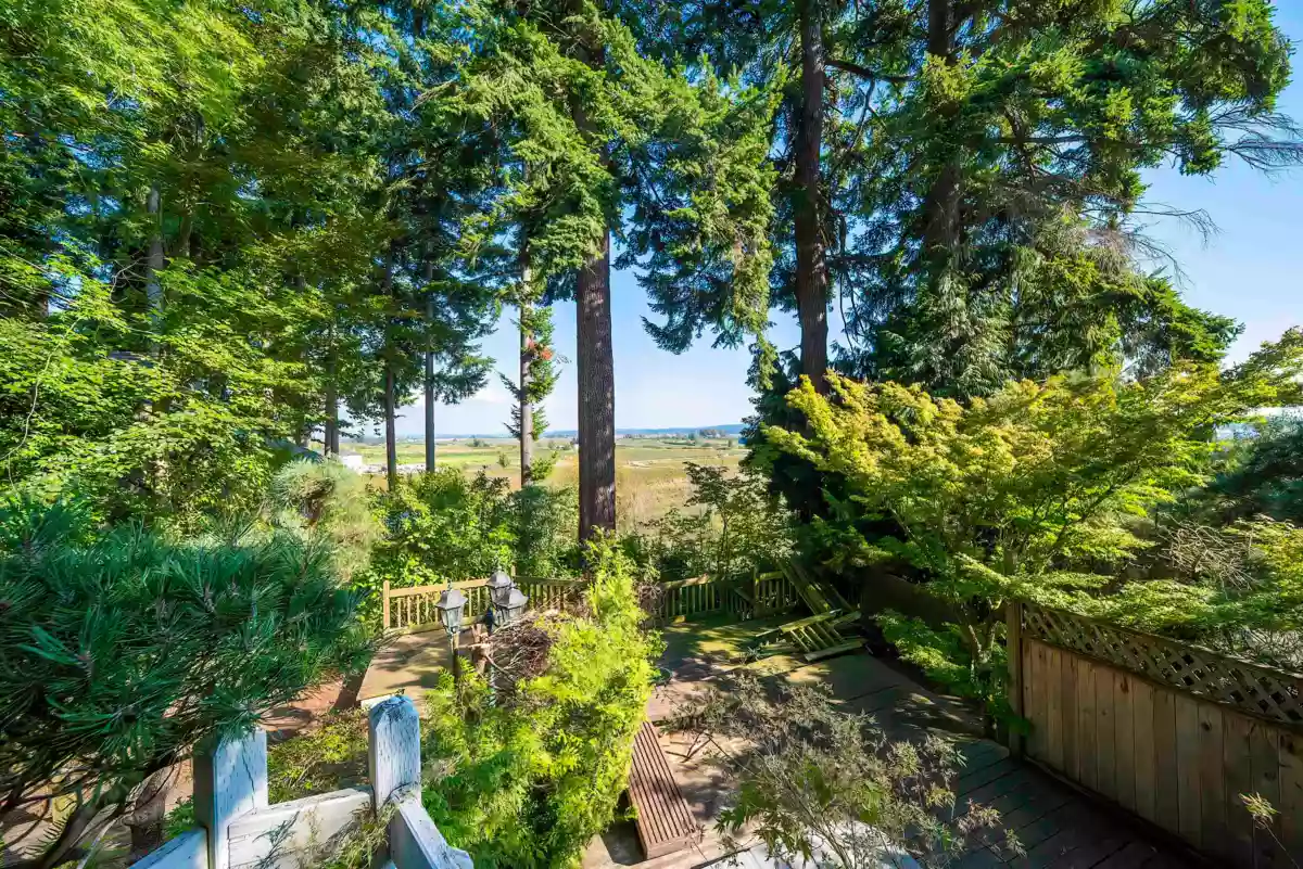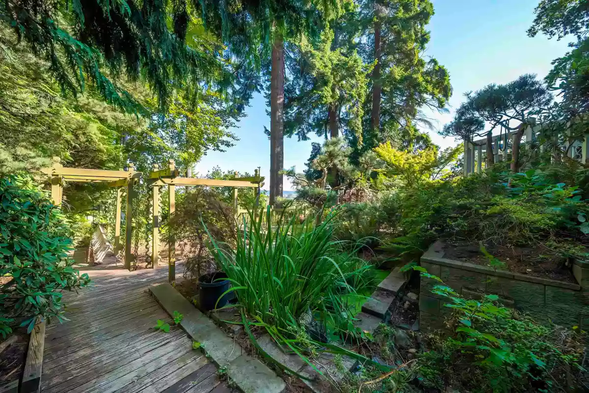 The spacious oasis sits on the half acre lot in the prestige area of Panorama Ridge. This unique west coast style home offers beautiful views of ocean, Mt Baker, and Sunset from main & upper levels. It features private yards w/ year round tasteful garden, multiple decks for peaceful relaxation, open-air hot tub in nature surrounding, 5500+ sqf living area, extra large 4 bedrooms, commercial grade heating system, luxurious appliances, and extra deep garage. 190sqf greenhouse is definite the florist's love. Updated primary bathroom and hardwood floor upstairs. Updated 2 bedrooms suite w/laundry & separate entrance in basement. Walk to Colebrook Elementary. This is absolutely nature lover's dream home! Open house: Nov 9, Sun., 2-4pm.