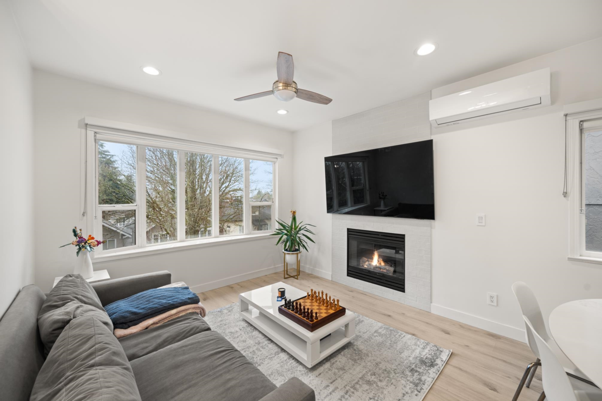 Incredible Fraser location! This bright and private home is proudly situated on a quiet, tree lined street with views of the mountains & Oakridge park. Fully renovated in 2022 this beautiful family home boasts 6 beds, 4 baths and 3 kitchens! 3 private entrances with laundry for all 3 suites. Enter into the 2 bed spacious suite on one side and a lovely 1 bed suite through the other private entrance. Upstairs offers 3 spacious bedrooms with a bright large kitchen, entertainment size living area with fireplace, dining room and A/C! Large private covered deck off the kitchen overlooking the backyard allows for year round entertaining. Double car garage & parking pad! Surrounded by parks, recreation, tennis courts and shopping. Sir Alex Mackenzie Elem & John Oliver Sec.