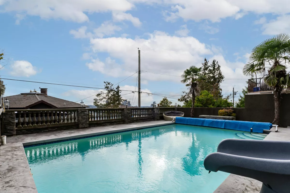 This luxury home sits high on top of Capital hill with panoramic views from Mt Baker to Mt Seymour. Quality is evident throughout this home with gourmet kitchen with wok kitchen as well. Master suite is a separate retreat that will satisfy all your needs and wants. The yard ifs complete for active living with an 18X30 concrete swimming pool with swim jets and sheer decent along with a Smiths water slide. Home has a single attached garage to keep you out of the cold along with a double detached garage.