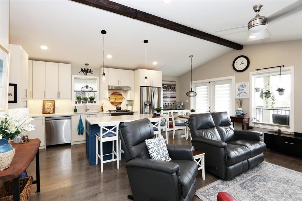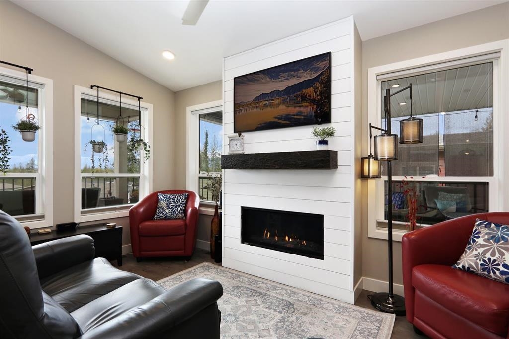 Kick the City Life...in this like new1 Bdrm, 2 Bathrm, Open Plan, Vaulted, Cozy, spacious 840 sq ft, Modular on Freehold Bareland Strata. Modern decor, LRG room sizes with many extras: barn door accents, hot water on demand, heat pump/air, Culligan water conditioner, quartz counters, kitchen cabinet roll outs, N/G F/P with shiplap feature, N/G Stove, HUGE laundry/storage, designer lighting, custom closet cabinetry, 8' X 12' shed with power, 2-3 person outdoor hot tub. Enjoy the outstanding 12000sq ft Log Clubhouse amenities: poker room, pool table,shuffle board, ping pong,gym,40 seat theatre, atrium, Greatroom with F/P, kitchen etc. Chill at the outdoor pool, hot tubs & pickleball courts.