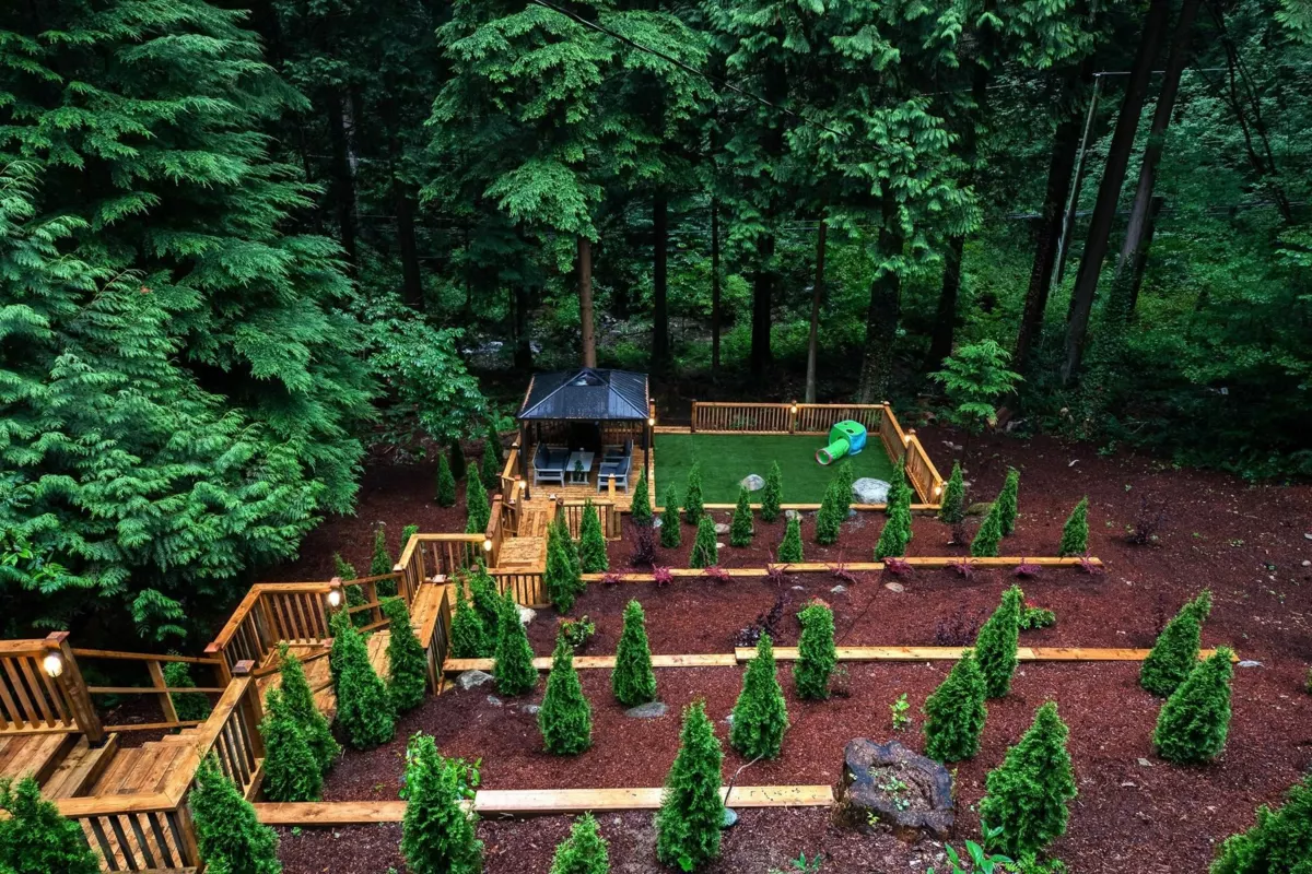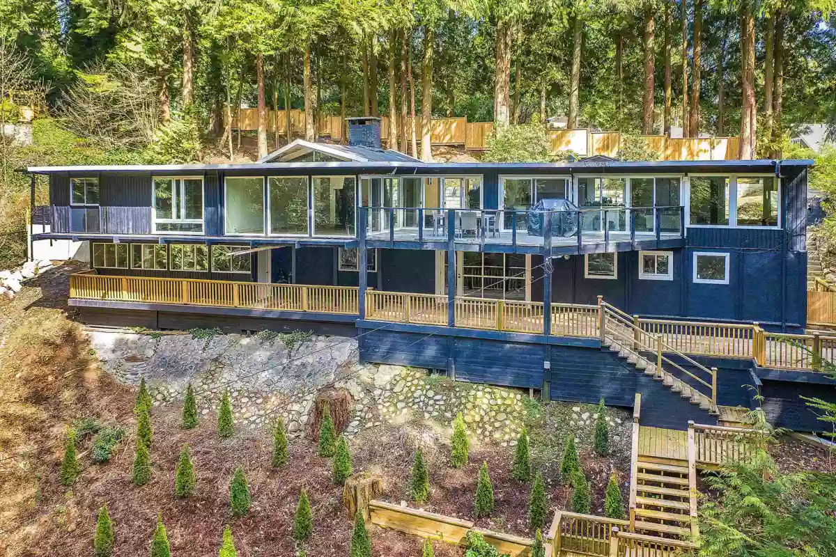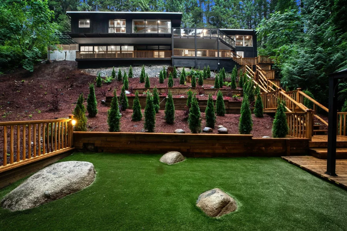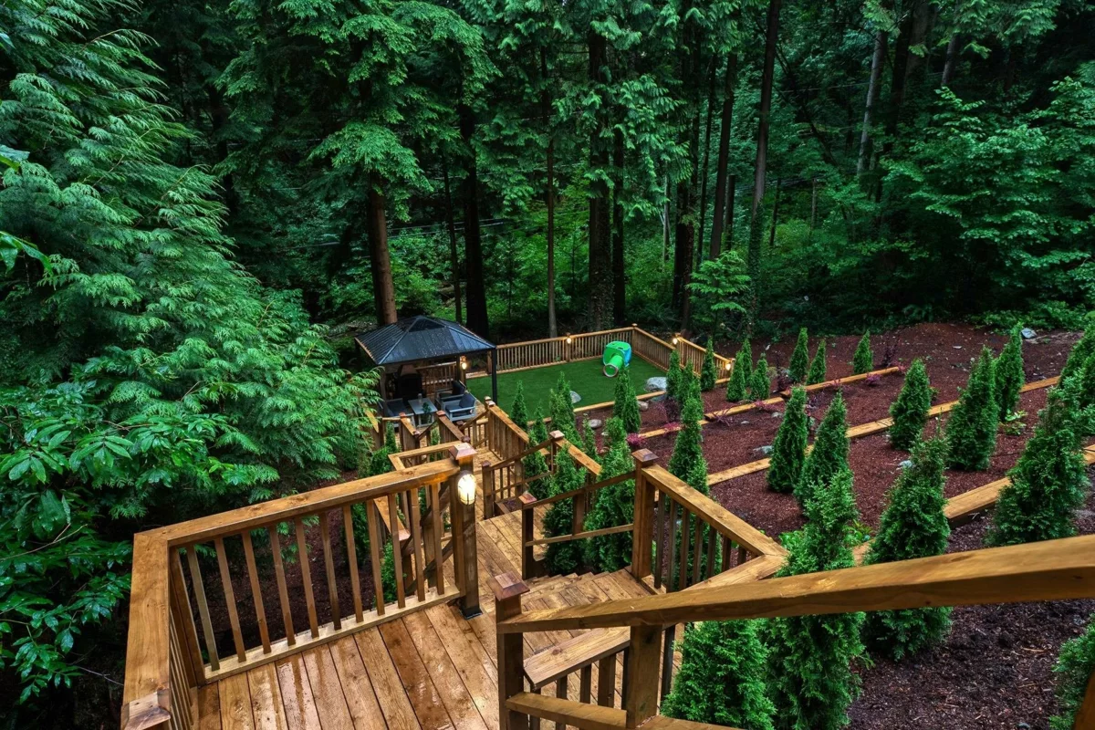 This beautifully renovated 5 bed, 4 bath home in the prestigious British Properties showcases picturesque windows framing garden, forest and mountain views. The main floor features a stunning vaulted post and beam living room with a grand wood-burning fireplace, an elegant dining room, gourmet kitchen, bar and a warm, inviting family room—all flowing onto a large deck ideal for indoor/outdoor living. Also on this level are 3 bedrooms and 2 stylish designer bathrooms. The lower floor offers a spacious rec/media room, office or guest bedroom, full bath as well as a 2 bedroom suite with separate entrance and patio. Tiered gardens, custom stairs and a tranquil gazebo complete this serene setting.
