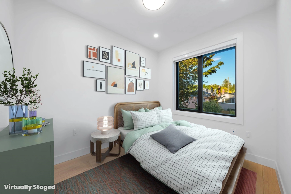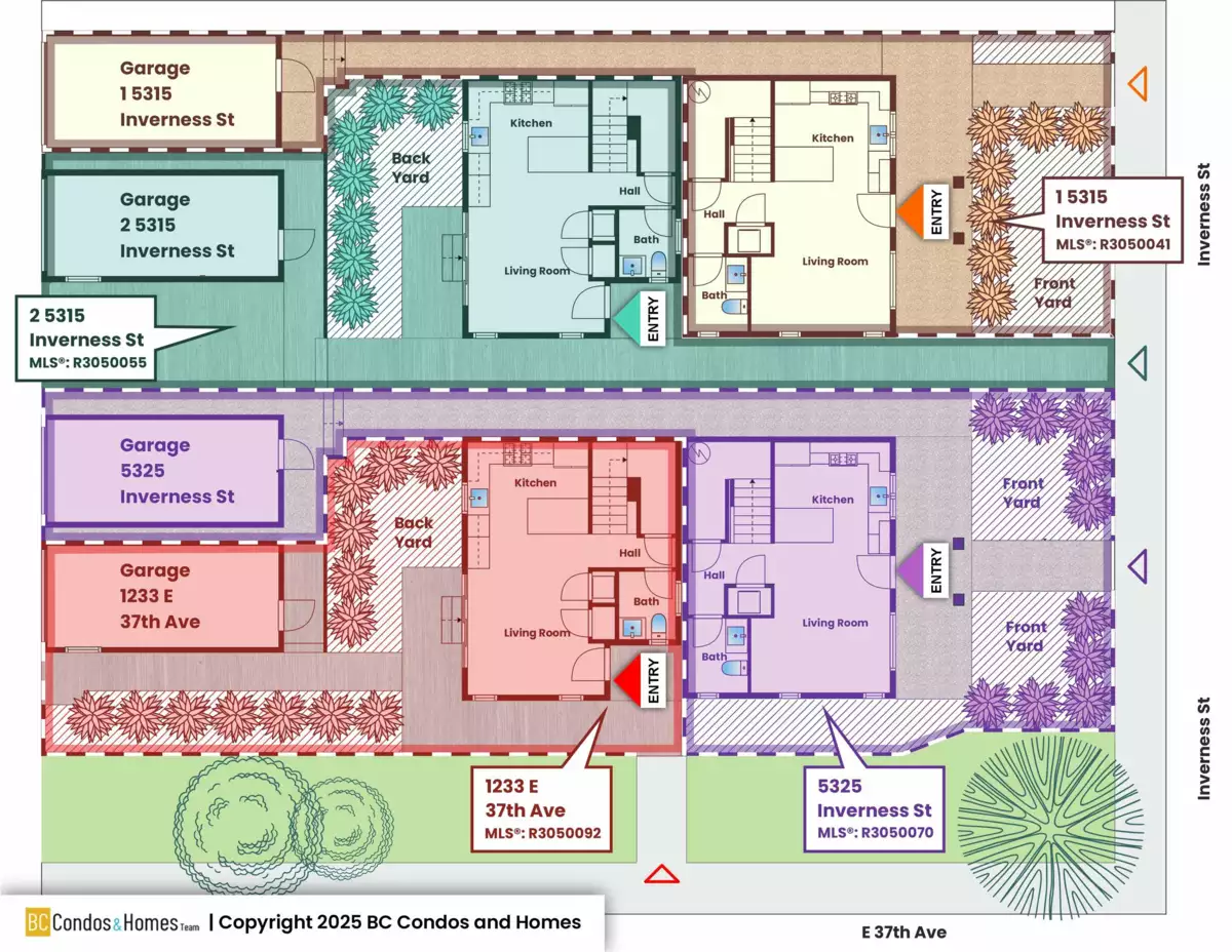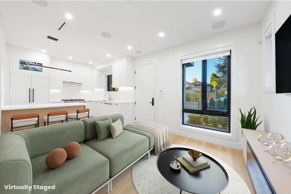 5325 Inverness Street, Vancouver V5W 3N9- Front Unit – Lot 1 – SP EPS11338 3 units next door also on MLS. 1,179 sqft, brand new front entrance 1/2 duplex at 37th & Inverness in the Knight area. This 3 bed+ 4 bath home is thoughtfully designed and virtually staged. Main floor feat high ceilings, fireplace, and large doors to a private fenced yard. Kitchen has Fisher & Paykel appl + custom millwork. Upper levels incl a bright primary x/3pce ensuite, 2nd bed, and 3rd bed w/mountain view balcony + full bath. Feat AC, EV-ready garage, crawl space storage, and quality finishings. John Oliver Secondary & Sir alexander Mackenzie Elementary catchments. Move-in ready. OH Sat 2pm-4PM